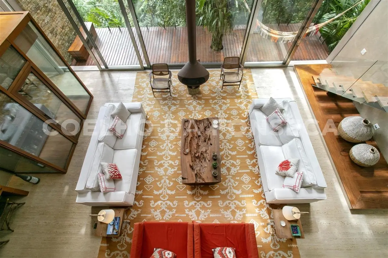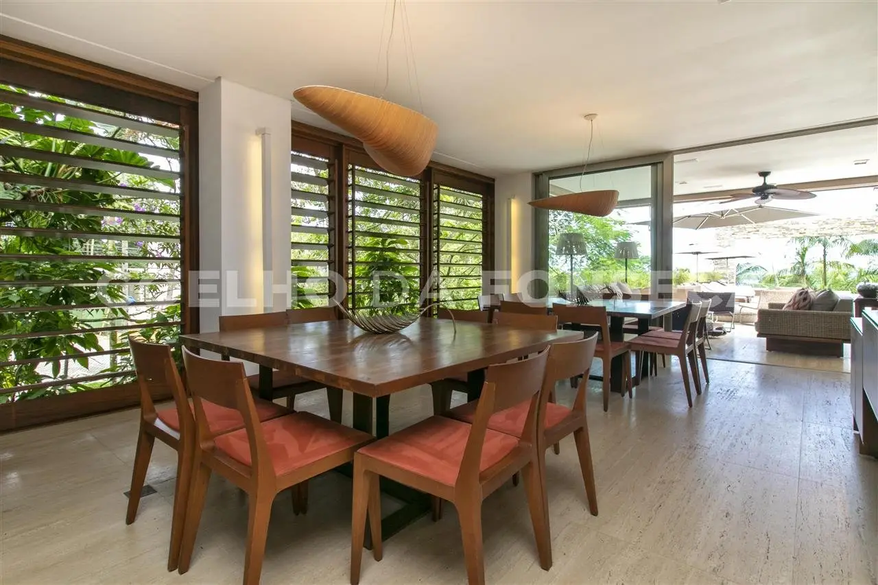 House for those seeking comfort, space and sophistication, 700 meters from Taguaiba Beach. Complete leisure area with spa, dry sauna, wet sauna integrated with the pool, gourmet space, separate barbecue area with an incredible view and also a huge games room with a home theater for the kids. Throughout the area, the windows are floor-to-ceiling with views of the forest, dining room, living room, home theater integrated, air-conditioned wine cellar, toilet and fully equipped kitchen. On the upper floor there are five suites, the sixth on the lower floor, all with air conditioning. The master suite has a bathroom for his and hers and a private terrace with a view of the sea. It is well worth a visit! House in a condominium in the Praia de Pernambuco neighborhood with 1569m² built area, 6 bedroom(s), 6 suite(s), 8 parking space(s), 8 bathroom(s), pool, generator, office, sauna, air conditioning, maid's room, balcony, double height ceiling.
