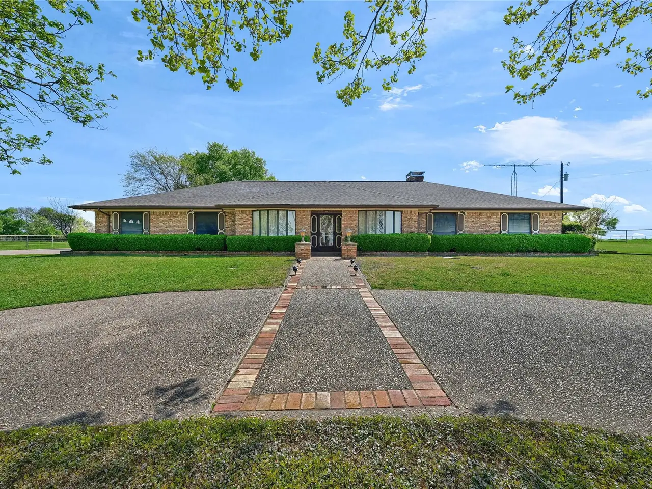 Hill top view. Surrounded on 3 sides by large well maintained ranch. You can see all the way to Muenster on a clear night (verified by seeing wind turbine field blinking out there at night). Great Sunsets. Enjoy beautiful trees and grounds entering on circular drive. 2 acres of peredovik sunflowers planted for migratory dove and song birds. Outdoor fire pit surrounded by sunflower field. Stocked pond. Channel catfish. Fish are trained to a feeder and are fed daily. This Unique home is custom built with special features. One special feature is the Radiant heat system in the house which allows each room to be warmed to an exact temperature, no more cold floors in the morning! Large enclosed porch for entertaining. Current owners entertained parties of 30-50 people comfortably. Home is 1 acre Homestead Exemption. Remainder Land is Ag Exempt. No restrictions No HOA. Shop can be converted to a mother in law suite easily with proper structure already in place. RV parking with hook up on the back side of the shop. Building has water and electric. Barn could use some TLC however works great for housing laying hens and other poultry. Located North of barn is garden spot with water. Peach trees and pear tree produce wonderful crisp and sweet fruits annually. Trees in front are mature. Red buds, soap berries, hackberries, a large sycamore and two mulberry trees. Shade the home well in the late afternoon and evening when the sun is to the west. Pipe fencing surrounds this property. Mustang water and trash service. Location is approximately 7 Minutes to the tollway, 12 minutes to 75, 2 minutes to 289