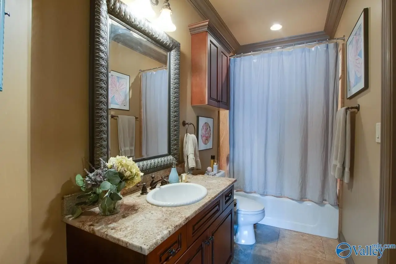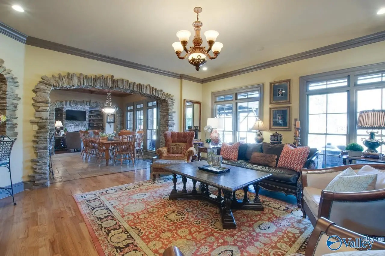 Executive living at its finest in prestigious McMullen Cove. Astounding front entry w/ double iron doors & Curved Stairway. Gourmet Kitchen w/ top of the line comm. granite, Sub-Zero, breakfast area, + Keeping Rm. Custom details thru-out, heavy detailed moldings & trim work, coffered ceilings, custom HWs, custom TL, custom cabinets, granite & the list goes on! Great Rm w/abundant of natural lighting. Main level Master on main lvl w/luxury GlamBa. Upstairs are 3 add'l BR's. BR 2 & 3 offer Private Baths. Rec & Media Rms. Enjoy the outdoor oasis, Covered Porch, Outdoor kitchen, lower patio, stamped concrete, Hot Tub, waterfall, & outdoor FP. Make this your dream home!
