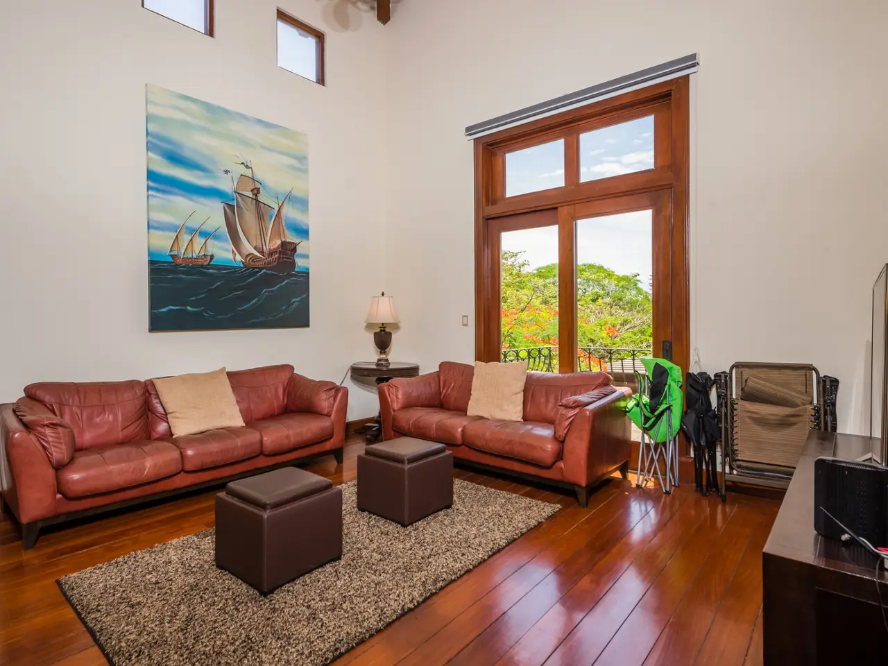 Welcome to Casa Miraflores, an exquisite colonial-style estate home located in the prestigious Reserva de Golf Community within Hacienda Pinilla. This luxurious property offers a captivating blend of elegance and comfort, with four bedrooms, five and a half bathrooms, a maids quarter, and an impressive total area of 6,500 square feet. Situated on a sprawling lot spanning 2,458.86m2, Casa Miraflores presents a truly remarkable living experience. As you approach the residence, you are greeted by a grand entrance adorned with colossal columns, creating a covered space that invites you into the house. The front of the property features a roundabout surrounded by mature landscaping, with a majestic silver Bismarck palm tree at its center, adding a touch of natural beauty. Upon entering the home, you will discover a two-story layout designed to provide ample space and comfort. The upper floor boasts two oversized master suites, each equipped with a king-sized bed, jacuzzi tub, walk-in closet, and a private balcony. These master suites offer a serene retreat, allowing you to unwind and enjoy the picturesque views. The main floor of Casa Miraflores features stone floors adorned with unique Spanish tile accents, adding a touch of charm to the living space. Designed with entertaining in mind, the home offers a main floor living room, an upstairs living room, and an outdoor living room, all capable of accommodating large groups comfortably. The main living room boasts two-story-high ceilings, creating an atmosphere of grandeur. For more intimate gatherings, curved wooden sliding doors can be closed, separating the kitchen from the living and dining room. The main floor also has 2 large bedrooms with ensuite bathrooms. One has a jacuzzi and the other has an outdoor shower with a volcanic rock wall. The residence offers four distinct dining areas, catering to different occasions. The private dining room showcases a striking brick feature wall and elegant teak floors, complemented by teak beams on the ceiling. Additionally, there are dining tables in the open living room, in the kitchen, and in the covered outdoor terrace. Throughout the home, you will find solid wood cabinetry, adding a touch of warmth and sophistication to both the kitchen and bathrooms. The kitchen itself is a chef's delight, boasting unique green-colored granite countertops and stainless steel Viking appliances including a six-burner gas stove. With its spacious layout and modern amenities, this culinary haven offers a delightful experience for cooking enthusiasts. Adjacent to the kitchen is a massive covered terrace, perfect for al fresco dining and relaxation. Featuring caña brava ceilings, this outdoor space creates a seamless connection between indoor and outdoor living. Out here you will find a billiards table, an outdoor living room and dining section. A standout feature of Casa Miraflores is its stunning curved teak wood staircase, enhanced by a wrought iron railing and an impressive wrought iron chandelier. Ascending to the second floor, you will find teak floors throughout and Spanish tile floors in the bathrooms. The bathrooms themselves are adorned with elegant marble countertops and two-person jacuzzi tubs, providing a luxurious bathing experience. The second floor also features an open living room with two leather couches, a balcony overlooking the outdoors, and a connection to the living room below. Perfect for relaxation and entertainment, this space includes a television for your viewing pleasure. To ensure comfort throughout the year, the home is equipped with central air conditioning. The backyard, surrounded by palms, has a large pool and outdoor family-sized jacuzzi to cool off in. Also included is a deep two-car garage, offering ample space for storage, including golf carts and beach toys, in addition to accommodating two cars. Casa Miraflores in the Reserva de Golf Community of Hacienda Pinilla is a remarkable colonial-style estate home that seamlessly combines luxurious living with timeless charm. With its spacious interiors, elegant features, and stunning outdoor areas, this property invites you to experience the epitome of refined living in a tropical paradise. We would love to show you this beauty! Please reach out for a live or virtual showing.