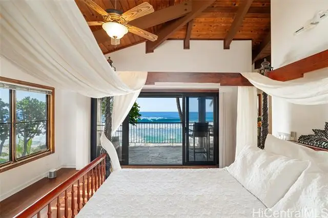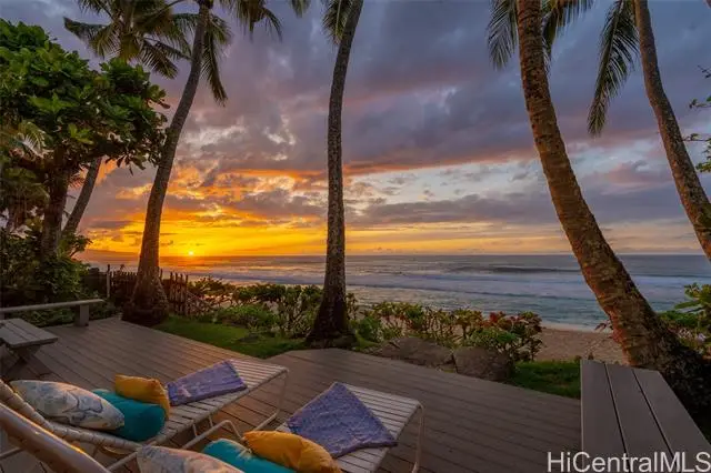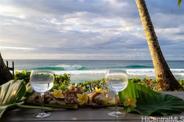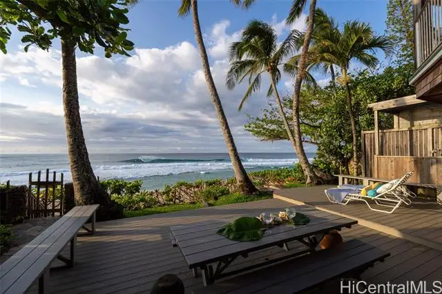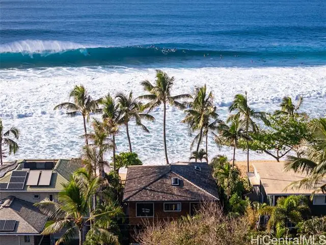Front and center at Pipeline ~ absolutely unbeatable view into the most famous wave in the world! Relax in the comfort of your living room, downstairs open lanai, upstairs bedroom lanai or beautifully landscaped yard and watch the best surfers in the world take on this incredible iconic wave. This home has had only one adoring owner for 35 years and has been meticulously maintained as a family home. From first glance, the home will reveal that it has always been carefully maintained with detail, love and gratitude. From the cedar shake exterior siding and roof to the koa floors inside, high-quality appliances AND legal seawall you will feel surrounded by a sense of confidence, charm & security. Also includes outside hot water shower. This turn-key, well-built, fully-furnished beautiful home and property is available now. Shown to qualified Buyers by appointment only. Listing agent must be present.