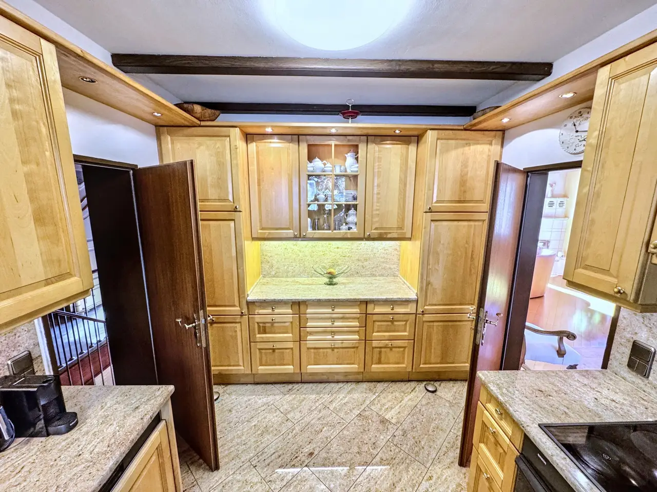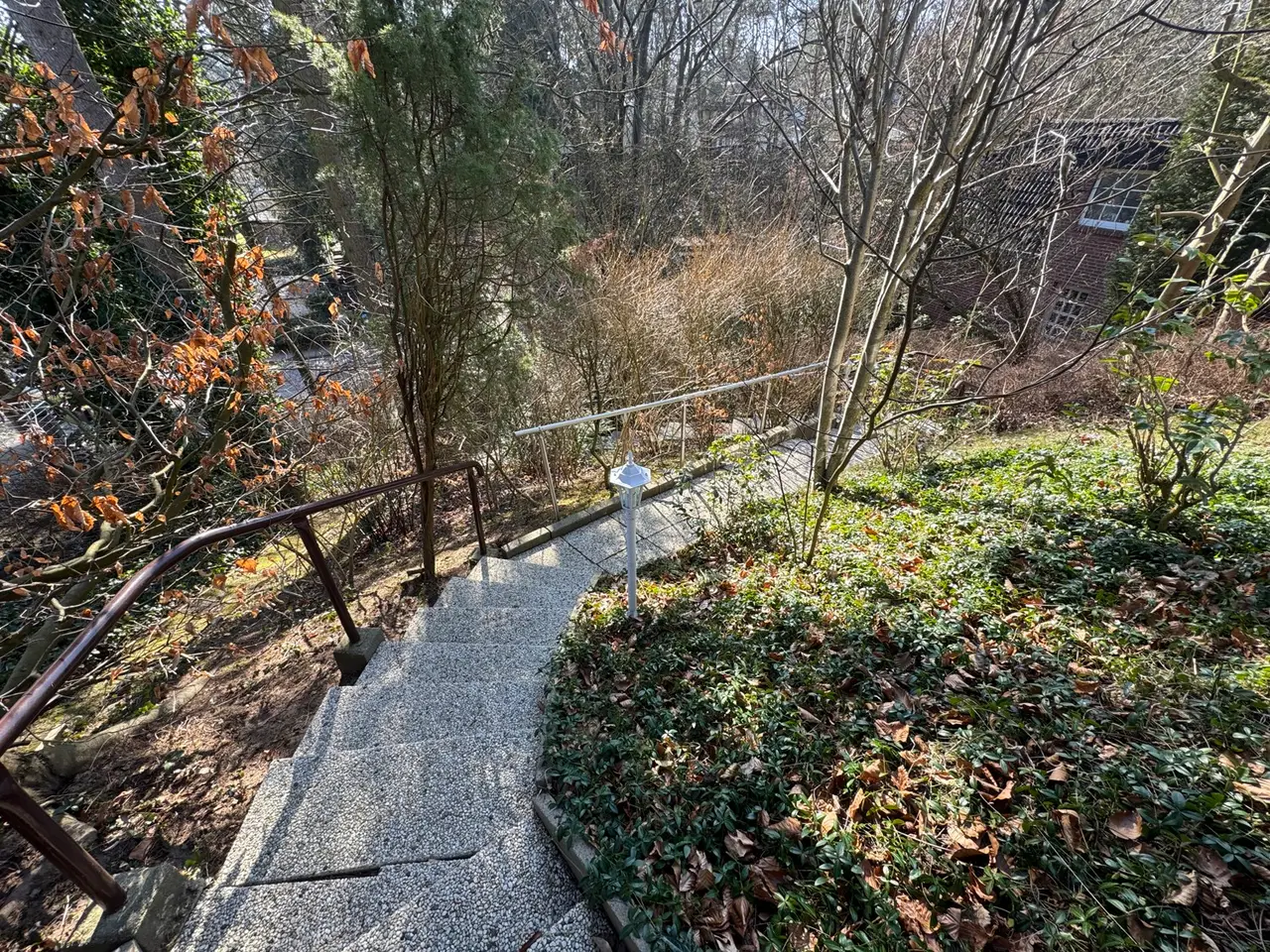 This charming detached house from 1972 with a living space of approx. 190 m², spread over two levels, is situated on a spacious plot at the top of the slope in a quiet location. The house offers a wide range of possible uses. The entrance area is located in the basement of the house, from which a spacious room leads off to the left. This room, which is currently used as an office, offers direct access to a spacious, partially covered terrace - ideal for relaxing outdoors. There are also two further bedrooms, a separate WC and a shower on this floor. The remaining rooms are used as storage and cellar rooms and offer plenty of storage space. On the upper floor, a spacious living room of 54 m² awaits you with a fantastic view of the natural surroundings. Adjacent to the living room is the kitchen. There is also a bedroom with its own en suite bathroom and a spacious loggia where you can enjoy quiet hours. The property also offers a massive outbuilding at the rear, which can be used as storage space or is inviting for parties and social gatherings in summer. In the lower part of the plot there is the possibility of building another detached house or a semi-detached house. There is no limit to the number of residential units and the GRZ is 0.2. This property combines a lot of charm with a lot of potential. The existing house offers generous living space, while the building plot is ideally suited for a further residential project. Ideal for families, multi-generational living or as an investment property - a rare opportunity in a sought-after location.
