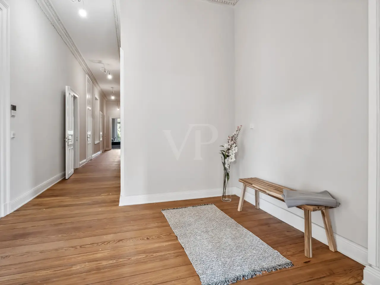 - Old building completely renovated to a luxury level - Original Hamburg bones - Alster view and location in the first row - Classic high old building ceilings - Representative living / dining area with additional bay window and Alster view - Installation of a fireplace in the living room is possible - Study with balcony and Alster view - Master bedroom and master bathroom with access to the winter garden - Additional bedroom with access to the balcony - Original ceiling paintings - Original historical radiators - Original, elaborately refurbished doors - Original, elaborately refurbished wall panels with insulation - Extensive core renovation - High-quality parquet - Modern switch and button equipment - Full bath and guest bathroom with designer fittings - Elevator to the underground car park - Underground parking space for €80,000 must be purchased - District heating - Historical facade from 1889 - Refurbishment of historical elements in common ownership