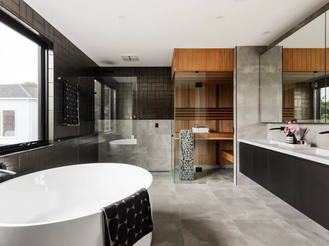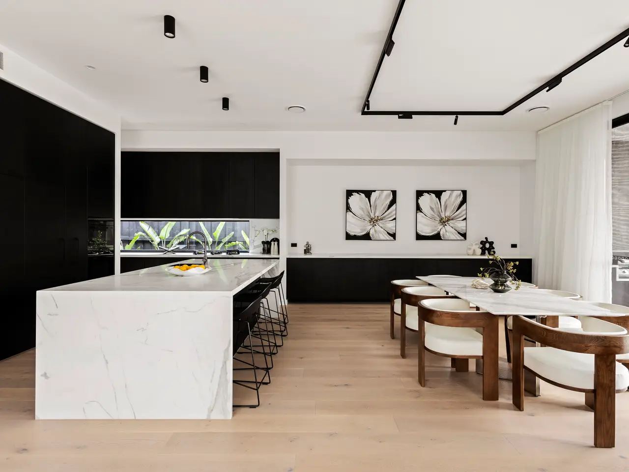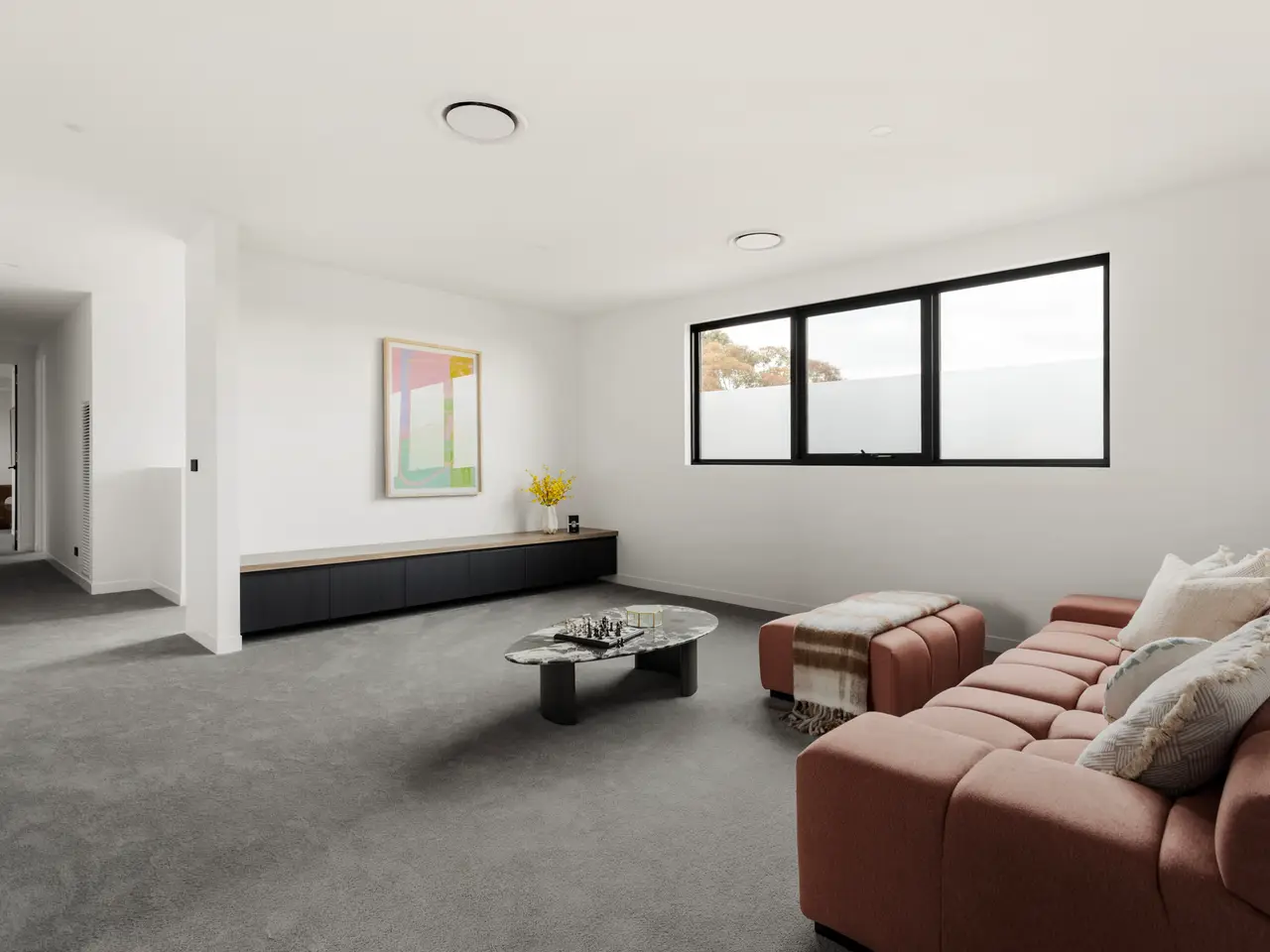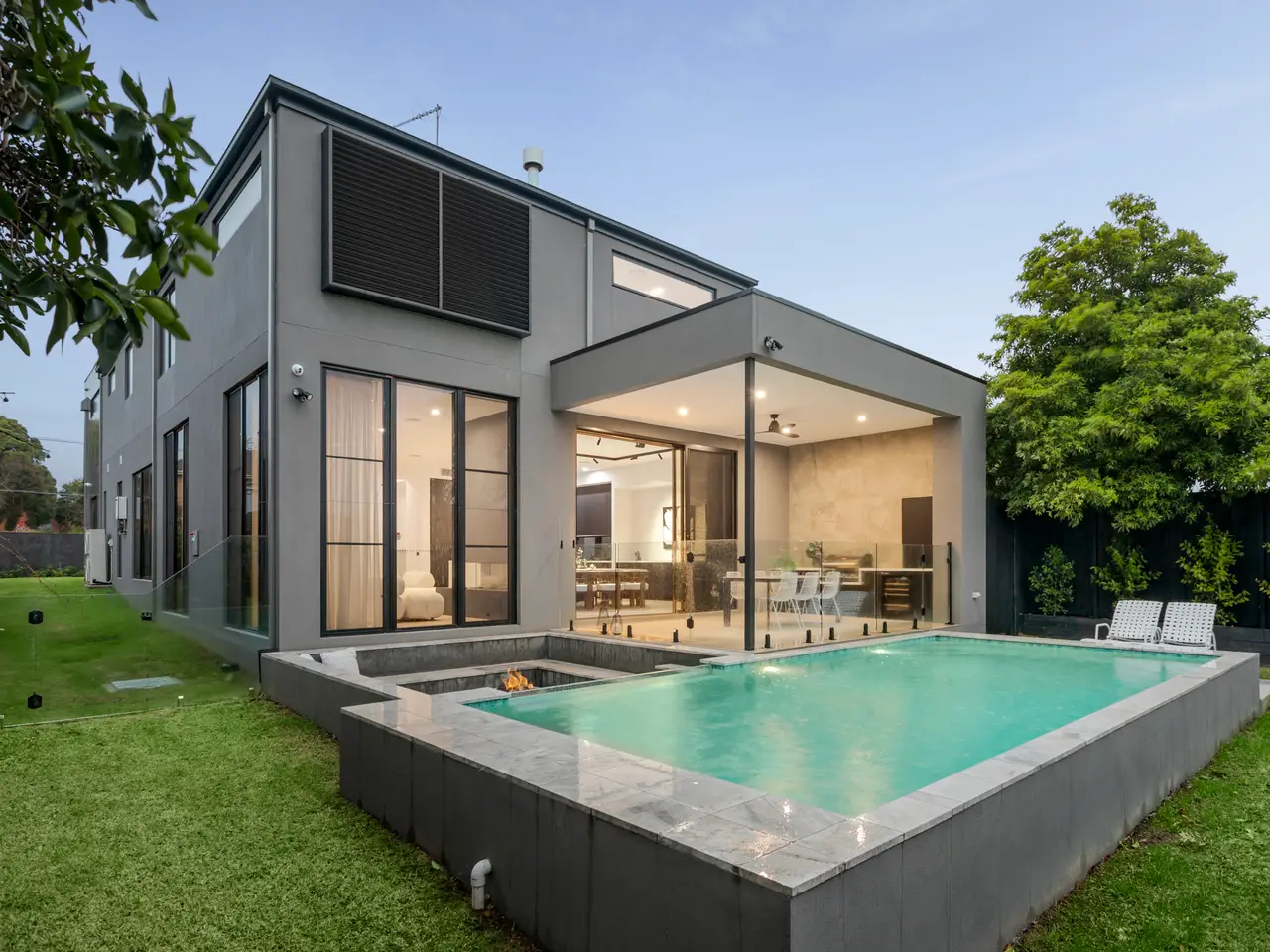 An architect-designed residence of rare calibre, this home embodies contemporary luxury with flawless execution. From its sculptural concrete façade to interiors layered in marble, glass, timber and texture, every element has been curated to impress. The wide entry introduces a sense of scale and sophistication, leading past a guest bedroom with walk-in robe and ensuite, a fitted home office with dual desks, and a home theatre, before revealing the spectacular living and dining domain. Defined by soaring glass, natural light and a striking floating fireplace, it is a space where entertaining unfolds with impact and style. The kitchen is a showpiece of culinary design, anchored by a dramatic stone island, dual Miele ovens and integrated dishwasher, an extensive butler's pantry and a sleek gas burner recessed into the benchtop, uniting minimalist aesthetics with performance. Seamless indoor-outdoor flow enhances the entertainer's credentials, with sliding doors revealing a covered terrace complete with built-in barbecue and wine fridge. Beyond, a resort-inspired rear garden features a sparkling blue pool with infinity edge and a sunken firepit lounge with inbuilt seating, setting the stage for unforgettable evenings. Upstairs continues the indulgence, with a light-filled retreat, a main suite of hotel-like ambience with a sitting area, dressing room and ensuite with freestanding oval bath and twin vanities. A second bedroom with walk-in robe and ensuite is joined by two further bedrooms, while the family bathroom raises the bar with a circular tub, oversized shower and sauna. A wine cellar, designer laundry, powder room, extra-large double garage, ducted heating and air conditioning and an array of finishes of uncompromising quality confirm that nothing has been overlooked. Positioned in the prestigious Bayside school belt within walking distance to Haileybury and St Leonard's Colleges, the location is as privileged as it is convenient. With Dendy Park, Sillitoe Reserve, Hampton Street and Station, and the bay all nearby, this is where visionary design and family life reach their finest expression. Even the house number is a statement piece, set in marble.