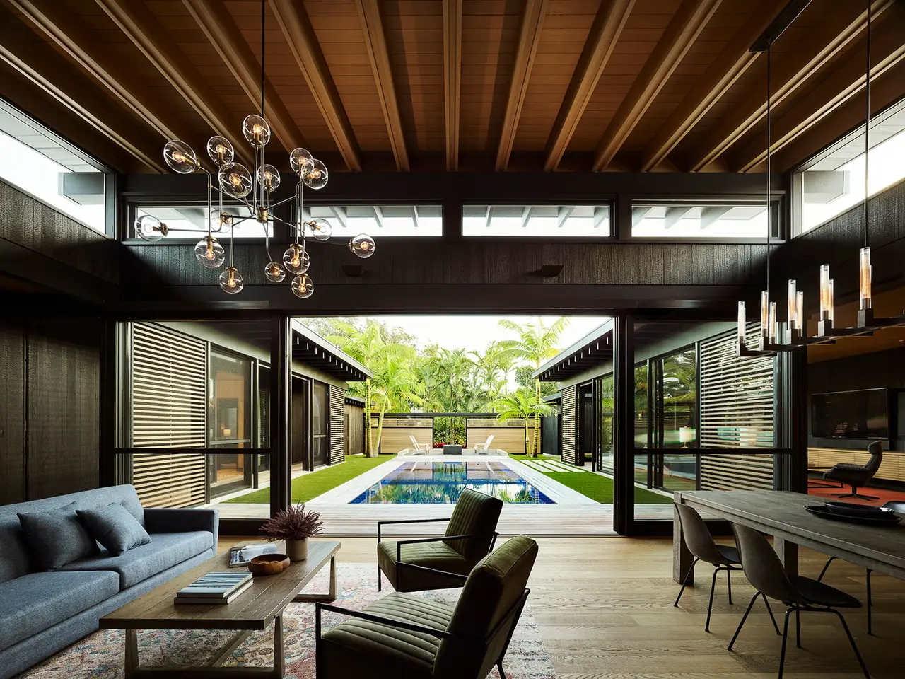 Wahi Lani, meaning 'heavenly place' in Hawaiian, embodies the essence of style meeting function in Hanalei Bay. This newly built residence, steps away from the bay's white sands, is a surfer's sanctuary designed for seamless access to surfing and other outdoor activities, offering an ideal blend of life and leisure.Wahi Lani showcases architectural expertise, with its U-shaped design and lanai, which connect seamlessly to the outdoors. The residence's heart is its central courtyard, framed by walls treated with Shou Sugi Ban, a traditional Japanese technique that imparts a lava-inspired texture with a rich charcoal hue.Situated in Hanalei, Wahi Lani is more than a dwelling; it's a gateway to a lifestyle immersed in natural splendor and style. Its proximity to Hanalei Town, blending seclusion with social engagement, offers a balance of serene living and exciting outdoor activities. Surrounded by natural wonders, as well as the amenities provided by nearby Princeville and the One Hotel at Hanalei Bay, Wahi Lani is a sanctuary for those who appreciate this balance.