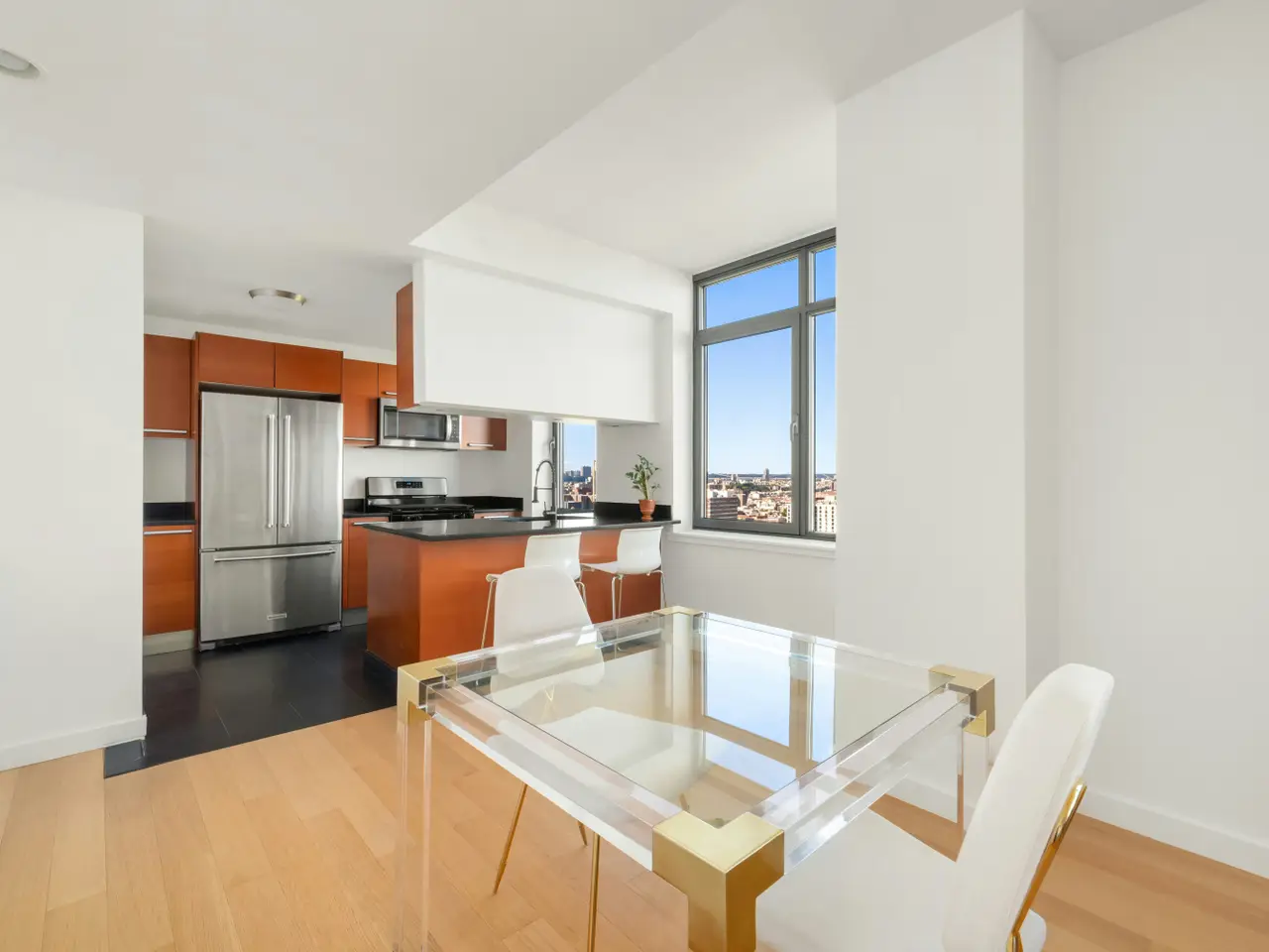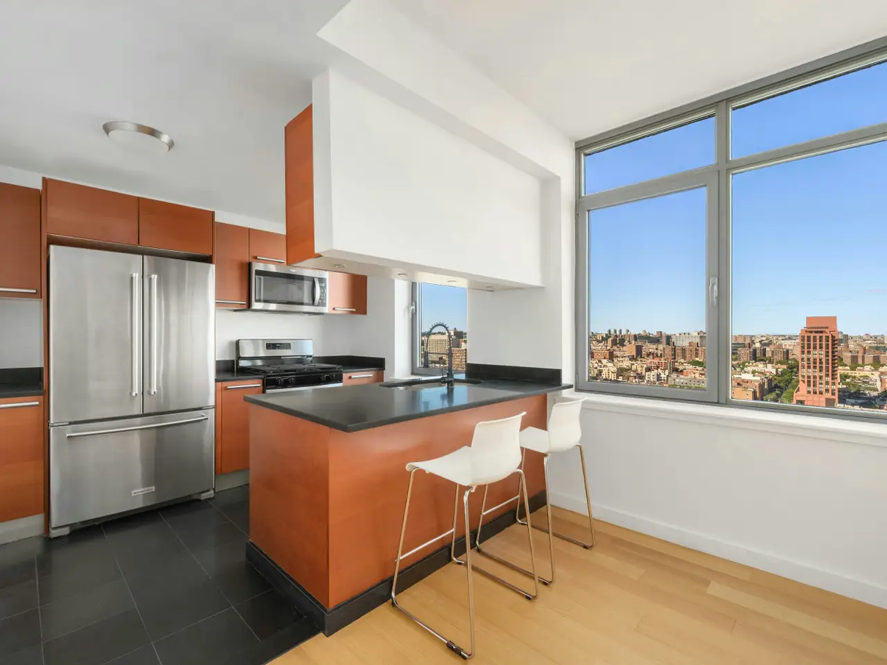 Expansive north-facing windows with park views