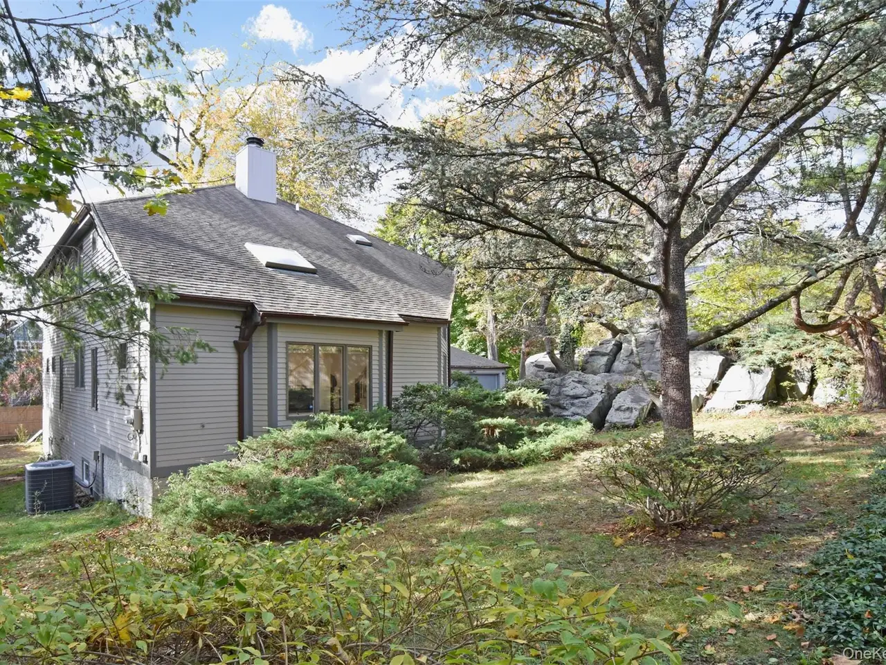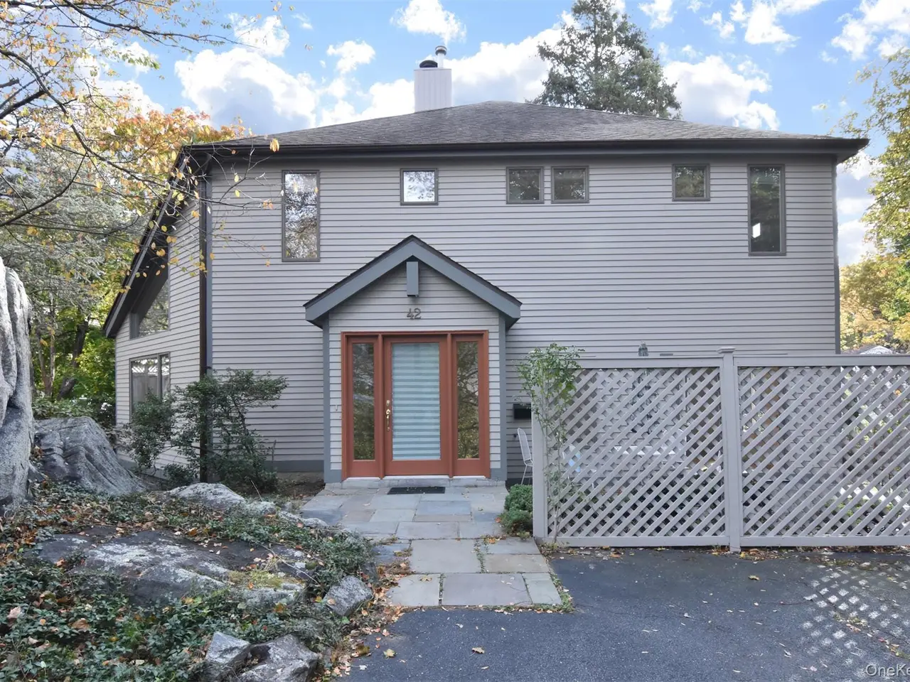 Tucked away behind natural rock outcroppings, this stunning light-filled Contemporary retreat offers the perfect blend of privacy and modern comfort. A spacious foyer with 2 entry closets welcomes you into the grand sized rooms filled with sunlight streaming through large windows in every direction. The Living Room features a vaulted ceiling and wood-burning fireplace. The home's flexible floor plan flows effortlessly into a bright Dining Area and an open Kitchen, ideal for today's casual lifestyle. A 30' Great Room is perfect for relaxed daily living or entertaining with a large screen television. On the second level, the ensuite primary bedroom impresses with a tray ceiling and 4 generous closets, the two additional bedrooms are ample sized, providing comfort and privacy for all. Enjoy the lifestyle Hastings has to offer, so close to NYC, yet with a small Village ambiance and a quick, scenic commute to Grand Central, shops, restaurants, community pool and weekly farmers' market. Shown by appointment only. Some photos are virtually staged.