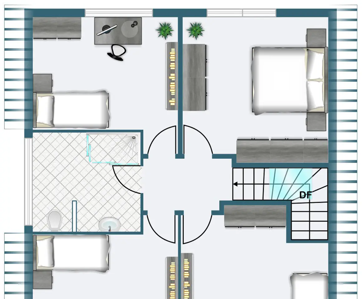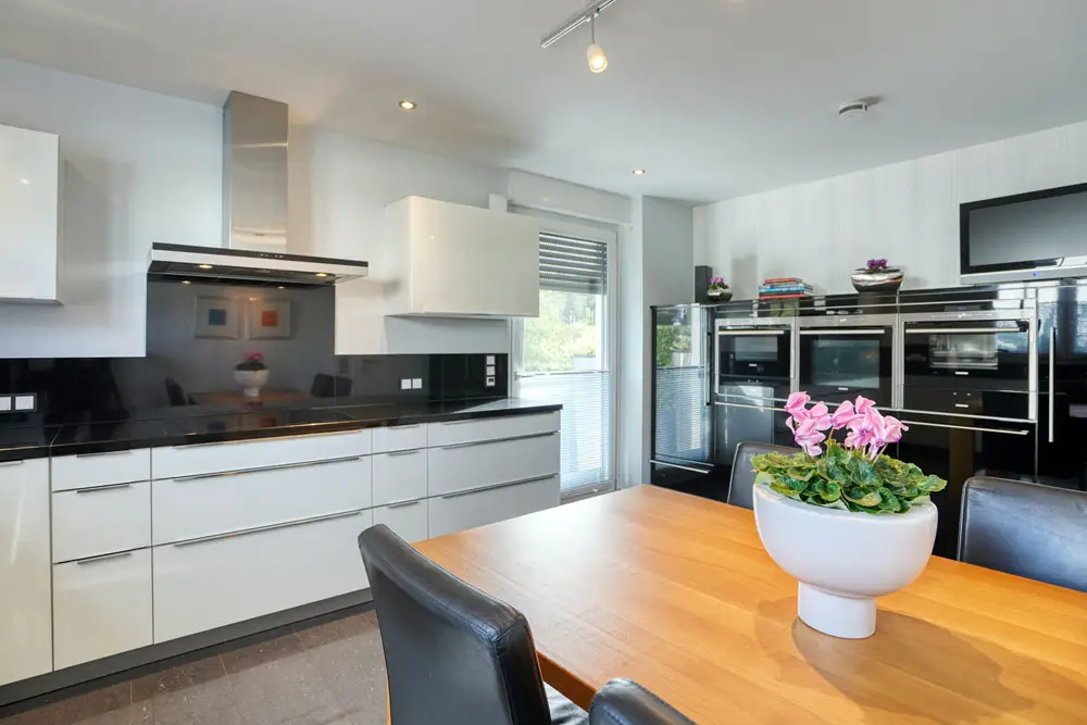 This family-friendly detached house was built in 2009 in solid construction. It is equipped to an above-average standard and is in an exceptionally well-kept condition. On the first floor, starting from the hallway with checkroom and guest WC, there is the generously proportioned living/dining area with access to a large, sunny balcony and the well-equipped kitchen with dining area and access to the terrace and garden. There are four similarly sized rooms on the top floor, which are suitable as bedrooms, children's rooms or studies. The well-lit bathroom is equipped with a floor-level shower. On the garden level, there is a large, versatile room with access to a partially covered terrace and the garden, a shower room with sauna, a room suitable for use as a study, a storage room and a utility room. The storage room under the garage is accessible from the terrace. The terraced and beautifully landscaped garden faces south. The terraces and the balcony are equipped with a shading system. An extra-long car garage and a parking space in front of the garage complete the offer.