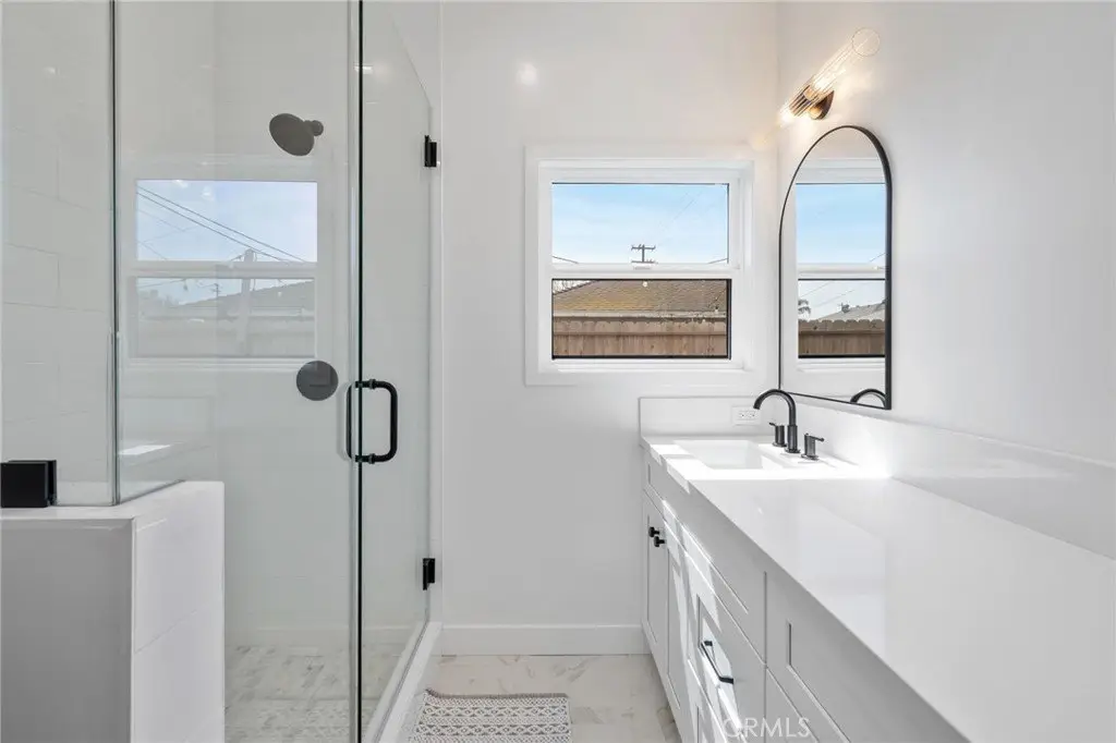 A truly one of a kind offering in the desirable Wiseburn neighborhood that includes a newly remodeled 3 bed/2 bath plus office home on a corner lot PLUS a new construction 3 bed/2 bath detached home on Shoup Ave. Each home has their own private entrance, enclosed yard space, and lives completely separate from one another. This property presents endless options for both the owner user or 1031 exchange investor: a unique opportunity to live in one house while having the other pay your mortgage, live in one house and use the other for guests/visitors, or have two turnkey prime Wiseburn rental properties that regularly rent for $9-10k per month. The front house on 133rd has great curb appeal on the corner with a large grass front yard, brand new turf backyard, and tons of natural light. Open the front door and you're greeted with an open floor plan featuring a large great room that includes features an open kitchen, living, and dining space. All new recessed lighting, flooring and windows throughout give this home tons of light. Designer kitchen with carrara marble counters, new cabinets, floating shelves, handmade backsplash tile, bar seating, and brand new stainless appliances. Two large guest bedrooms share a freshly designed hall bathroom with a tub and glass enclosure. Down the hall you will find the Primary bedroom suite with its own bathroom, laundry, a huge walk in closet, high ceilings, a skylight, and doors that open up to a separate office area/bonus room. Other notable upgrades include new gutters, exterior shutters, new stucco, new paint, a Ring doorbell, and a new heater. The newly constructed back house on Shoup Avenue is currently rented for $4,500 per month and was recently built from the ground up. Open the front door to soaring vaulted ceilings and a wide open floor plan. Two spacious guest bedrooms share a hall bath while the massive primary suite has vaulted ceilings, a walk in closet, and large bathroom with dual sinks. Other notable features include central AC and solar to save on the electric bill. A+ location in a quiet neighborhood within walking distance to parks, shopping, and award winning Wiseburn schools.
