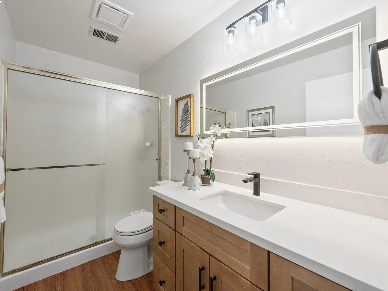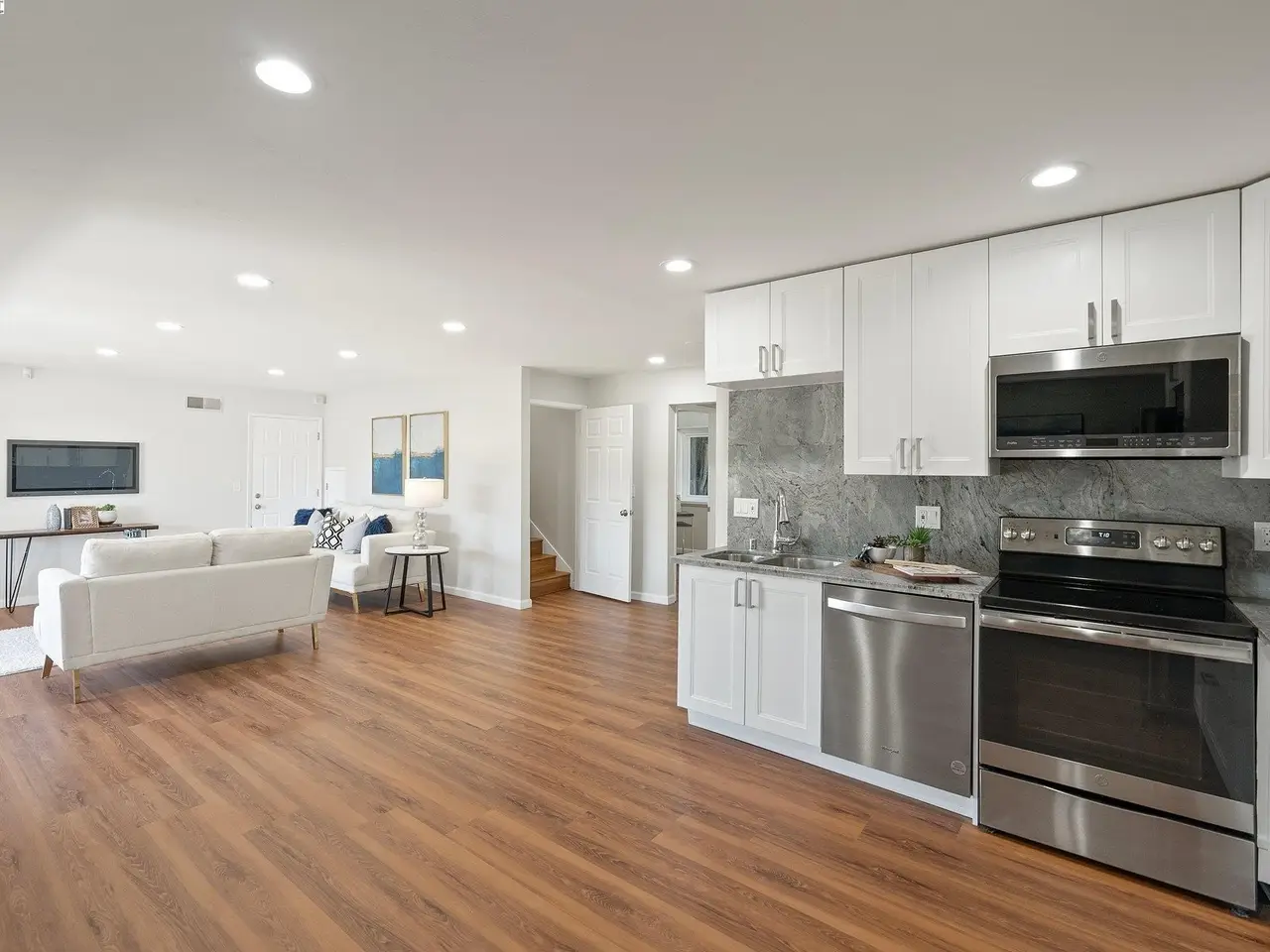 Beautifully updated 5-bed, 3-bath home in the desirable Hayward Hills! Perfect for large or multi-generational families, this versatile property features two separate living areas with 2 full kitchens. The upper level offers 3 beds, 2 baths, and an open-concept layout. The lower level includes 2 beds, 1 bath, a spacious family room, and a second kitchen—ideal for in-laws or rental income. Recent updates include modern kitchens and baths, new flooring, and updated lighting throughout. Enjoy the serene setting from your backyard featuring an outdoor jacuzzi, perfect for relaxing or entertaining. Located on a quiet cul-de-sac close to parks, hiking trails, and freeway access. A rare find in Hayward Hills!