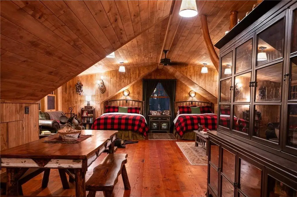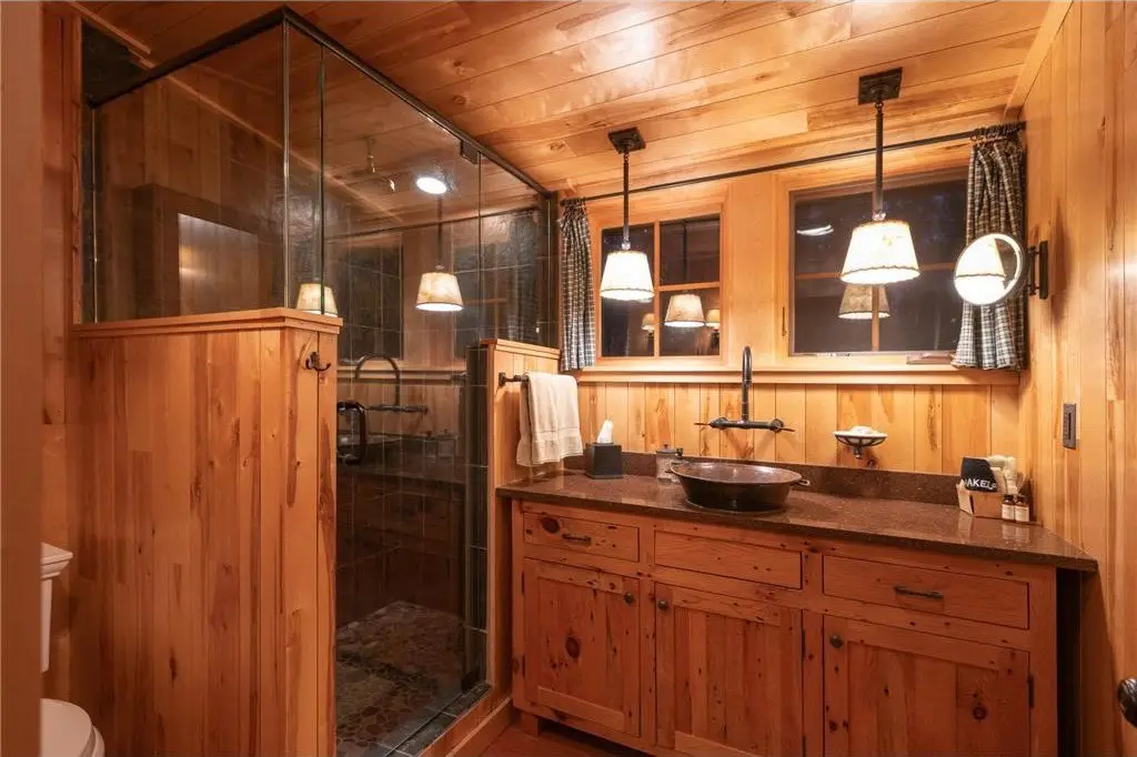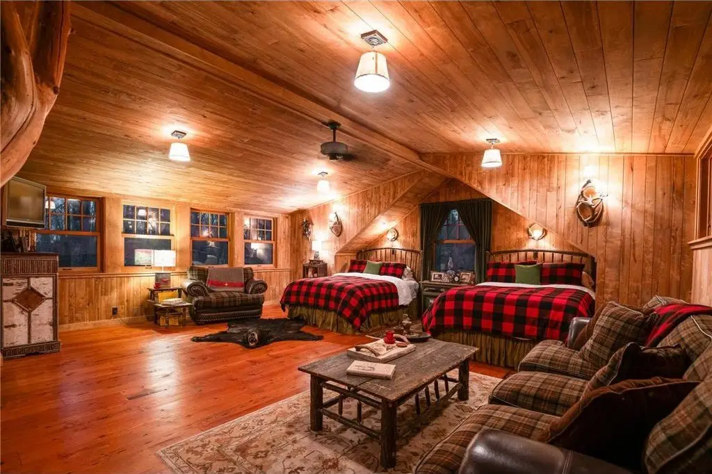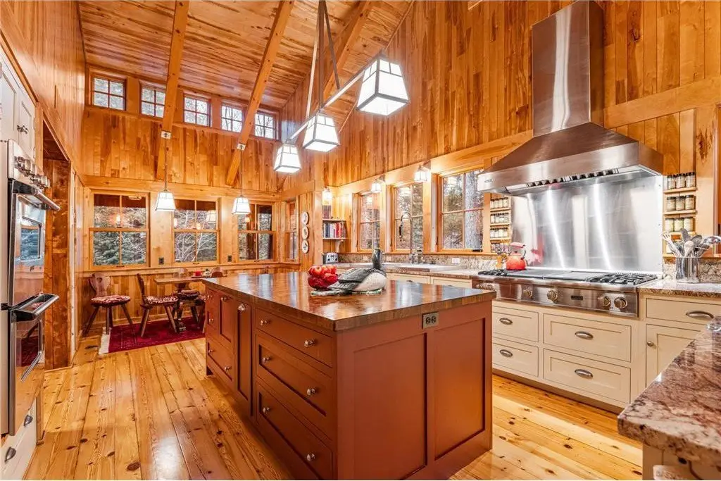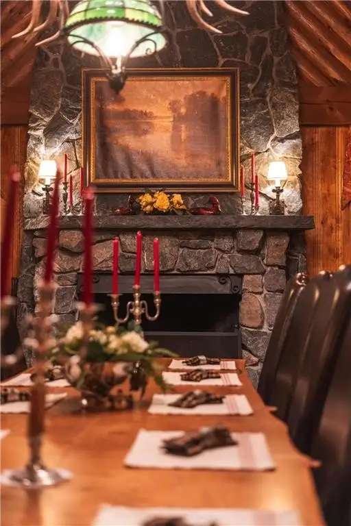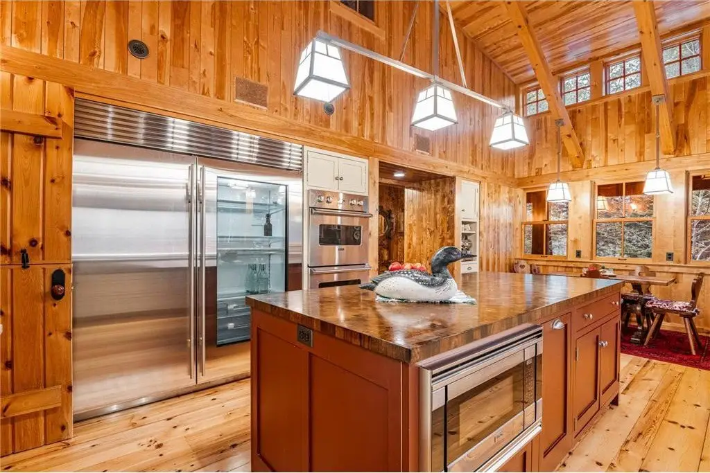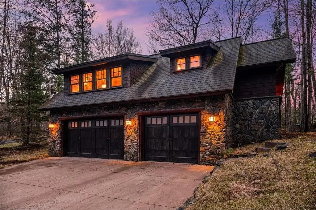 A masterpiece of timeless craftsmanship and serene natural beauty, Birch Point Lodge is an exceptional legacy estate nestled on over 39 acres of pristine Northwoods wilderness. With 2,000+ feet of shoreline, two islands, and both sunrise and sunset views over crystal clear water, this secluded haven offers unparalleled privacy and connection to nature. The lodge’s Great Hall evokes the spirit of grand Adirondack and National Park lodges—anchored by a soaring native Wisconsin granite fireplace, reclaimed wide-plank floors, and majestic log trusses beneath 25-foot ceilings. Thoughtful touches abound, from a built-in whiskey bar and nostalgic phone booth to custom cedar railings and antler chandeliers. The grand Dining Hall is wrapped in Marvin windows offering lake and forest views, centered around a bold timber frame and a handcrafted chandelier by blacksmith Dan Nauman. Custom birch paneling, reclaimed red pine floors, and a granite Rumsford fireplace bring warmth and elegance to every gathering. A chef’s kitchen pairs beauty with function: Sub-Zero and Viking appliances, a walnut-topped island, marble counters, and hand-forged lighting, all surrounded by windows and birch-paneled walls that blend the indoors with the forest beyond. Across its expansive layout, the home offers multiple porches, a cascading stone staircase, cantilevered timber stairway, and custom oak bookcases hewn from a tree once rooted on the land. Private bedroom suites feature reclaimed wood floors, birch built-ins, forest views, and stone-accented en-suite baths. A luxurious home spa includes a sauna, steam shower, and soaking tub overlooking the woods. The Lake Level offers a rustic family room with fireplace and inglenook, a game room, whimsical bunk room, copper-topped bar, wine cellar, home gym, and a lakeside changing room with marble showers and handcrafted lockers. From foundation to finish, Birch Point Lodge is a work of art—designed for gathering, grounded in nature, and built to last for generations. Experience the artistry. Embrace the serenity. Welcome home to Birch Point Lodge.