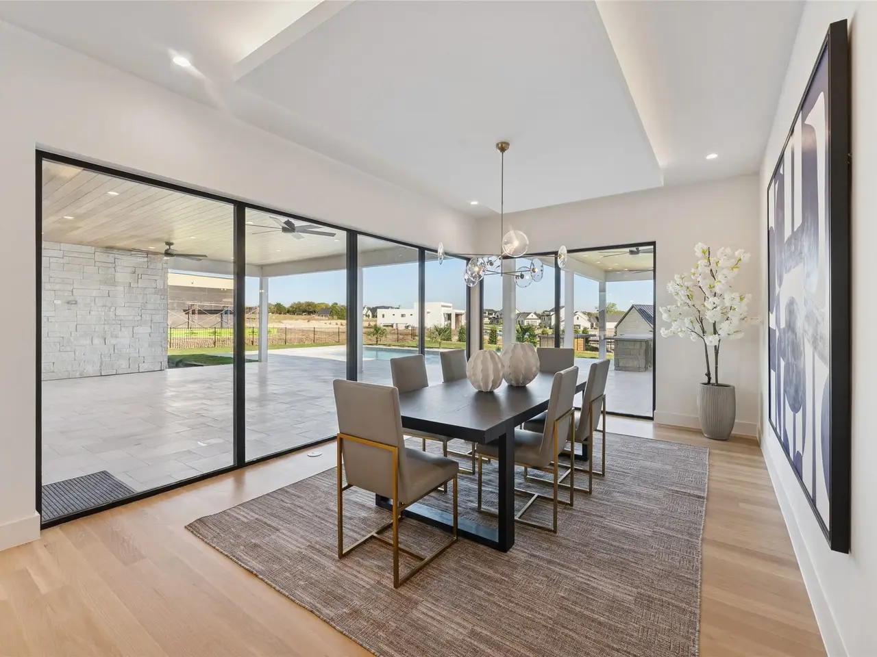 Modern Luxury Elegance in Ridge Lakes of Heath. Experience refined living in this brand-new modern contemporary masterpiece by 14 Construction, with stunning interiors curated by Julie Parrent Design. Situated on a spacious half-acre lot in the prestigious Ridge Lakes of Heath, this architectural gem boasts soaring 20-foot ceilings and a dramatic floating staircase that sets the tone from the moment you enter. An open-concept layout seamlessly connects the kitchen, dining, and family rooms, all bathed in natural light from expansive walls of glass overlooking the pool. The chef's kitchen features imported sleek cabinetry, natural stone countertops, and top-of-the-line appliancesideal for daily life and effortless entertaining.Massive sliding doors in the family room provide a seamless indoor-outdoor connection to the over-sized covered patio and resort-style pool, perfect for hosting or relaxing in privacy. Clean lines, impeccable finishes, and thoughtful design define every inch of this luxurious residence.Additional highlights include a 4-car garage and premium location in one of Heaths most coveted enclaves. A rare opportunity to own a design-forward home that exudes sophistication and comfort.