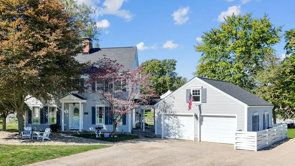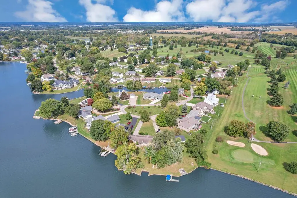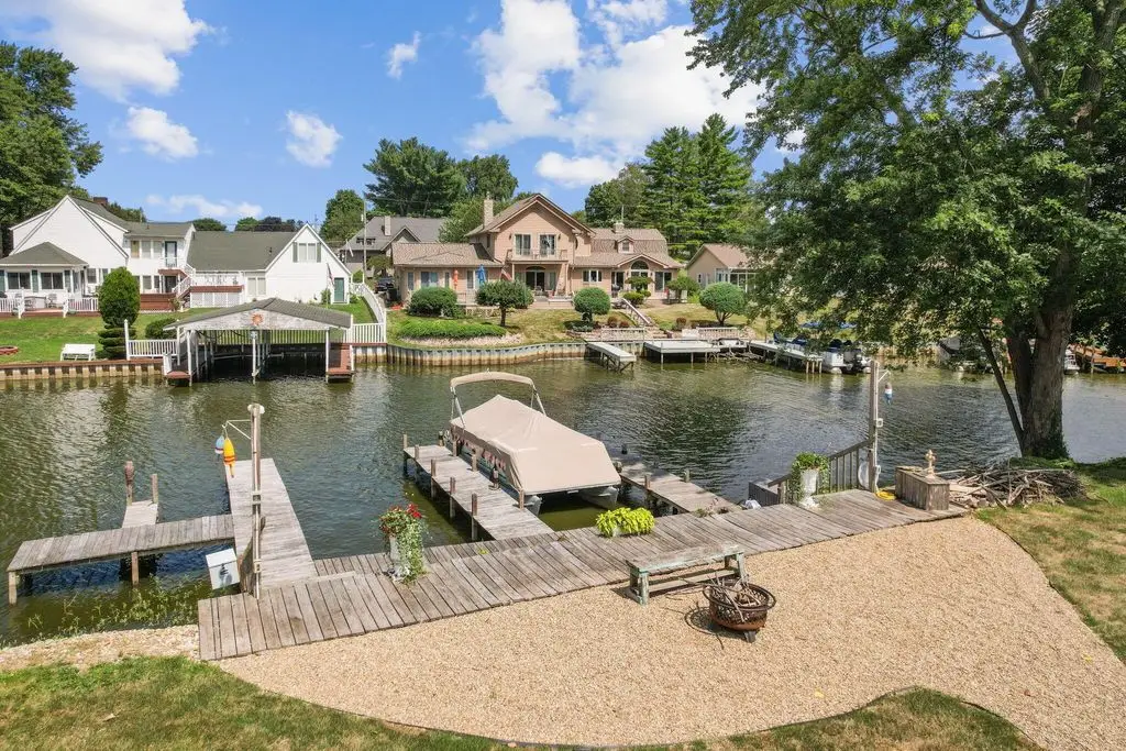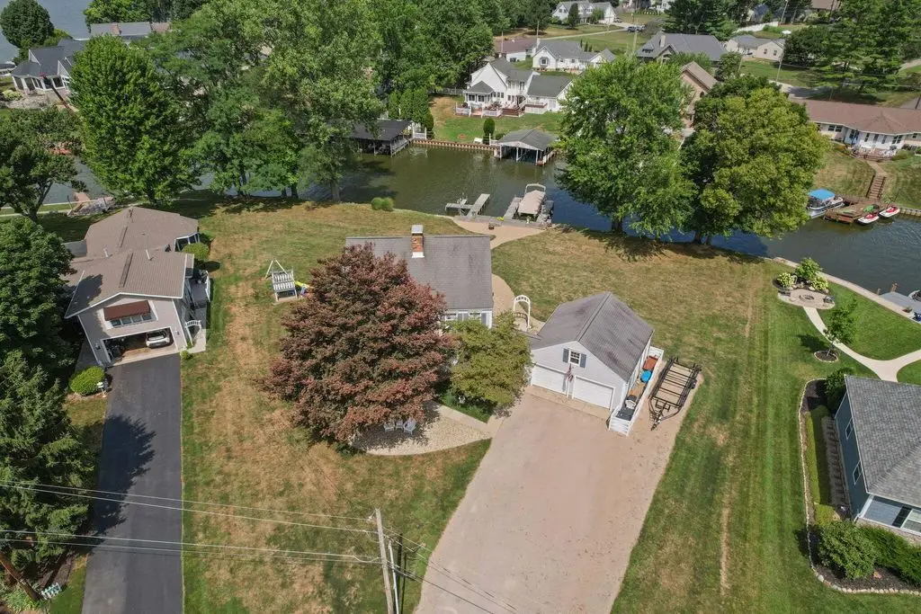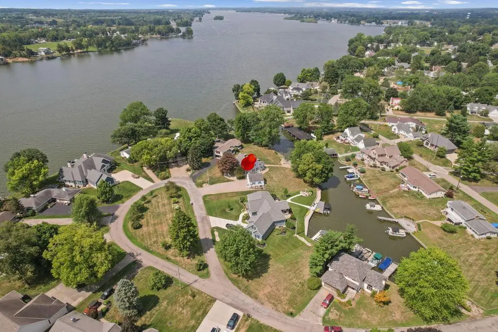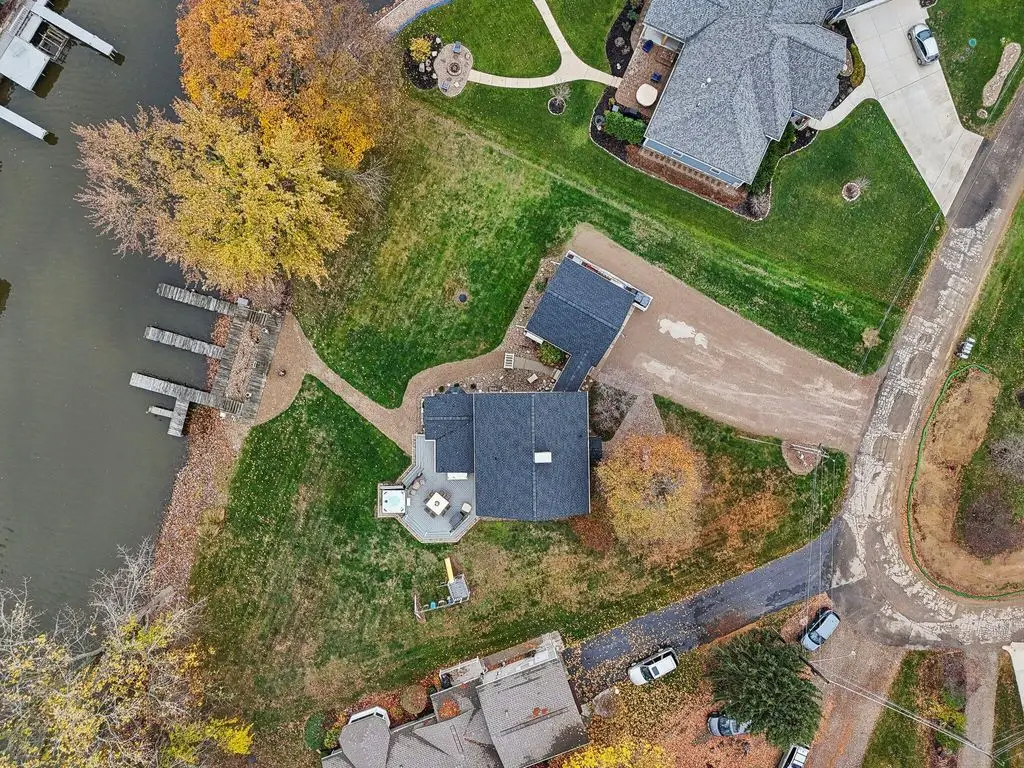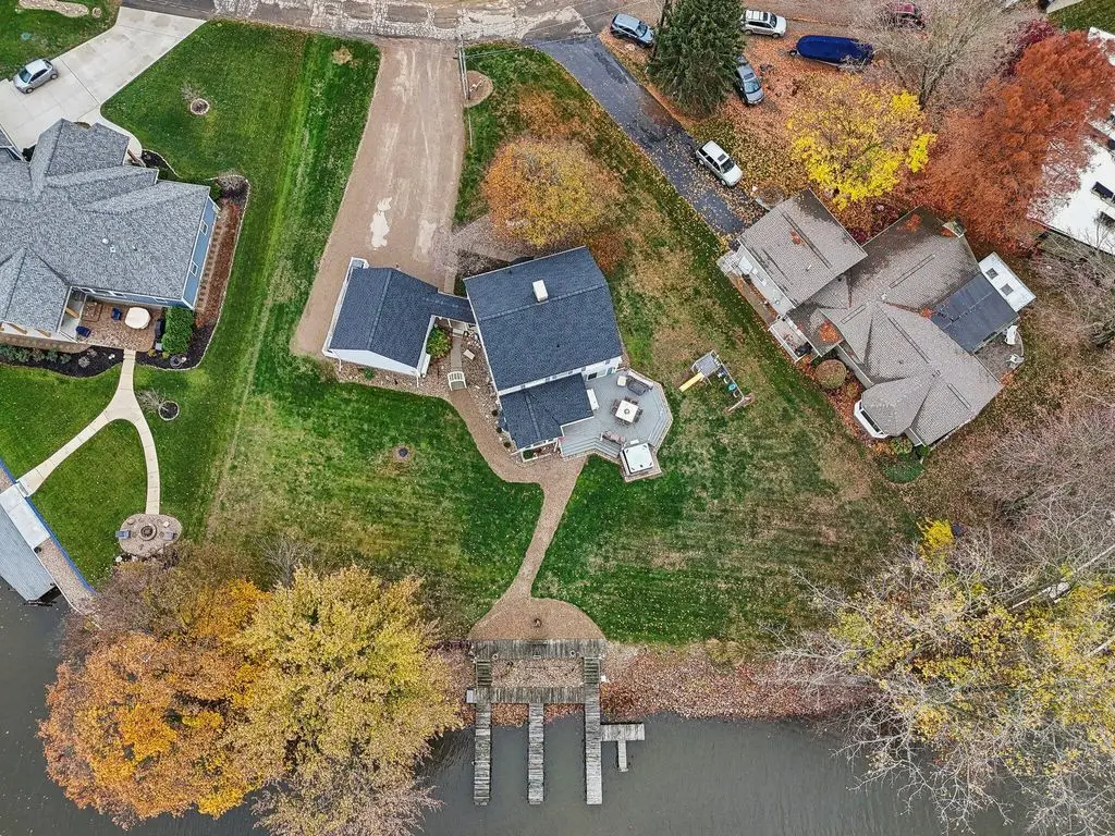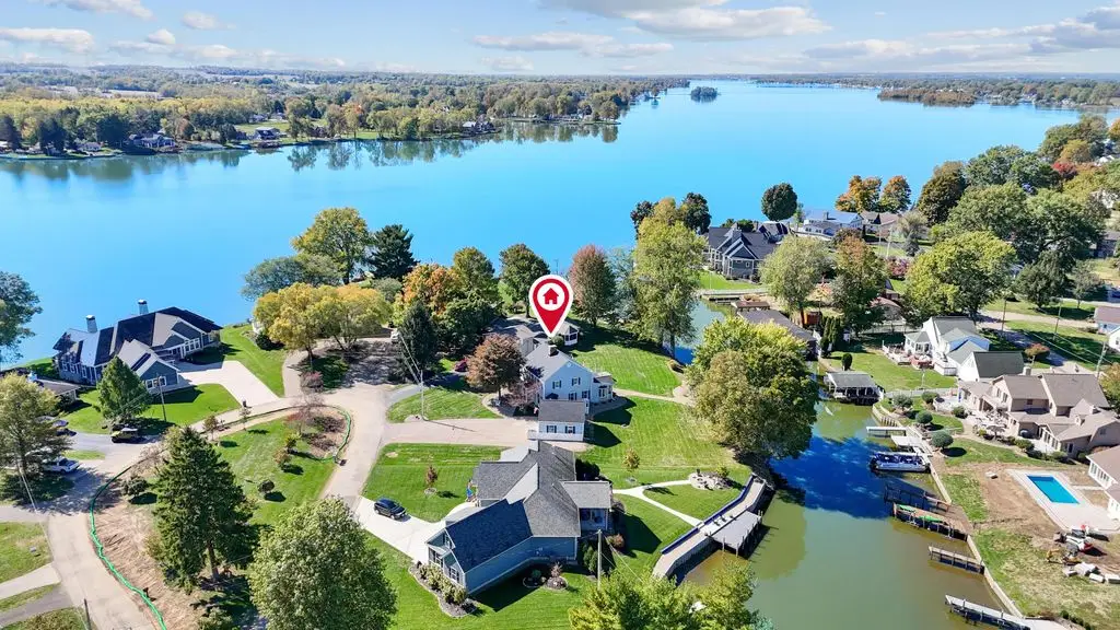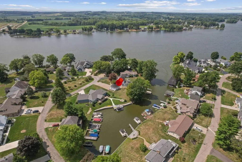 Beautiful waterfront home in desirable Harbor Hills. Located on a quiet circle off the main road. Multiple parks, a beautiful 9 hole golf course, and tennis/pickleball courts make this a great neighborhood. This 2,500 square foot four bedroom, 2.5 bath home sits on a double lot and has 200 feet of water frontage with multiple docks. The living room opens to the large kitchen area with access to the back deck and 180-degree views of the water. The family room connects to a quaint pub area that also leads out onto the large rear deck. Hardwood on the main level. Upstairs you will find four good-size bedrooms with updated carpet and paint. The owners suite has hardwood floors as well. A partial basement and crawl are in the lower level. A detached oversized two-car garage and plenty of room for parking.