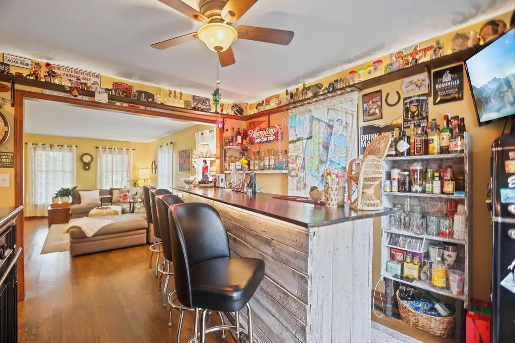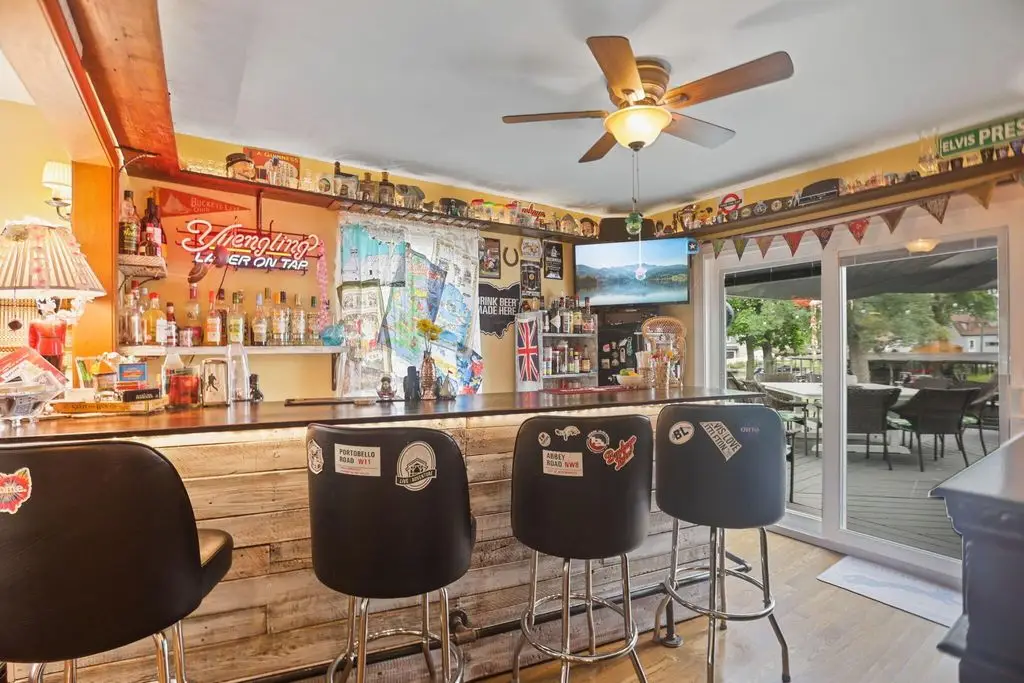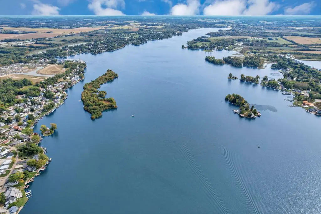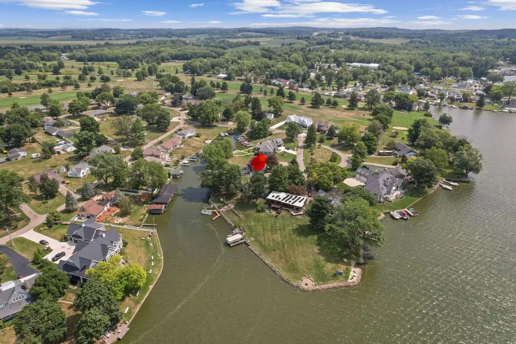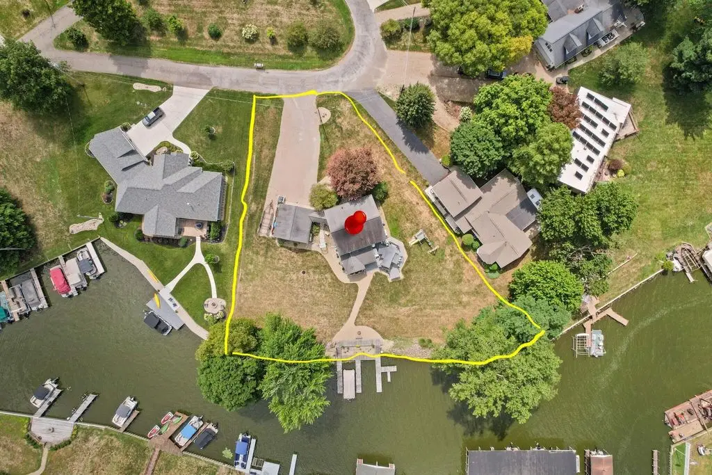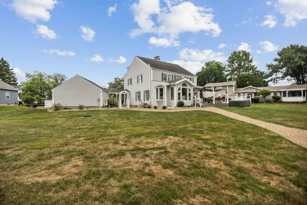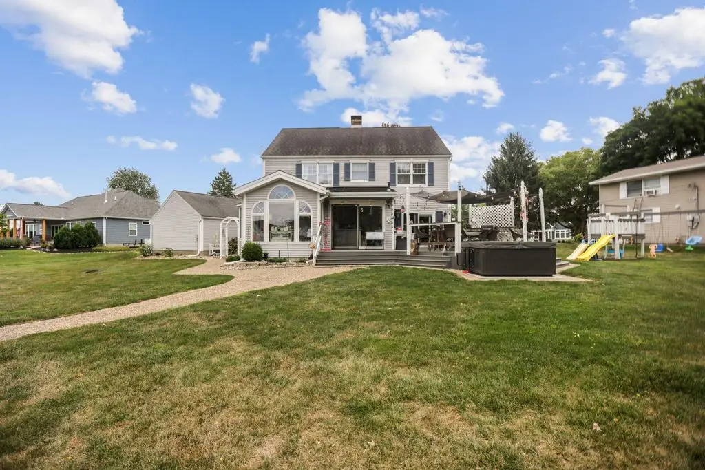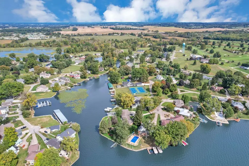 Beautiful waterfront home in desirable Harbor Hills. Located on a quiet circle off the main road. Multiple parks, a beautiful 9 hole golf course, and tennis/pickleball courts make this a great neighborhood. This 2,500 square foot four bedroom, 2.5 bath home sits on a double lot and has 200 feet of water frontage with multiple docks. The living room opens to the large kitchen area with access to the back deck and 180-degree views of the water. The family room connects to a quaint pub area that also leads out onto the large rear deck. Hardwood on the main level. Upstairs you will find four good-size bedrooms with updated carpet and paint. The owners suite has hardwood floors as well. A partial basement and crawl are in the lower level. A detached oversized two-car garage and plenty of room for parking.