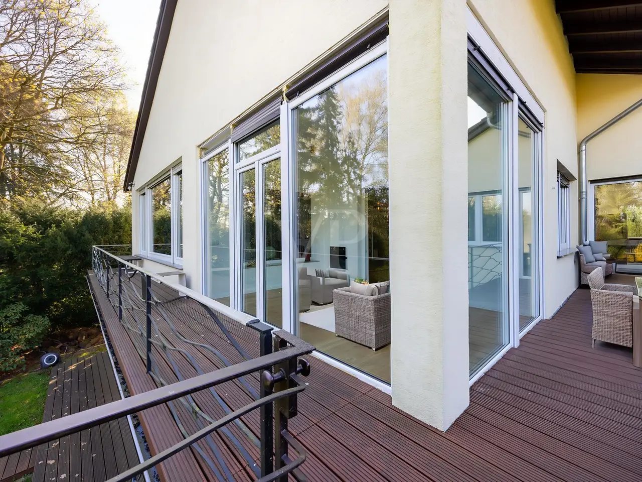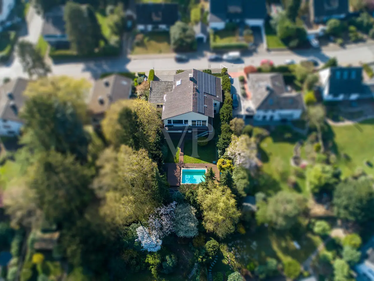 For sale is an impressive detached house that was built in 1968 as a solid construction. The property was completely renovated in 2016 and is now in first-class condition. Five rooms, including 3 spacious bedrooms, a generous dressing room and a modern bathroom, are spread over a generous living space of approx. 280 m². The family dressing room consists of two originally separate rooms that have been combined into one spacious room. Should you require a further room, it is possible to separate these rooms again and return them to their original state. The heart of the house is the impressive living room with a ceiling height of four meters, which offers plenty of space for individual furnishing ideas. The high-quality furnishings are complemented by fine marble floors and real oak flooring, which create a stylish living ambience. Particularly noteworthy are the windows, which were renewed in 2016 and are fitted with bullet-proof glass, which provides excellent sound insulation as well as security. A video-monitored alarm system offers an additional sense of security within your own four walls. The central heating system, powered by a modern oil heating system from 2016 with a 4,500-liter oil tank, guarantees an efficient and reliable heat supply. The property also has a photovoltaic system, which further raises the energy standard. The plot measures approx. 998 m² and offers extensive outdoor areas. One highlight is the approx. 6-metre-long pool, which is protected by a cover and thus enables an extended period of use. This is also heated by electricity from a photovoltaic system, which further increases energy efficiency. The plot offers plenty of space for garden lovers as well as additional outdoor development opportunities. The garden shed built in 2023 offers additional storage space for garden tools and equipment. You can enjoy direct access to the garden from a spacious balcony, which is ideal for outdoor activities and sociable evenings outdoors. For future expansion plans, there is another compartment in the roof, which has already been insulated and is ideal for converting into another room. This option offers additional space for various uses, be it as a study, hobby room or additional sleeping accommodation. The property is located in a quiet residential area that is well connected to urban infrastructure. Shopping facilities, schools and leisure activities are available in the surrounding area, making the house an ideal residence for families and people who value a harmonious environment. Overall, this detached house offers a successful combination of generous space and high-quality features that have been thought through down to the last detail. It invites prospective buyers who pay particular attention to quality, comfort and space. You are welcome to arrange a viewing appointment to see the advantages of this property for yourself.