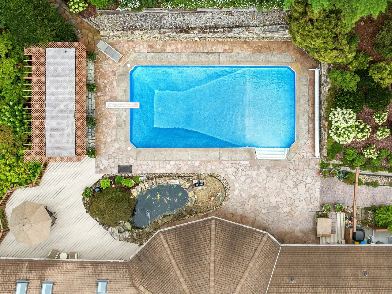A haven of natural beauty, this stunning mountainside sanctuary offers phenomenal 180-degree long-range mountain views, huge outcropping rocks, lush trees, and masterful landscaping including stone terraced gardens and pathways making it a perfect retreat for nature lovers. This home is designed to provide a seamless indoor-outdoor living experience. The great room features a vaulted beamed ceiling and a stone-stacked fireplace that complement the panoramic views. The spacious family room has built-ins and includes a wet bar-kitchenette. The kitchen is fully equipped and positioned to efficiently serve both the indoor and outdoor dining spaces. The spacious primary suite connects to a sunroom that offers magnificent mountain views and nighttime city lights. Additional features include an expansive 20x40 pool, a covered pergola for shaded relaxation, and a serene koi pond with waterfall feature. Be sure to check out the Walk-Thru tour of this private oasis. This feels like paradise!