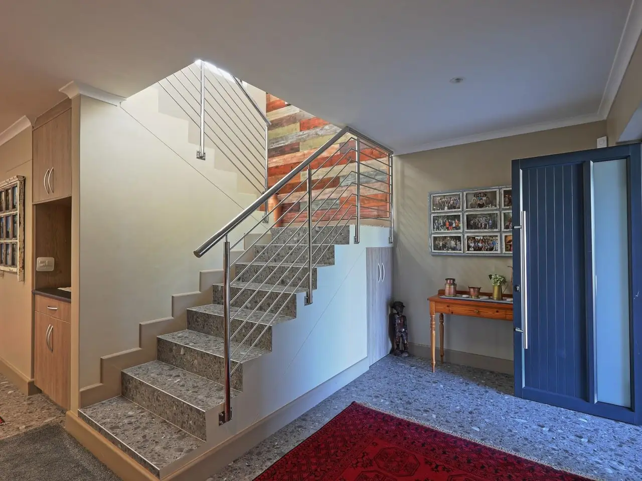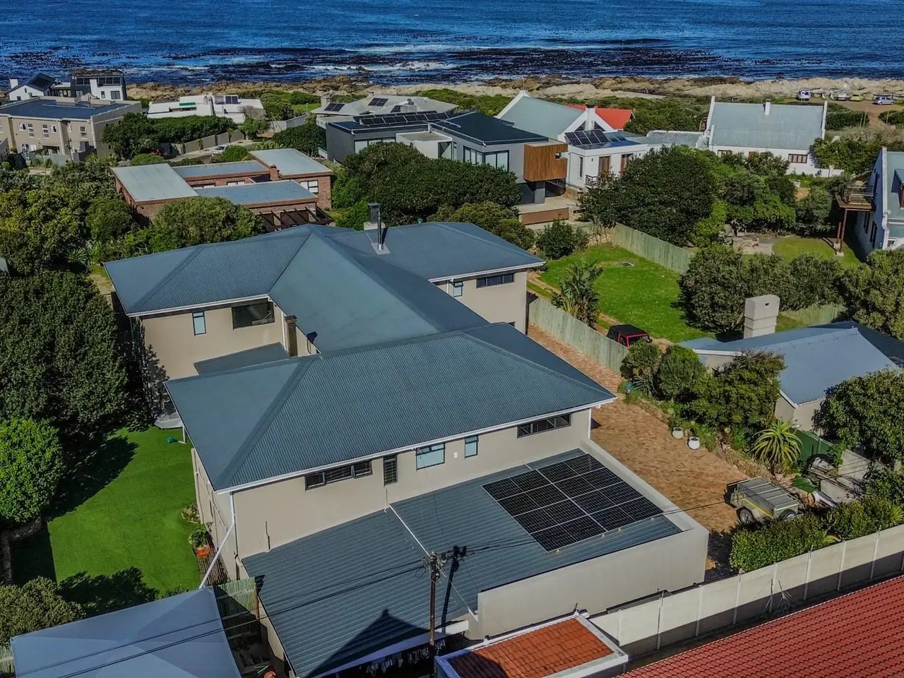 Joint Mandate: Tucked away in an exclusive cul-de-sac of only six properties, this exceptional home enjoys one of the most enviable positions in the area - mere steps from Jan Rabie's tidal pool and the famed cliff paths of Hermanus. Here, rich coastal heritage meets refined modern living, offering you the ultimate lifestyle in a tranquil seaside setting. Thoughtfully designed and impeccably maintained, the home is a testament to attention to detail and quality craftsmanship. Every element has been curated to create a welcoming haven for family and friends - from the sunlit living spaces to the sophisticated security features, including a Wi-Fi distribution hub, CCTV cameras, outdoor beams, and an alarm system. Energy efficiency is ensured with solar panels, an 8kVA inverter with backup batteries, a generator, and rainwater harvesting via two 5,000L and one 2,500L water tanks. The landscaped, fully enclosed garden not only enhances privacy but also exudes serenity. Main Residence The expansive open-plan living area is framed by sweeping ocean views through oversized sliding windows, while exposed beams add a touch of character. A slow-combustion fireplace, built-in braai, and pizza oven make this space perfect for cosy winter evenings and lively summer gatherings. The gourmet kitchen is fitted with a SMEG gas stove, granite countertops, and a generously sized scullery to accommodate all appliances. The main bedroom and three guest suites - each with en-suite bathrooms - offer comfort, privacy, and understated luxury. The master suite enjoys ocean views, balcony access, and ample built-in cupboards. A wide, cupboard-lined passage enhances storage and flow. Lower-Level Retreat An inviting covered entertainment patio with a built-in braai leads seamlessly to the manicured garden. This level also features a welcoming entrance hall, guest cloakroom, direct access to the garages, a large laundry room, domestic quarters, a storeroom, and two dedicated studies - ideal for remote work or running a business. Three Luxury Apartments The property includes three fully self-contained, beautifully furnished apartments - each with its own entrance, entertainment space, and scenic views. These one-bedroom units, all with their own bathrooms comes with open-plan living areas and kitchens, are a proven source of steady income thanks to excellent ratings on booking platforms. The rental operation is ready to be transferred to the new owner without interruption. Garaging & Additional Features Four automated garages cater to multiple vehicles, including extra-height clearance for 4x4s with roof racks or caravans. Secure parking for eight additional vehicles is available. Additional features include: 8kVA invertor with battery backup and solar panels Generator for uninterrupted power Built-in Wi-Fi system servicing all units CCTV, alarm, and perimeter beams Rainwater harvesting tanks (total 12,500L) Water feature with pump This is more than a home GÇô itGÇÖs a lifestyle investment in one of HermanusGÇÖs most coveted locations. Combining sophistication, functionality, and income-generating potential, it stands as a rare opportunity for discerning buyers who value elegance and versatility. Viewing is essential to appreciate the quality, charm, and sheer scale of this remarkabl