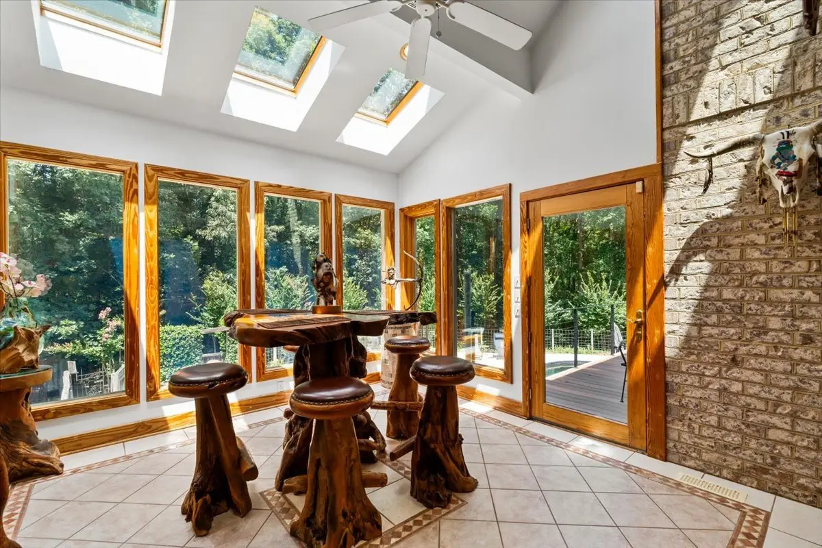 Welcome to this Exceptional Custom Built Brick Contemporary Estate located on 10+ Heavily Wooded Acres! This Absolutely Amazing Home Sits Deep on the Property & Offers Total Privacy & Seclusion! The Super Light & Bright Entry Opens up to a Stunning 2 Story Great Rm w/Custom Woodworking! The Main Level Offers a Formal Great Rm w/Deck Entry + Kitchen/Breakfast Area Filled w/Sun Drenched Light! In addition, there is a Formal Living Rm w/FP & All Glass Sunroom Overlooking the Lush Rear Yard! The Main Level Also Offers a Guest Suite w/Full Bath! Upper Level Has 3 Bedrooms Including a Breath Taking Primary Suite w/Sitting Area + Upper Level Loft! This Room also Offers an Impressive Primary Double Baths w/Oversized Walk In Closets + Steam Shower/Soaking Tub In Between! Upper & Lower Level Laundry Rooms! 2 Car Main Level Garage/Exercise Rm which is Heated/Cooled + a Basement 3 Car Garage! Stunning Gunite Pool w/Overflowing Hot Tub! New Roof in 2025! Whole House Generator! Multiple Decks!
