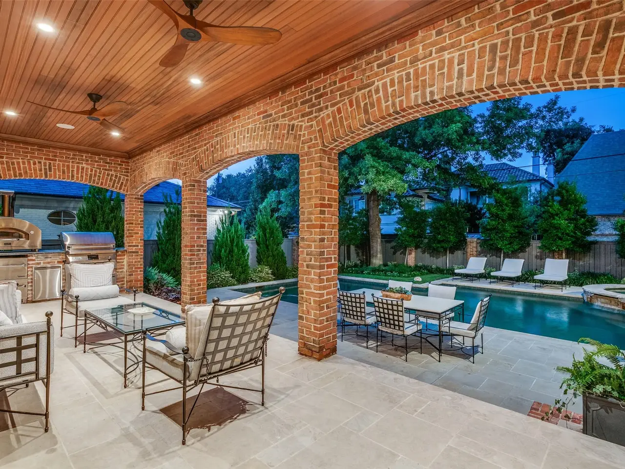 Featured in Flower Magazine, this stunning Tudor Revival on Potomac Avenue was beautifully renovated with Mary Beth Wagner in 2022. Designed by Richard Drummond Davis and built by Gage Homes, it sits on a 105x167 (.40 acres) lot and offers 5 bedrooms, 7 full baths, and a half bath. The home includes 4 living areas with an optional study, 2 dining rooms, an exercise room, and an air-conditioned flex space for work, crafts, or gardening. All baths were renovated with new counters, tile, fixtures, and toilets, plus new hardwood flooring upstairs. The spacious primary suite includes a gracious sitting room, separate bathrooms, and large walk-in closets for dressing. Outdoors, enjoy a refreshing pool, outdoor kitchen, screened porch with TV, and all-new 2023 landscaping. Move-in ready and perfect for entertaining! Two car garage and additional covered parking for two cars under the porte cochre. Additional parking in the gated and, secured motor court.