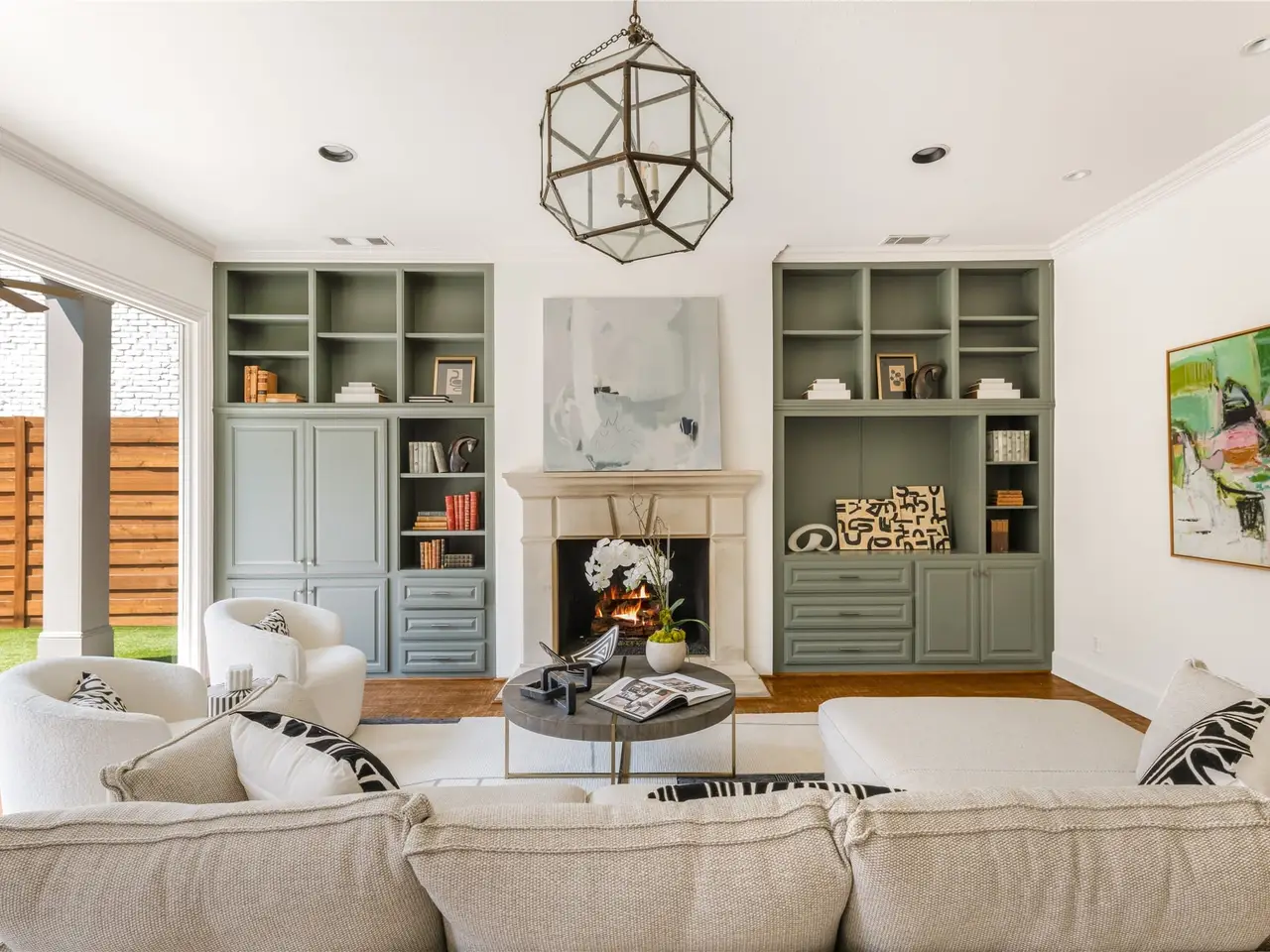 French doors with built-ins