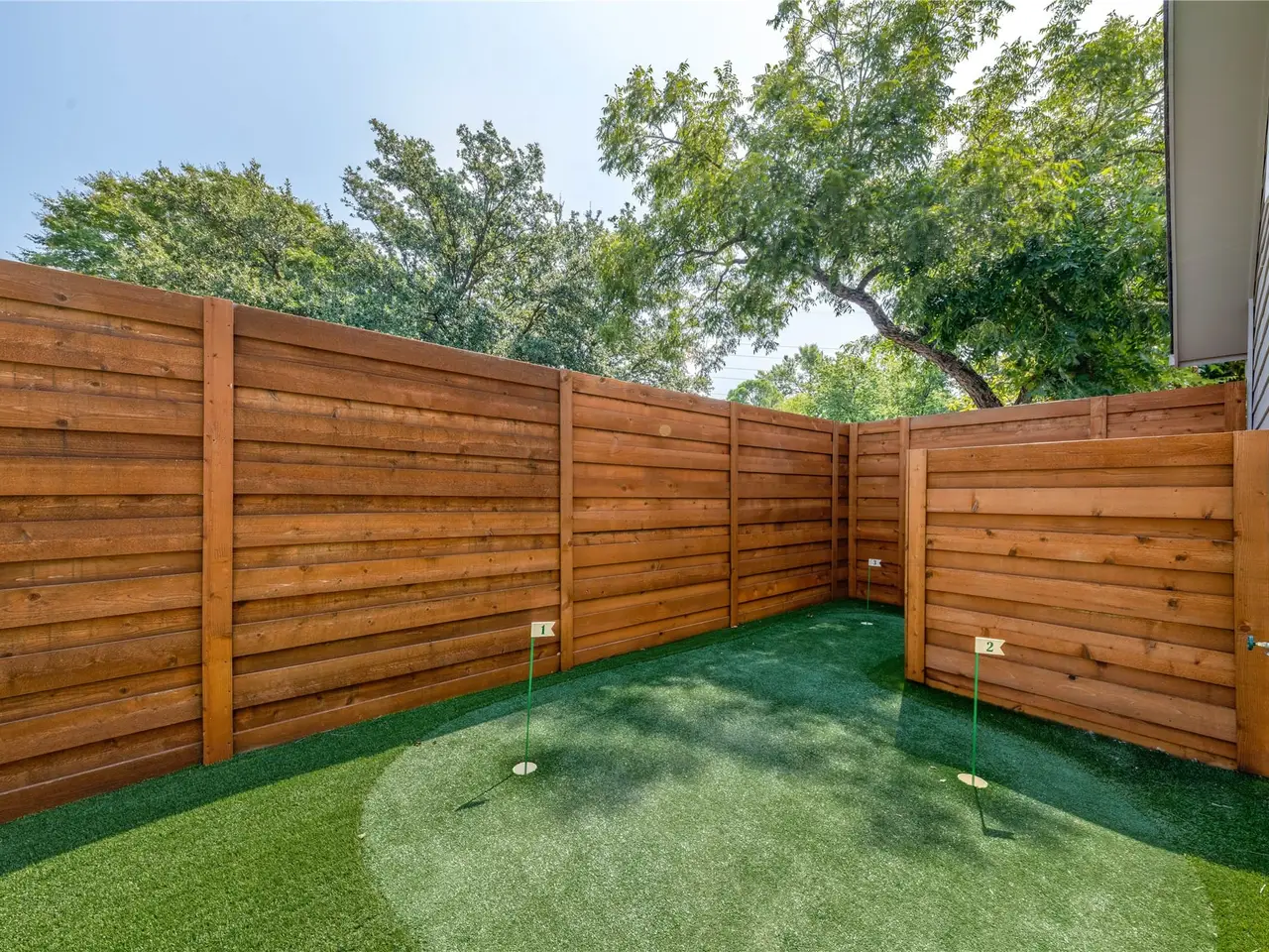 Guest quarters Turfed backyard with putting green