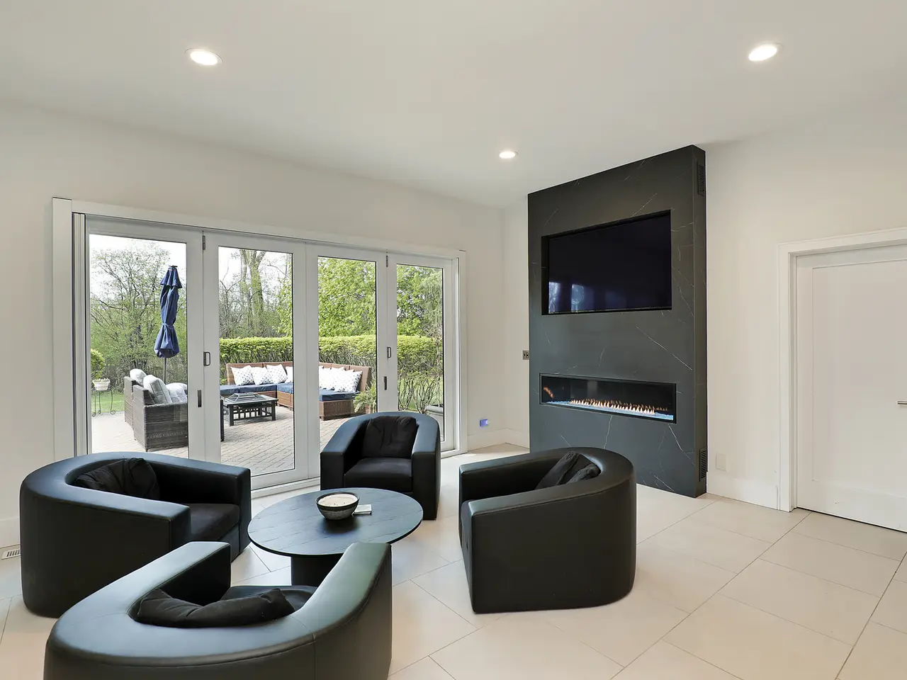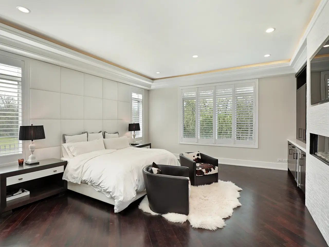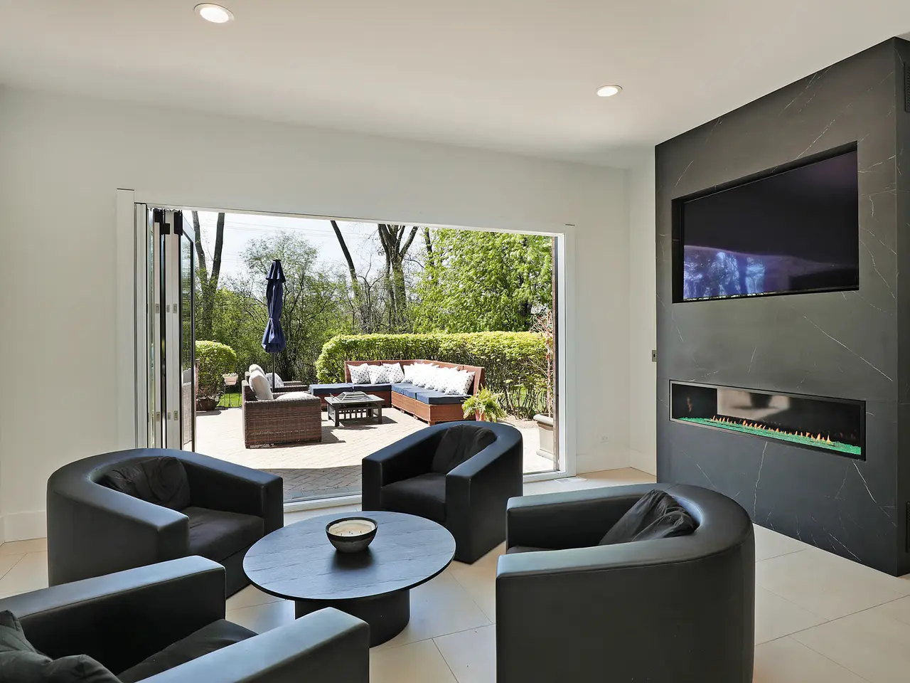 Magnificent stone and brick masterpiece that rests on just under a spectacularly landscaped 1.5 acres. This elegant home lives like a ranch and was designed for entertaining from the inside out. First floor Master suite complete with sitting room, fireplace, wet bar, large WIC, spacious bath with double sinks, steam shower, granite counters and gorgeous views of the prairie. The newly remodeled kitchen was completed in 2023 with marble counters that go on for miles, stunning black cabinets with truly all the storage one may desire, two dishwashers & sinks, high end appliances and a wine fridge that is the focal point of the room as well as a sitting room where you'll find a floating FP and sliding glass doors that lead out to the patio and fire pit. Upon entering the gracious foyer you come to the great room featuring soaring ceilings, a beautiful marble wet bar, a wall of windows with beautiful and an exquisite double sided fireplace. 2nd floor has 5 bedrooms all en suite, plus an enormous bonus room perfect for a playroom, office or additional family room. The lower level offers what we all dream of. An inviting wet bar with kegerator for beer on tap, theater area for watching movies or sporting events, a gym, sauna and lavish additional full bath. Other amenities to take note of are a brand NEW roof, gutters and downspouts done in 2024, two new furnaces and A/C units, completely rebuilt staircase leading up to the 2nd floor with dramatic walkway also redone in 2020 along with magnificent front entry doors. Additionally you'll find a heated 4 car garage, underground sprinklers, gated entry, brick driveway and newly remodeled mudroom with heated floors. This exceptional property allows for other amenities such as a pool, tennis or sport courts. While close to schools and Hwy 41 this one of a kind estate is conveniently located between HP and DF giving you an ideal location yet is privately situated giving one the option for total privacy. A very special home.