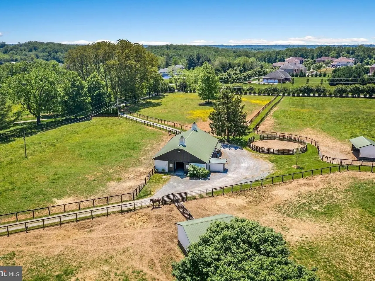Hickory Ridge - one of the region's premier historic estates, offering classic period details & exemplary materials and craftsmanship on 19.47 acres in Highland, MD. The estate comprises the exceptional Manor House, a charming 1749 cottage/guest house, Carriage House/office, an English greenhouse, and first-class equestrian facilities. The Manor House boasts high ceilings and spacious rooms, including a stunning reception hall, formal living room, gracious dining room, a large, modern kitchen, original 1789 kitchen now used for family dining, paneled library, sunroom, and a mud room. Large bedrooms and modern baths occupy on the upper two levels, and the lower level features the incredible Jockey Club Pub (see photos) and an adjoining rec room. Working fireplaces grace the formal rooms, bedrooms, and the original kitchen. A large, covered side porch overlooks a lovely, recessed garden, and brick walkways lead to an underground wine cellar and a 50x25 heated pool. The bucolic setting is meticulously landscaped & graced by specimen trees, historic boxwoods, stacked-stone walls, & English-style gardens. Equestrian facilities include a 9-stall barn, a separate tack room & gym, double-fenced paddocks, and run-in sheds. Completing the grounds are a 3-car garage & a large equipment shed. Approached by two tree-lined lanes, this historic estate offers luxury and comfort for family living, elegant space for grand entertaining, first-class equestrian facilities, and a rare close-in sanctuary for those seeking privacy with easy access to area amenities.