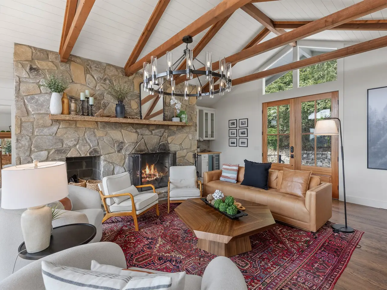 • Massive stone fireplaces