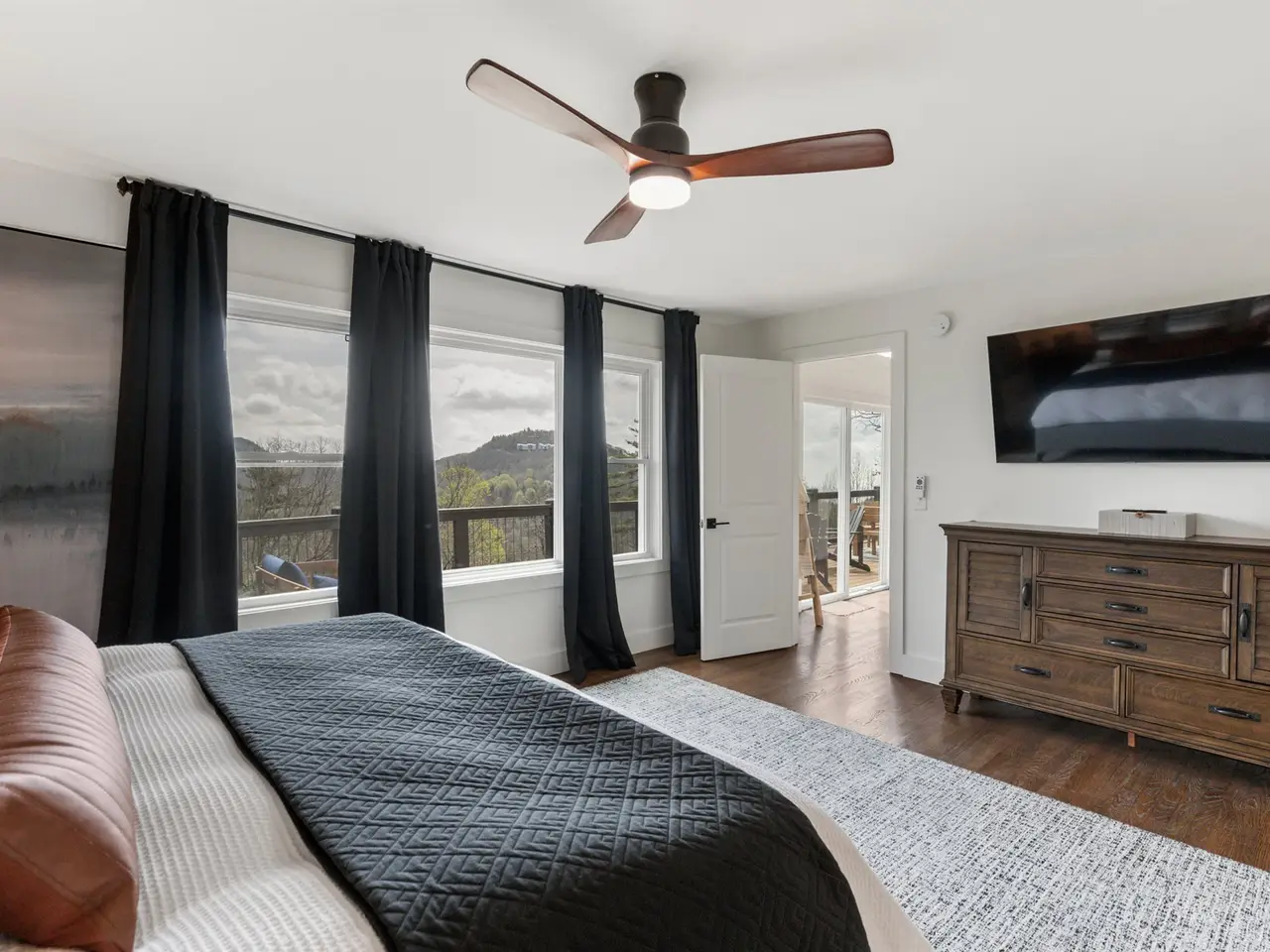 Welcome to your Highlands hideaway - a stunning 4-bedroom, 4.5-bathroom mountain residence just minutes from the heart of charming downtown Highlands! Perched at a high elevation, you'll enjoy cool summer breezes and panoramic sweeping mountain views that will make every day feel like a vacation. Blending modern sophistication with timeless mountain character, this renovated and designer-furnished home is assured to become your sanctuary. Step inside to discover two expansive great rooms, each featuring its own massive stone fireplace, ideal for cozy evenings or lively gatherings. The modern kitchen and updated baths blend style and comfort, offering elegant finishes and thoughtful functionality. A spacious bunk room wing provides versatile accommodations for guests or family, while generous outdoor living spaces - including multiple decks and a scenic viewing porch?invite you to savor sunrise coffee or sunset cocktails with views that soothe the soul. Thoughtfully and beautifully furnished and move-in ready, this home is the perfect summer escape - or year-round haven. Don't miss the opportunity to own this beautifully appointed mountain gem in one of Highlands' most coveted locations!