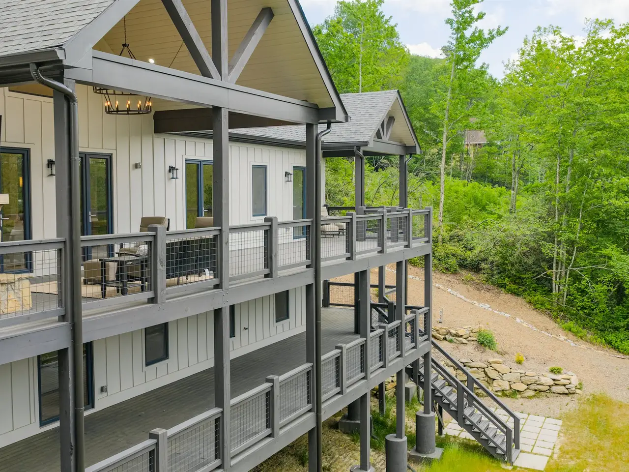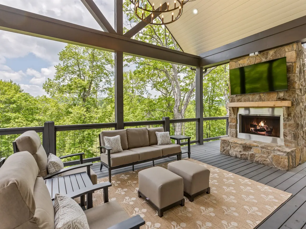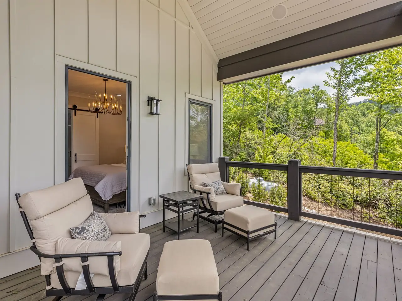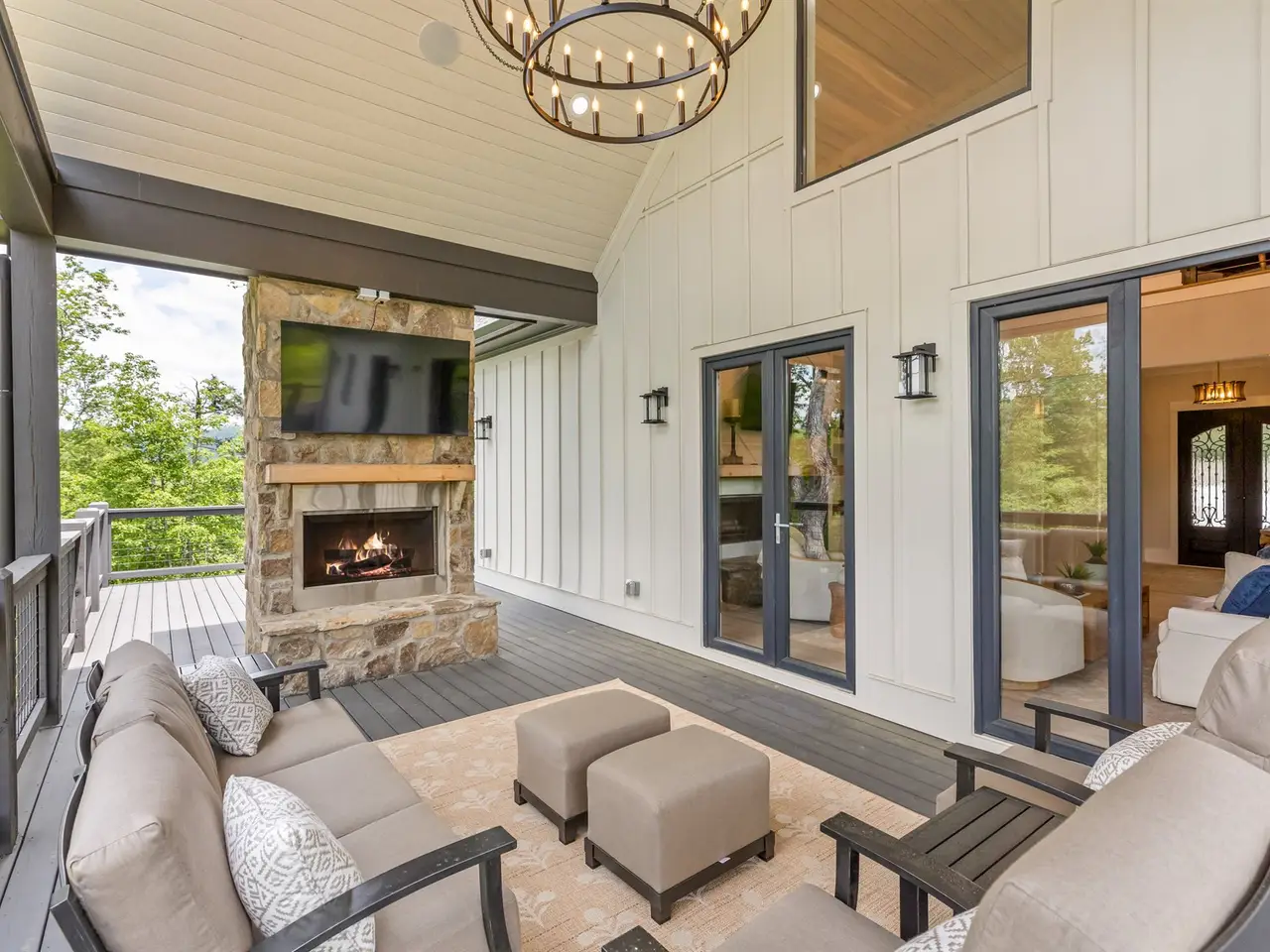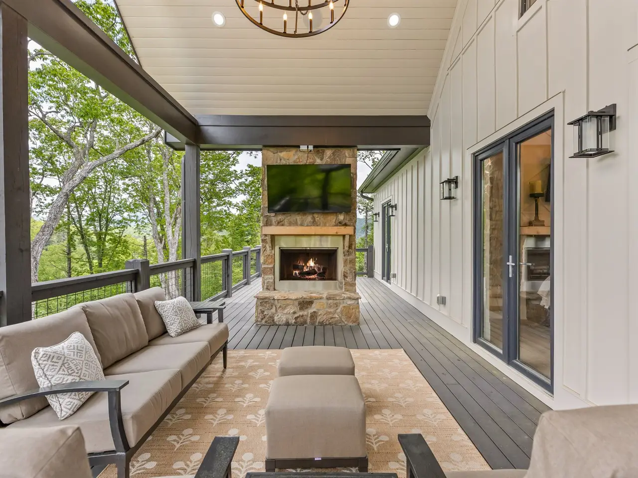 Come fall in love with this beautifully crafted new construction home, designed for luxurious mountain living with timeless style & high-end finishes. Built with precision & quality in every detail, the home features stunning triple-clad European glass doors & windows for peace & quiet, blending durability with elegant design. The main level offers an open, light-filled floor plan with soaring ceilings & a stunning wood-burning fireplace with gas starter. The beautifully tiled gourmet kitchen is equipped with premium Thermador appliances, including a wifi controlled Thermador oven/range, a walk-in pantry with a custom thick cedar sliding door, & seamless flow into the sophisticated dining area. Step outside to a generous northwestern facing covered rear porch with a second wood-burning fireplace, plus an open grilling deck with a built-in gas line for outdoor cooking & relaxing. Soak in the glorious sunsets then meander to the private primary suite, a true serene escape, showcasing a spa-style bath with a show-stopping large framed-glass shower & soaking tub. Two additional guest suites with ensuite baths with heated floors, a spacious laundry room, powder room & a mudroom complete the main floor. Upstairs, you'll find a private & generous guest suite with a full bath with heated floors, a cozy loft perfect for a morning relaxation & a bonus room that would function beautifully as a home office or yoga space. The expansive lower level includes a second living area with a large & beautifully tiled kitchenette, custom wine cellar, game area or dining space, powder room & three guest suites each with private baths with heated floors. A spacious lower-level deck opens to a gentle & open, pet-friendly yard perfect for frolicking furry friends or a firepit for stargazing & s'mores. Additional highlights include a 3-car garage with a finished bonus room above ideal for an office, studio, or gym & an encapsulated crawlspace. The home is offered partially furnished (some exclusions apply) with curated designer pieces from Dutchman's of Highlands. Smart home features include a whole-home audio system, custom smart TV wiring, & a fully integrated camera system, all easily controlled from your smartphone. Located just minutes from downtown Highlands with a trailhead just up the street for nature exploring, this remarkable residence offers the perfect blend of mountain charm & modern luxury & is ready for you to move-in, relax & enjoy the perfect season on the plateau.