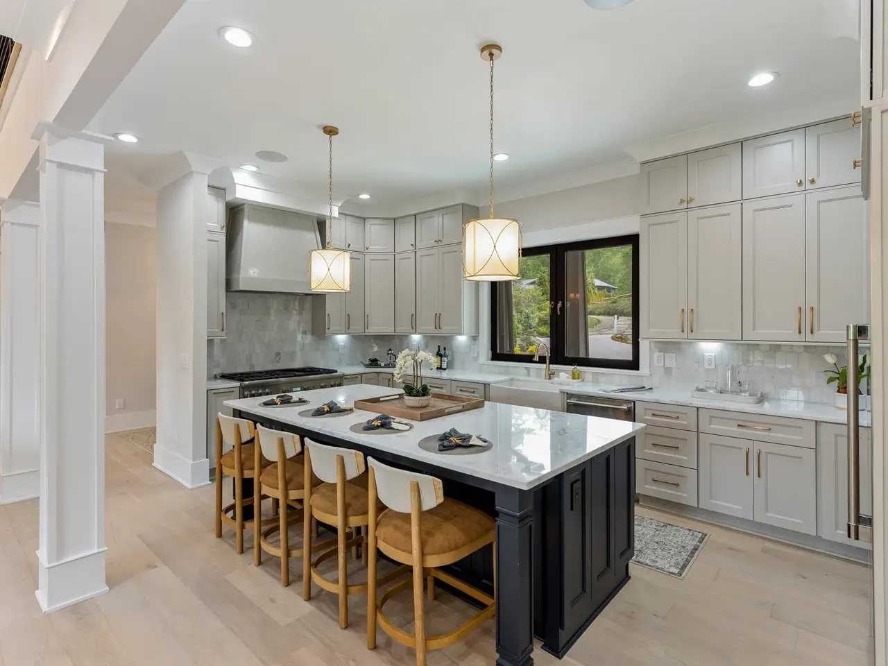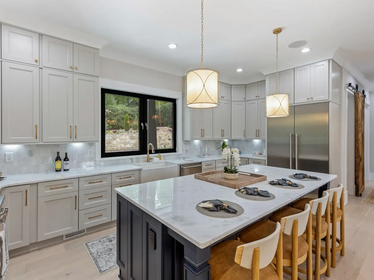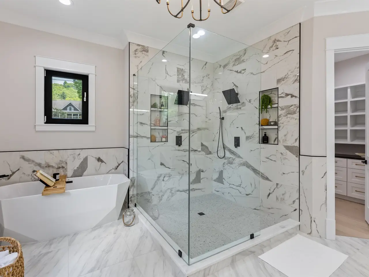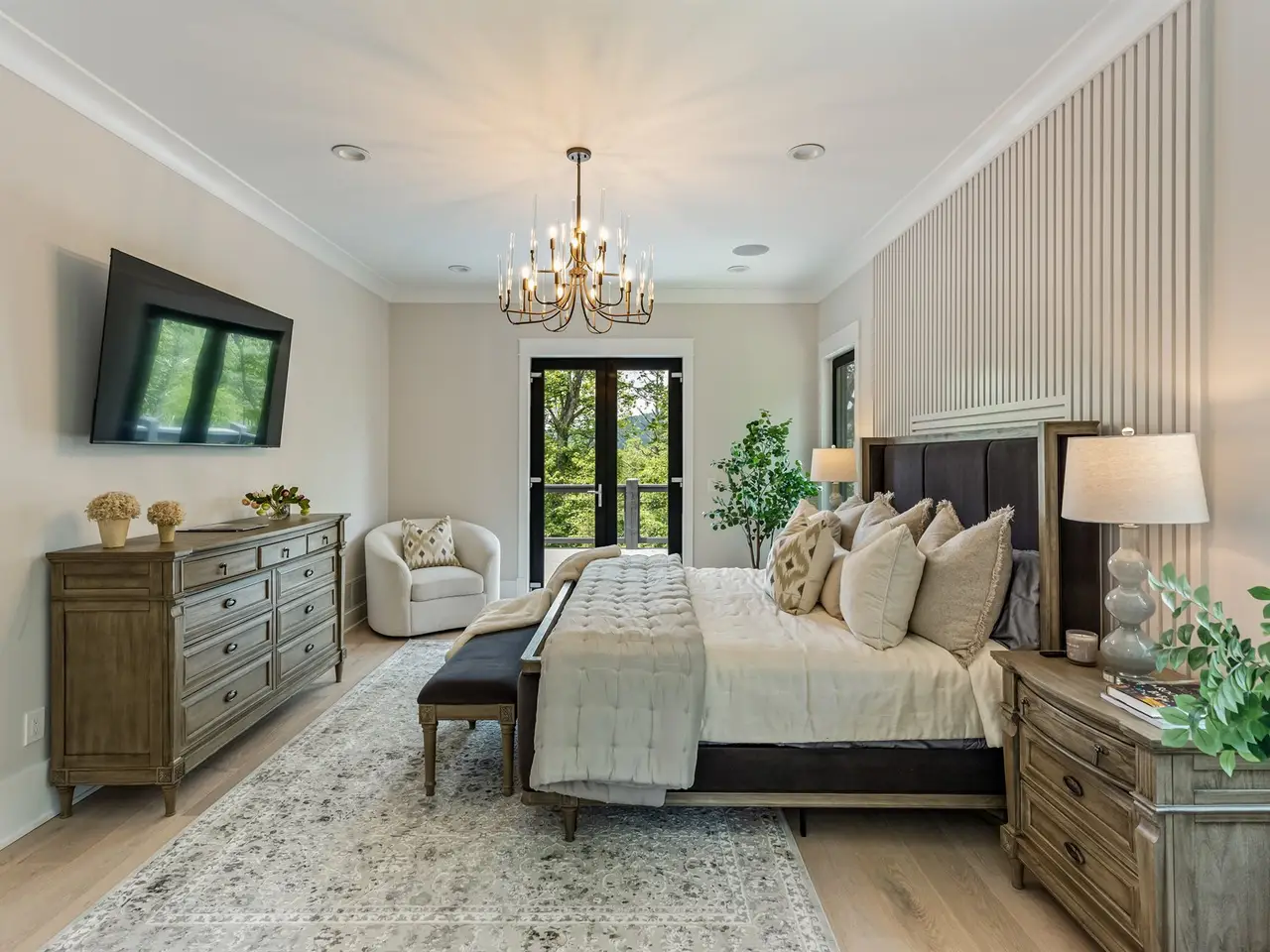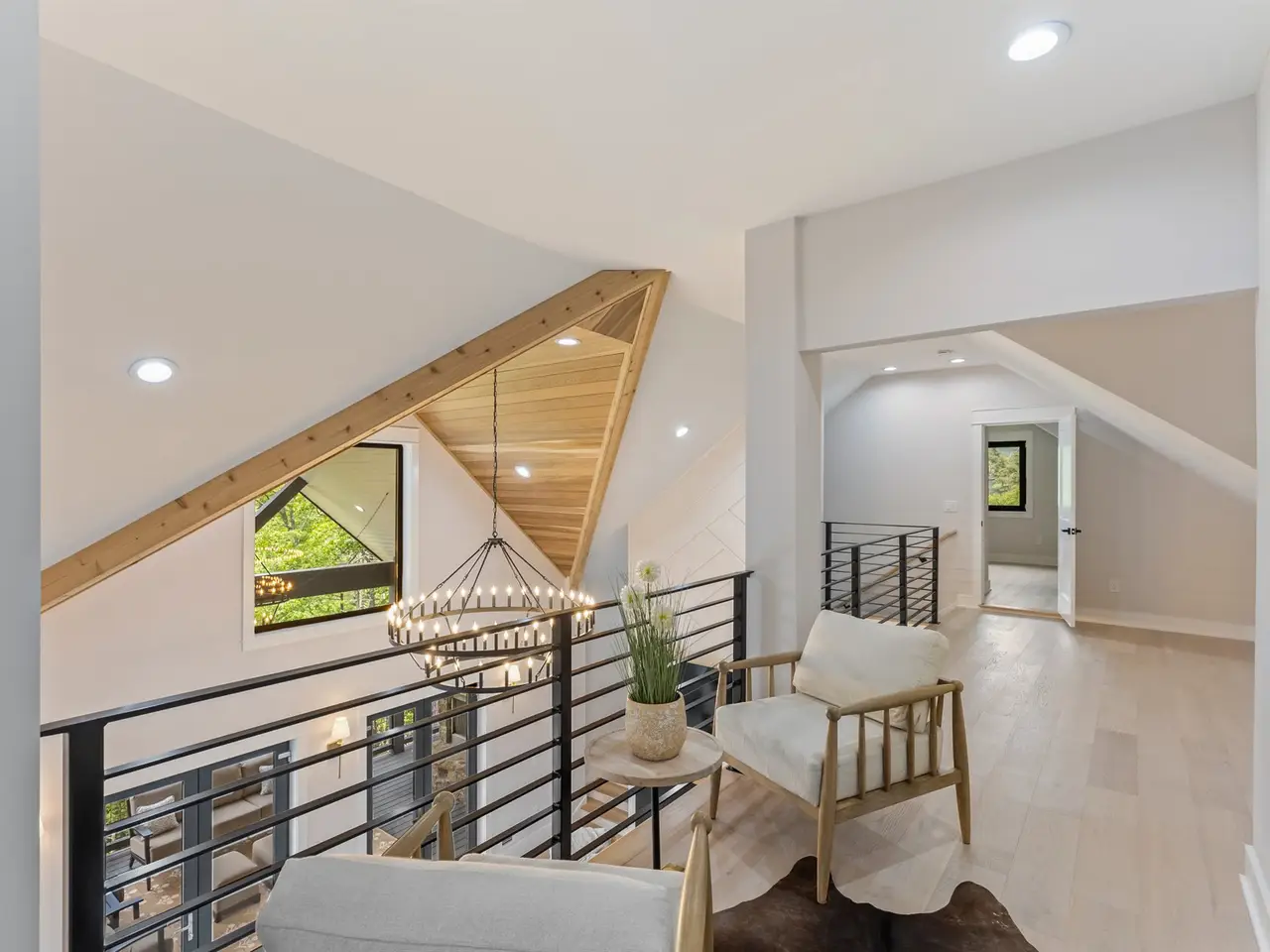 Come fall in love with this beautifully crafted new construction home, designed for luxurious mountain living with timeless style & high-end finishes. Built with precision & quality in every detail, the home features stunning triple-clad European glass doors & windows for peace & quiet, blending durability with elegant design. The main level offers an open, light-filled floor plan with soaring ceilings & a stunning wood-burning fireplace with gas starter. The beautifully tiled gourmet kitchen is equipped with premium Thermador appliances, including a wifi controlled Thermador oven/range, a walk-in pantry with a custom thick cedar sliding door, & seamless flow into the sophisticated dining area. Step outside to a generous northwestern facing covered rear porch with a second wood-burning fireplace, plus an open grilling deck with a built-in gas line for outdoor cooking & relaxing. Soak in the glorious sunsets then meander to the private primary suite, a true serene escape, showcasing a spa-style bath with a show-stopping large framed-glass shower & soaking tub. Two additional guest suites with ensuite baths with heated floors, a spacious laundry room, powder room & a mudroom complete the main floor. Upstairs, you'll find a private & generous guest suite with a full bath with heated floors, a cozy loft perfect for a morning relaxation & a bonus room that would function beautifully as a home office or yoga space. The expansive lower level includes a second living area with a large & beautifully tiled kitchenette, custom wine cellar, game area or dining space, powder room & three guest suites each with private baths with heated floors. A spacious lower-level deck opens to a gentle & open, pet-friendly yard perfect for frolicking furry friends or a firepit for stargazing & s'mores. Additional highlights include a 3-car garage with a finished bonus room above ideal for an office, studio, or gym & an encapsulated crawlspace. The home is offered partially furnished (some exclusions apply) with curated designer pieces from Dutchman's of Highlands. Smart home features include a whole-home audio system, custom smart TV wiring, & a fully integrated camera system, all easily controlled from your smartphone. Located just minutes from downtown Highlands with a trailhead just up the street for nature exploring, this remarkable residence offers the perfect blend of mountain charm & modern luxury & is ready for you to move-in, relax & enjoy the perfect season on the plateau.