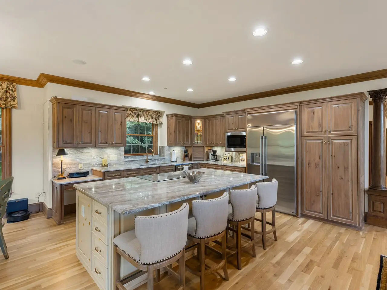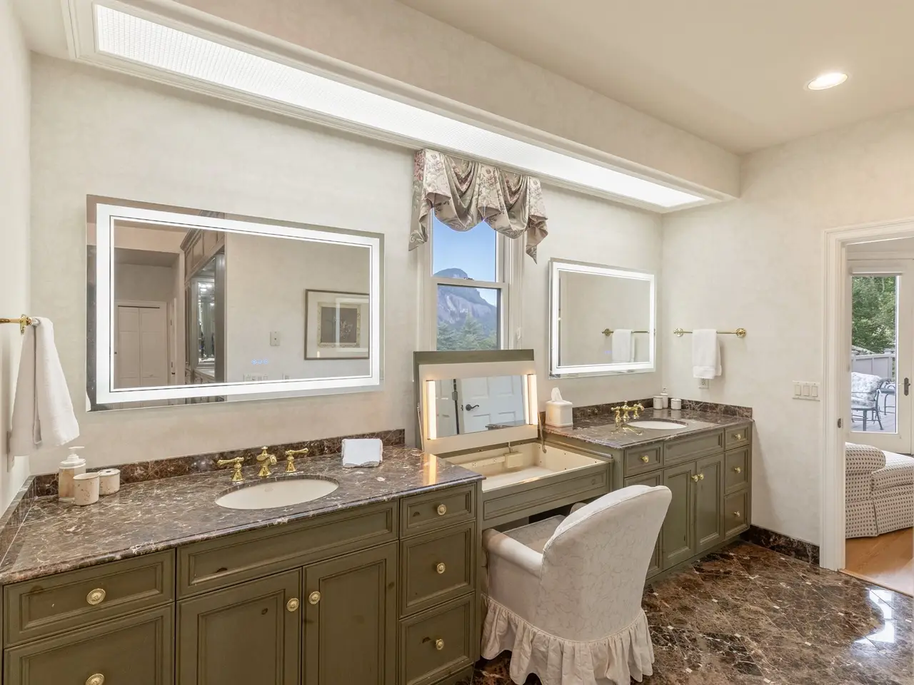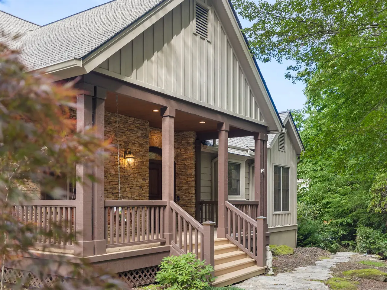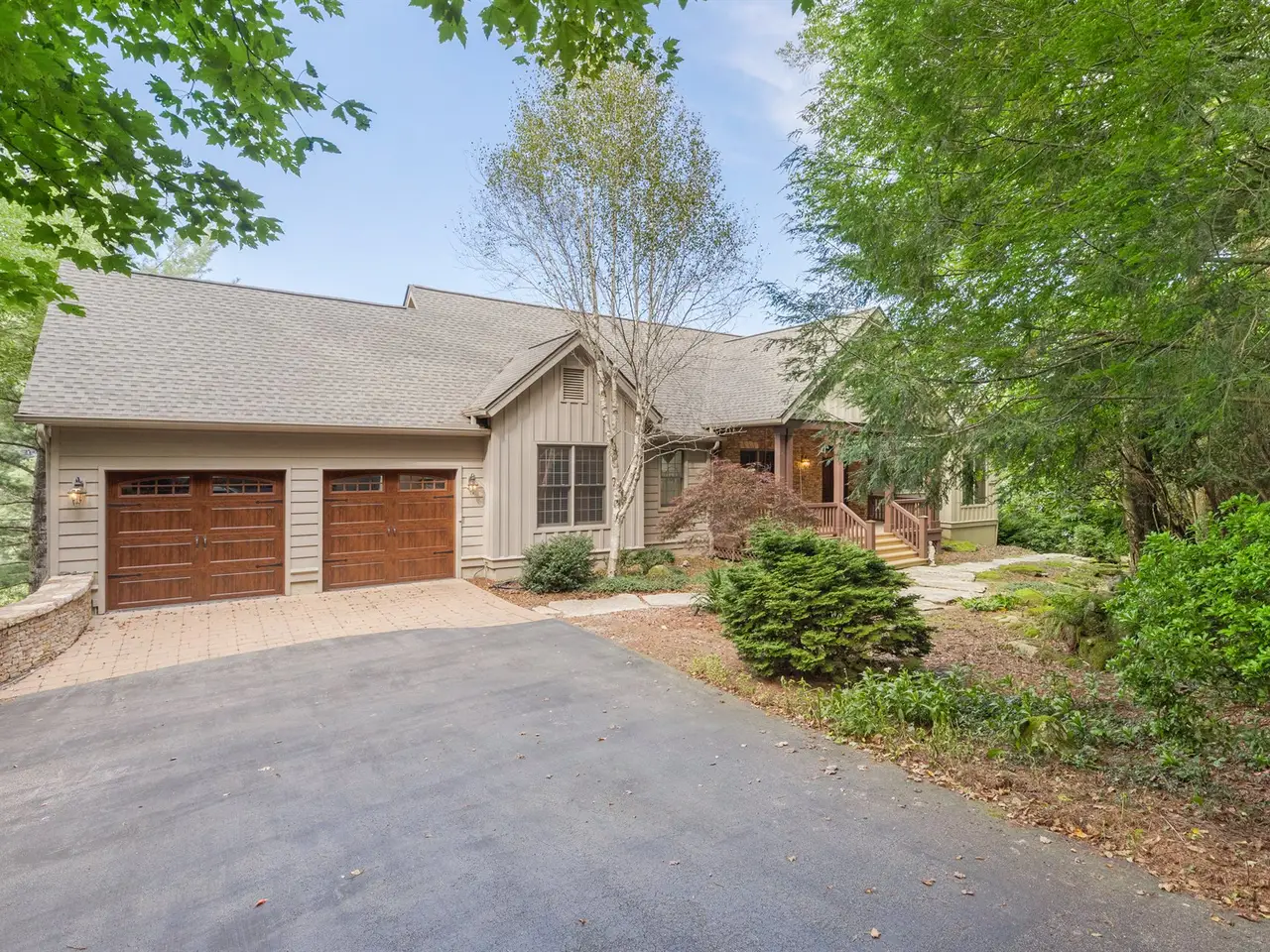This is the panoramic BIG VIEW! Prepare to be captivated by sweeping, unobstructed views of iconic Whiteside Mountain from this stunning Highlands Falls Falcon Ridge residence, a home so remarkable it has been featured twice in Architectural Digest. Designed with generous proportions and effortless flow, the home offers main-level living with the primary suite conveniently located on the entry level. Architectural details abound, highlighted by custom wormy chestnut and oak features throughout, including an impressive 3? solid wormy chestnut entry door. The primary suite commands breathtaking mountain views and sunrises and boasts a lavish Italian marble bath with soaking tub, oversized shower, dual lighted mirrors, hidden lighted vanity, Kohler fixtures, custom walk-in closets, and a private wet bar with sink and mini-fridge. The open-concept living, dining, and kitchen spaces flow seamlessly onto a screened porch with a fully outfitted grilling station featuring a Blaze grill?an entertainer's dream with Whiteside Mountain as the backdrop. The main level also conveniently includes a guest bedroom, full bath, office/den with custom glass paned wormy chestnut and oak door, and a full laundry room with sink. The lower level provides for guest privacy with a second living area with fireplace, private deck, two spacious en-suite bedrooms, powder room, bonus/flex room with gym/playroom potential, and a secondary laundry area. Recent upgrades are extensive, including a remodeled kitchen, refinished hardwood floors, 27 new windows, new roof, gutters with guards, encapsulated crawlspace, repaved driveway with focal pavers, updated HVAC systems, new water heaters with recirculation pump, blown-in attic insulation, new gas logs in main level fireplace, and view clearing to fully showcase dramatic views of Whiteside Mountain, Wildcat Ridge, and Cullasaja Club beyond. A drainage system beneath the upper deck ensures protection for the lower-level outdoor living area. Peace of mind comes with a 500-gallon fresh water reserve tank and a whole-house generator. A two-car garage with workshop, along with a welcoming exterior accented by a serene water feature, completes this mountain sanctuary. This Highlands Falls home is more than a residence?it is a retreat of timeless architecture, meticulous updates, and awe-inspiring views. Membership to Highlands Falls CC is not mandatory but the amenities are tremendous and the club is vibrant.