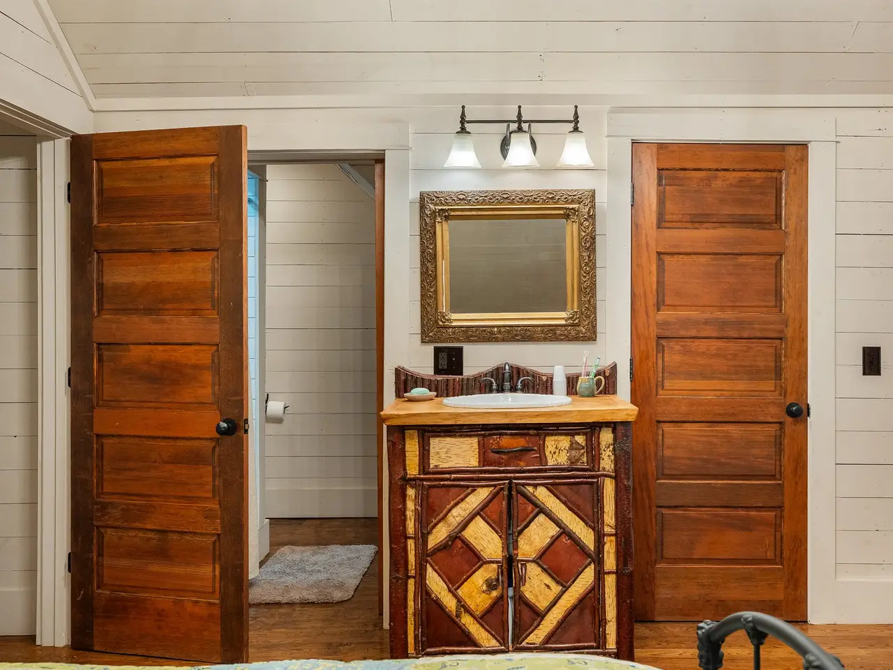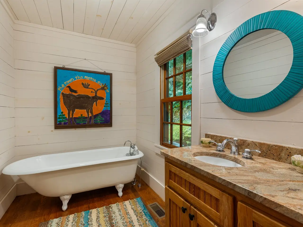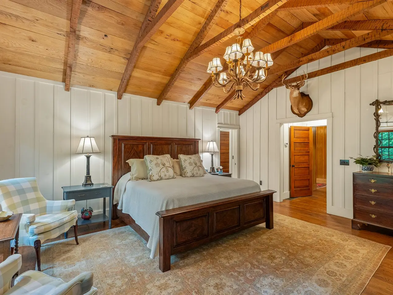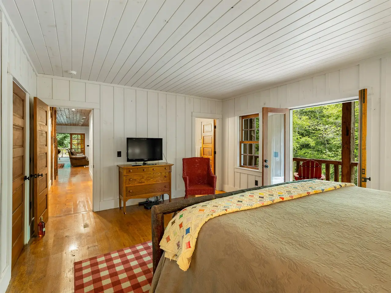 Discover the quintessential Highlands home, masterfully crafted by renowned local builder Tommy Chambers and completed in 2010. This four bedroom, 5.5 bathroom masterpiece showcases the unparalleled charm of antique Pennsylvania timbers, seamlessly blending historical character with modern amenities. Nestled on 1.82 private acres, the property overlooks the picturesque Big Creek and waterfall, whose soothing sounds can be enjoyed from each of the home's seven covered porches. A large family can sleep 10 easily and still have privacy. Inside the home, you'll find three extraordinary stone fireplaces, constructed from locally sourced boulders uncovered during construction, adding a rustic elegance to the space. Additionally, there is another fireplace on the lower level large porch. The expansive main level living room features soaring ceilings, a loft, and a grand fireplace, with direct access to a covered porch that offers breathtaking views of the cascading creek and waterfall. The kitchen features a breakfast area, sub-zero refrigerator, hard surface countertops, a high-end double oven gas range with griddle, grill, heat lamps and exhaust. The main level primary bedroom is a tranquil retreat, complete with a beautiful fireplace, vaulted ceilings, and a large private porch. Each spacious guest bedroom includes an ensuite bath and its own private covered porch, ensuring comfort and privacy for all. Though this home is conveniently close to town, it offers a serene escape from the world, where history, craftsmanship, and natural beauty converge. Adding to its allure, the property is just moments away from the upscale SkyLine Lodge and Oak Steakhouse, providing quick and easy access to a town favorite restaurant and bar. Experience the timeless allure and historical richness of this expertly designed home, where every detail has been thoughtfully crafted to create a sanctuary of peace and elegance.