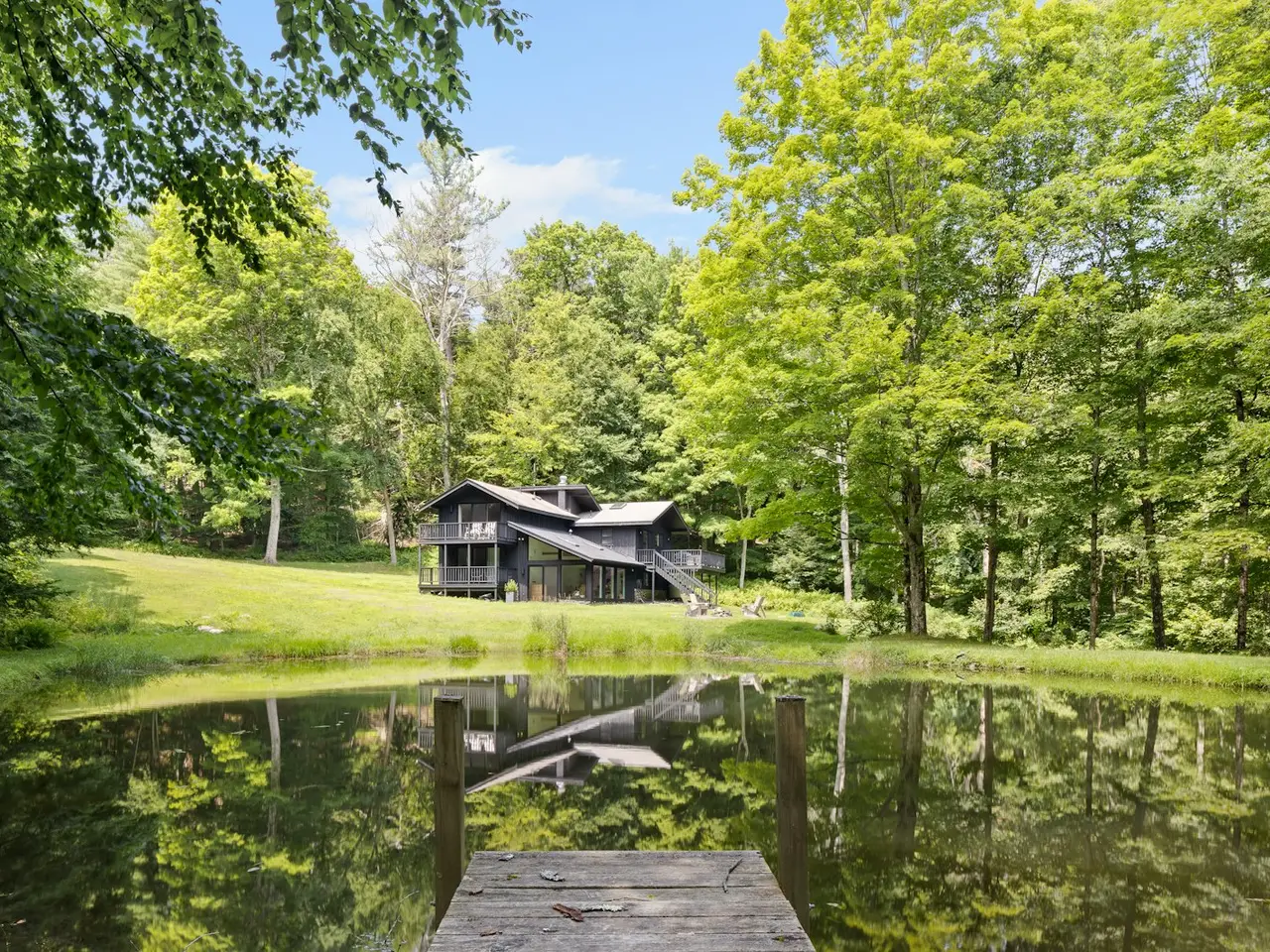 Architecture meets nature in Hillsdale. A fully secluded getaway at the end of a private dead-end road on 7 pristine acres. This sunny 3-bedroom, 2-1/2 bath house is inspired by Scandinavian design and features 3 outdoor decks, with views of a spring-fed stream, a crystal clear pond, and deep green woodlands. Central AC for summer days and a wood stove for snowy nights. An ideal layout for working from home and for guests, this well-maintained house includes a ground-level walkout room which would be ideal for a studio or for entertaining. Reimagined by a fashion editor and creative director, 10 minutes from Great Barrington and 7 minutes to the Catamount Ski Resort, this property is situated between the Berkshires and the City of Hudson, with endless shopping, food and cultural destinations.