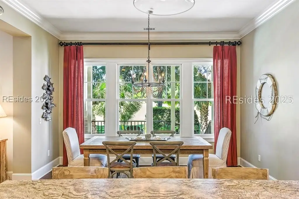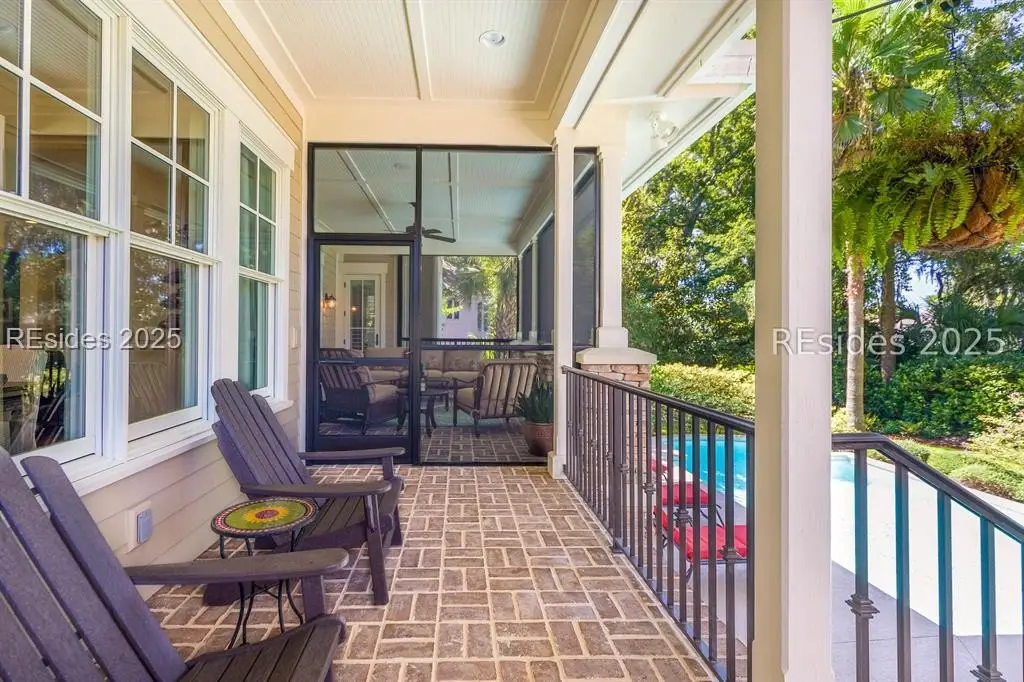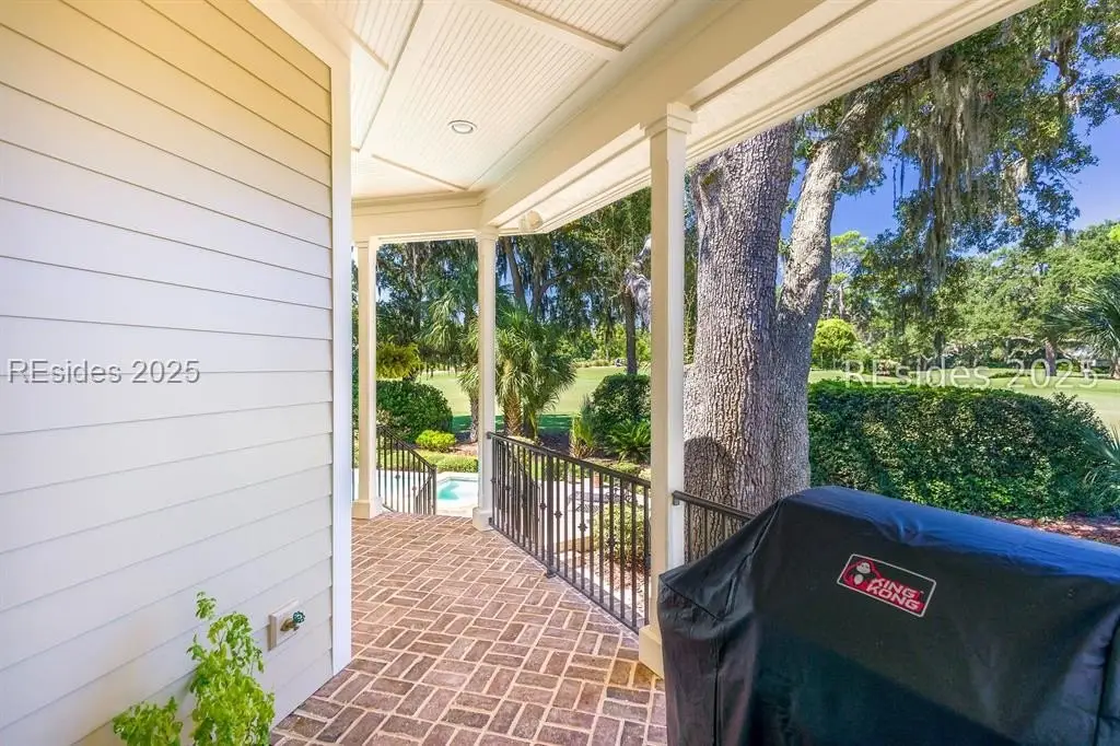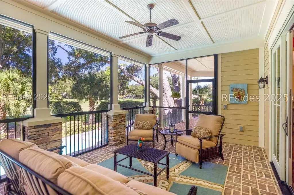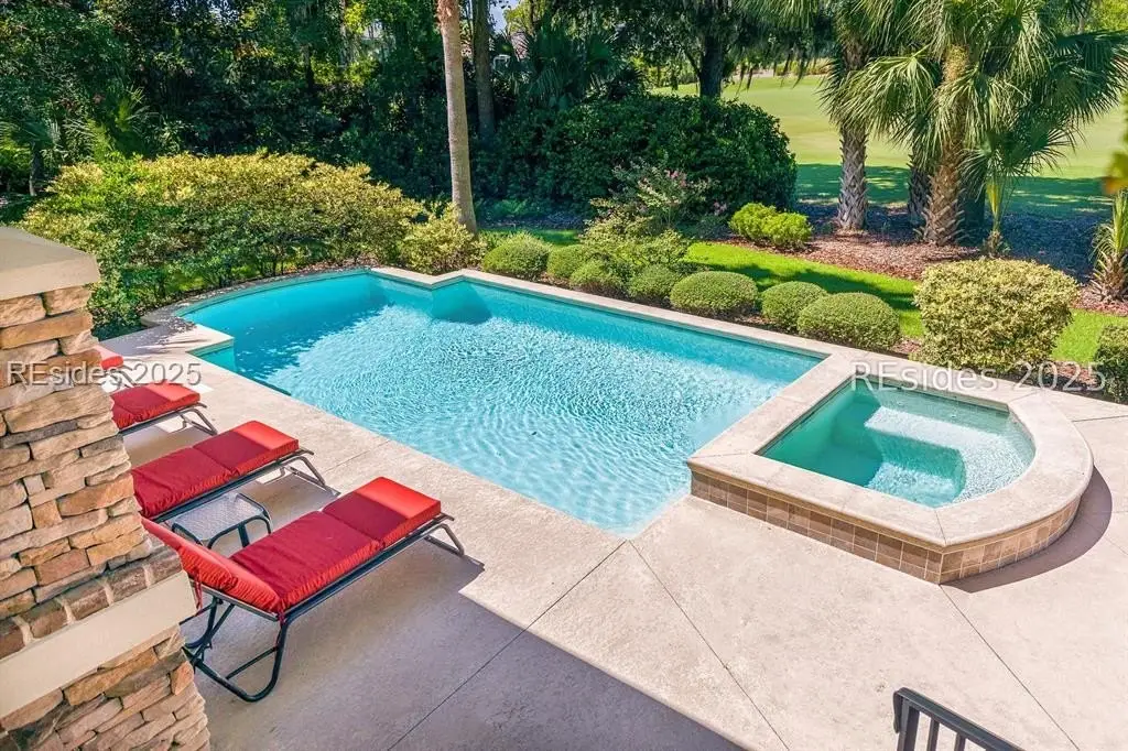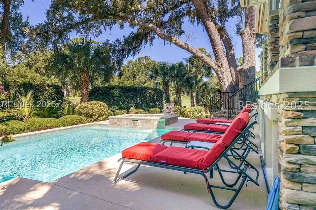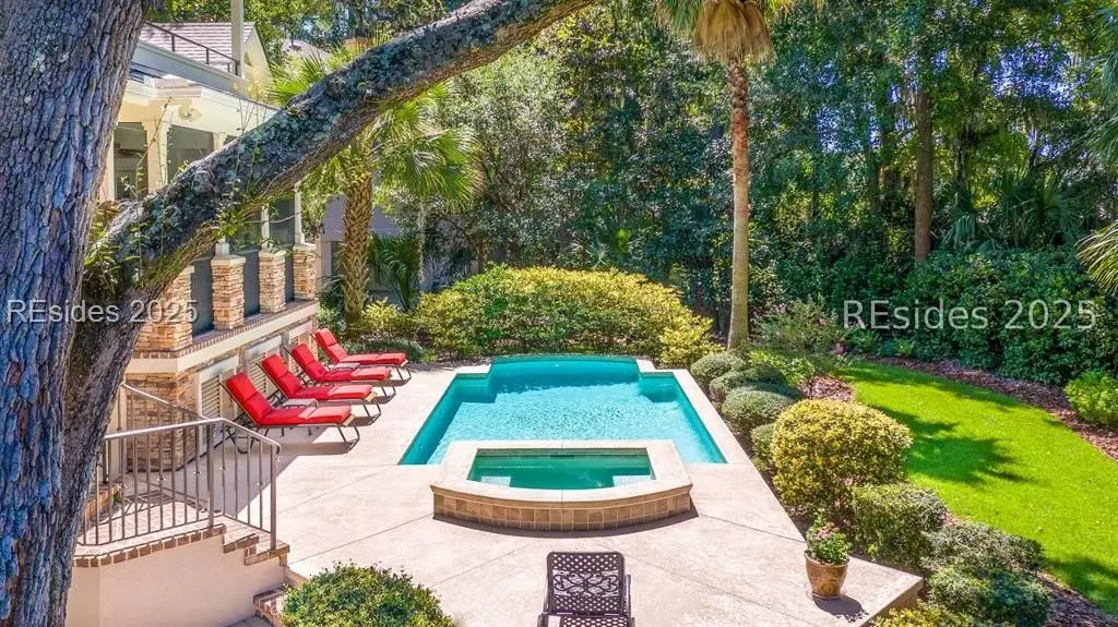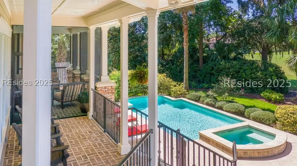 Nestled on a quiet cul-de-sac in the private Leamington community, this award-winning custom home combines timeless design, modern comforts, and a premier setting on the 13th fairway of the Arthur Hills Golf Course. With 3,618 square feet, this home has been meticulously maintained and thoughtfully crafted for both everyday living and entertaining. Inside, the family room centers around a gas fireplace and flows naturally into a custom kitchen, which features a large island, gas cooktop, stainless steel appliances, and beverage refrigerator. The first-floor primary suite offers privacy and convenience, while two upstairs ensuite bedrooms enjoy access to an upper-level covered deck with stunning golf views. A spacious fourth ensuite over the garage features a sitting area and a large walk-in closet, making it an ideal private retreat for guests or extended family. A private office provides the perfect space to work from home. Outdoor living shines with a screened porch, covered grilling deck, and saltwater pool with jacuzzi. Lush landscaping, a mosquito misting system, and panoramic fairway views create a private, resort-like setting. The backyard showcases panoramic fairway views, creating a tranquil retreat. Completing the home are an oversized 2-car garage with a golf cart bay, a spacious, walk-in attic with easy access, impact-rated windows and doors, integrated speakers, and a built-in safe.Living in Leamington means enjoying private beach access at the Leamington Beach Club, a new community pool and recreation complex, kayak launch onto the 11-mile lagoon, playground with bocce courts, golf cart-friendly streets, and 24/7 security. Few communities on Hilton Head offer this level of lifestyle, and few homes capture it as beautifully as 12 Leamington Ct.