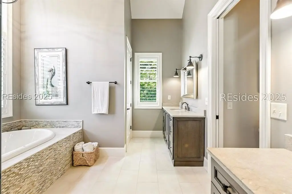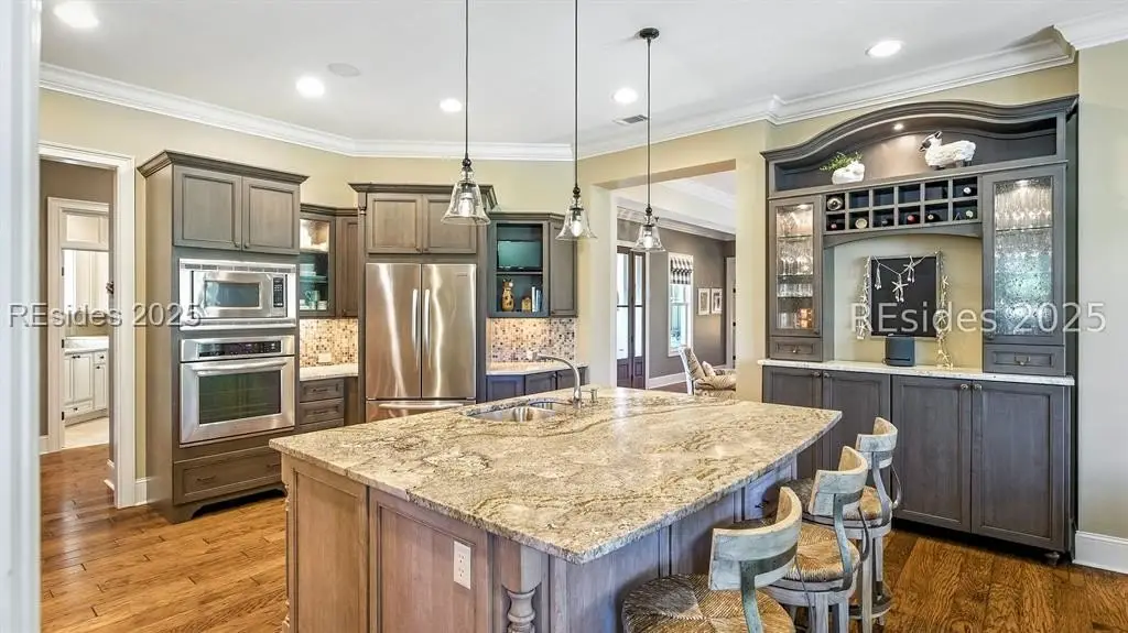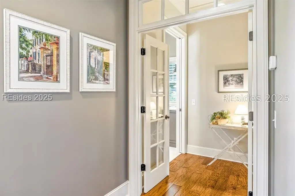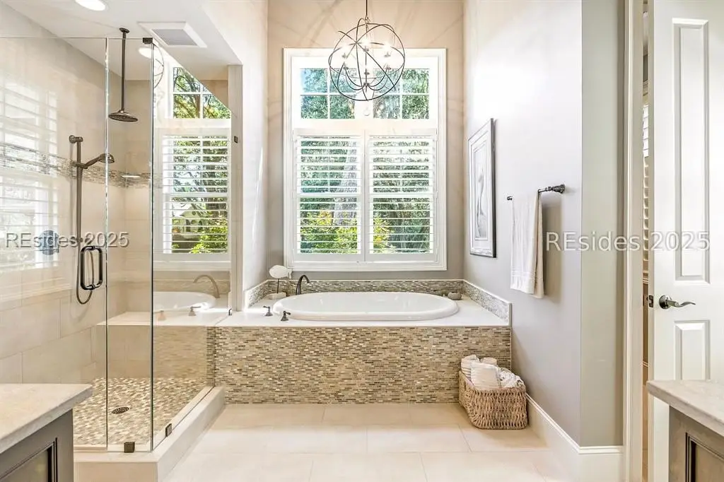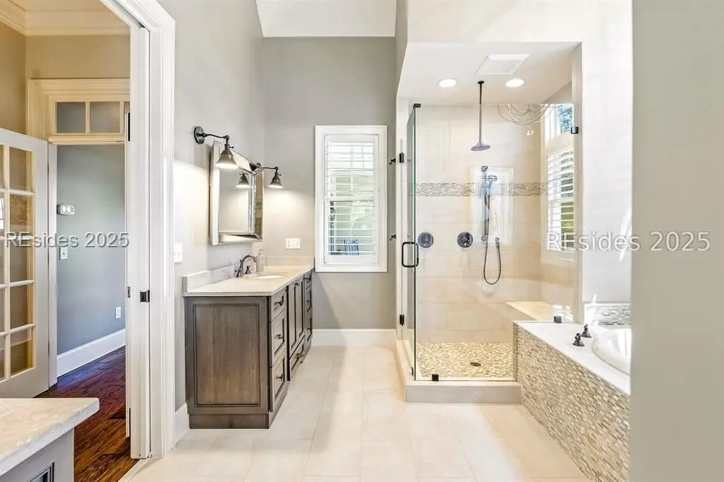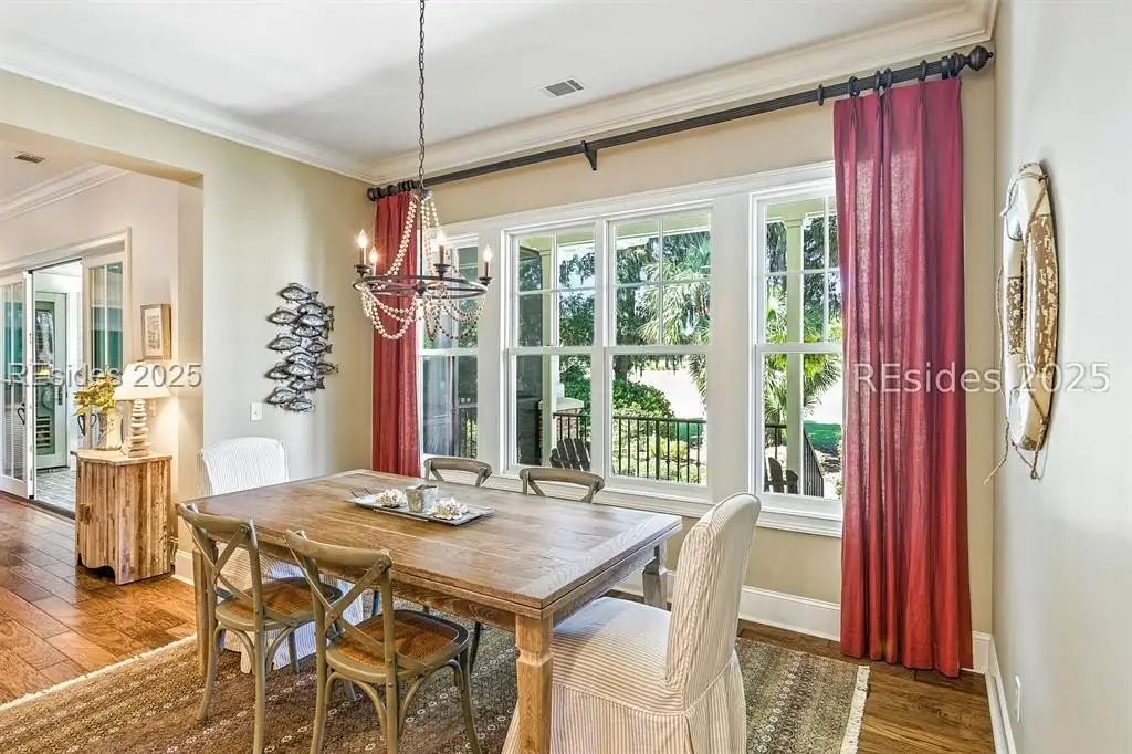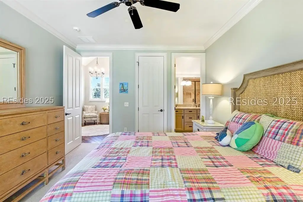 Nestled on a quiet cul-de-sac in the private Leamington community, this award-winning custom home combines timeless design, modern comforts, and a premier setting on the 13th fairway of the Arthur Hills Golf Course. With 3,618 square feet, this home has been meticulously maintained and thoughtfully crafted for both everyday living and entertaining. Inside, the family room centers around a gas fireplace and flows naturally into a custom kitchen, which features a large island, gas cooktop, stainless steel appliances, and beverage refrigerator. The first-floor primary suite offers privacy and convenience, while two upstairs ensuite bedrooms enjoy access to an upper-level covered deck with stunning golf views. A spacious fourth ensuite over the garage features a sitting area and a large walk-in closet, making it an ideal private retreat for guests or extended family. A private office provides the perfect space to work from home. Outdoor living shines with a screened porch, covered grilling deck, and saltwater pool with jacuzzi. Lush landscaping, a mosquito misting system, and panoramic fairway views create a private, resort-like setting. The backyard showcases panoramic fairway views, creating a tranquil retreat. Completing the home are an oversized 2-car garage with a golf cart bay, a spacious, walk-in attic with easy access, impact-rated windows and doors, integrated speakers, and a built-in safe.Living in Leamington means enjoying private beach access at the Leamington Beach Club, a new community pool and recreation complex, kayak launch onto the 11-mile lagoon, playground with bocce courts, golf cart-friendly streets, and 24/7 security. Few communities on Hilton Head offer this level of lifestyle, and few homes capture it as beautifully as 12 Leamington Ct.