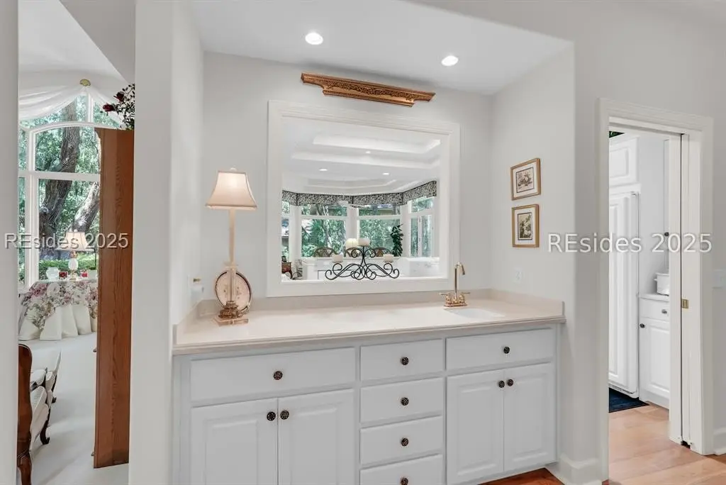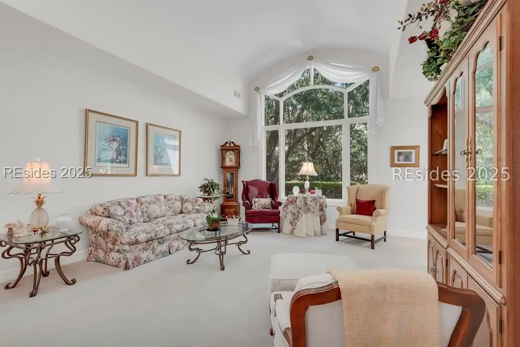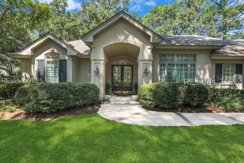 Bright, open, and airy. This beautifully maintained Port Royal Plantation home offers single-level living with no steps and a thoughtful layout designed for comfort and convenience. Built in 1999, the home features 2,922 square feet with three bedrooms and two and a half baths. Hardwood floors, smooth painted ceilings, high ceilings, and abundant natural light create an inviting atmosphere throughout. The living and dining rooms are accented by a gas fireplace and wet bar, making the home ideal for entertaining. The spacious primary suite includes a walk-in closet, double vanities, shower, and a jetted tub, with an office just off the suite. A two-car garage and full-sized lot complete the property, which is ideally located near the beach and all of the outstanding amenities Port Royal Plantation has to offer.