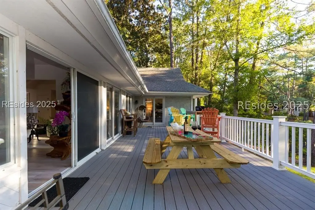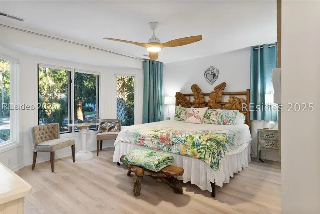 Colorful, newly remodeled, and full of Hilton Head charm, this 3-bedroom, 2.5-bath home is the ideal island getaway or rental investment. Centrally located in the luxurious golf and beach community of Palmetto Dunes, the home is just a short stroll to the beach and an easy walk to the Omni Resort. Step inside to find a bright, open, and airy floor plan with modern coastal design touches throughout. The stylish kitchen features stainless steel appliances and a chic backsplash, while the living area opens to tranquil lagoon views. Enjoy the convenience of an outdoor shower, perfect after a day on the beach. This home is in excellent condition and loaded with updates: new roof, new HVAC condenser, and polybutylene plumbing replaced. Sold fully furnished, its currently on the short-term rental market and shows like a model home. Whether you're looking for a vacation escape, a rental property, or a second home, this move-in-ready gem in Palmetto Dunes is a rare find!