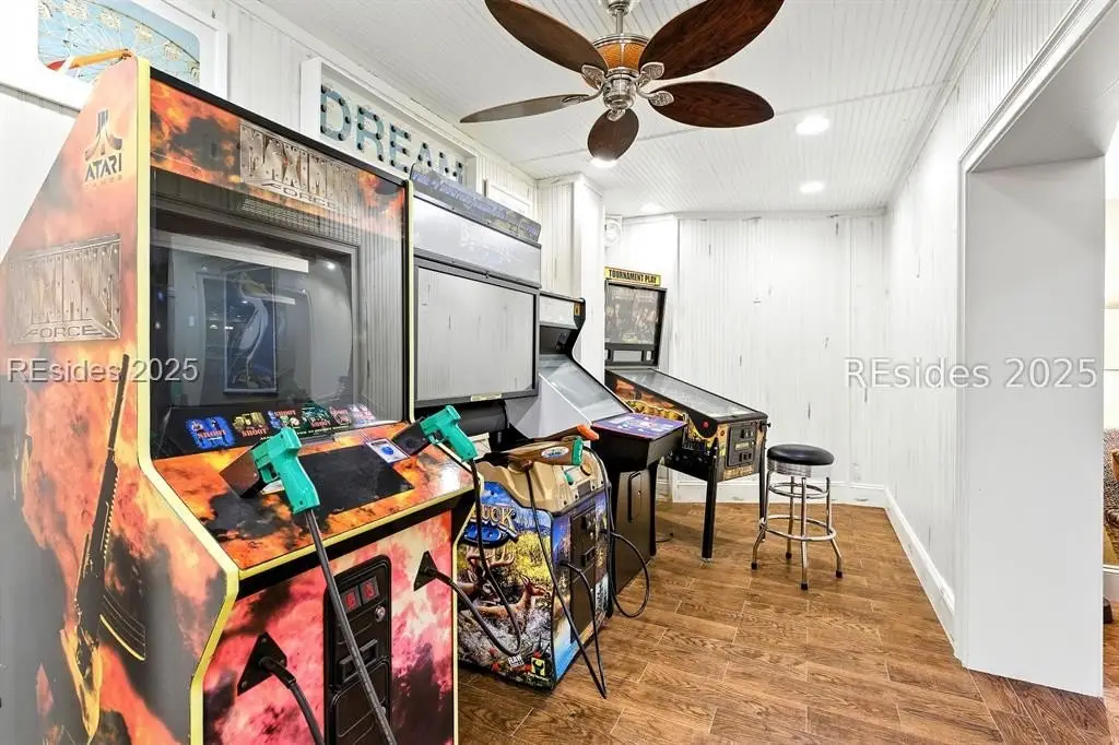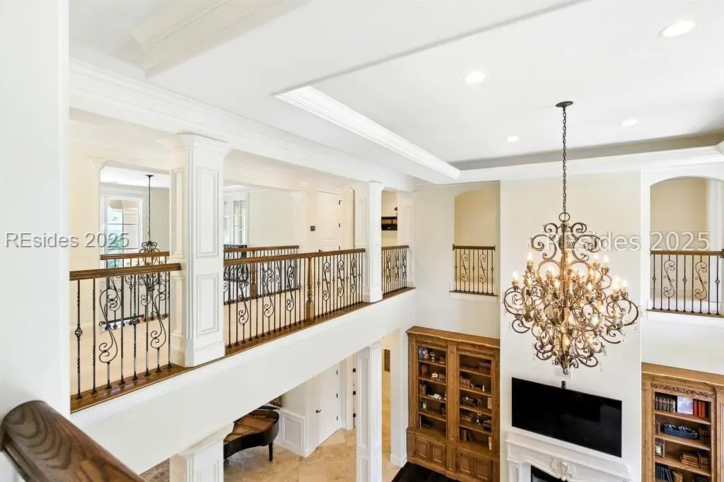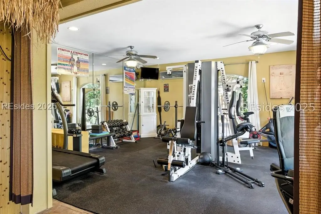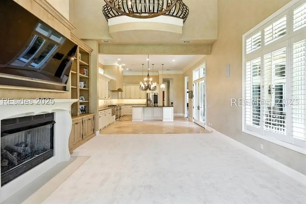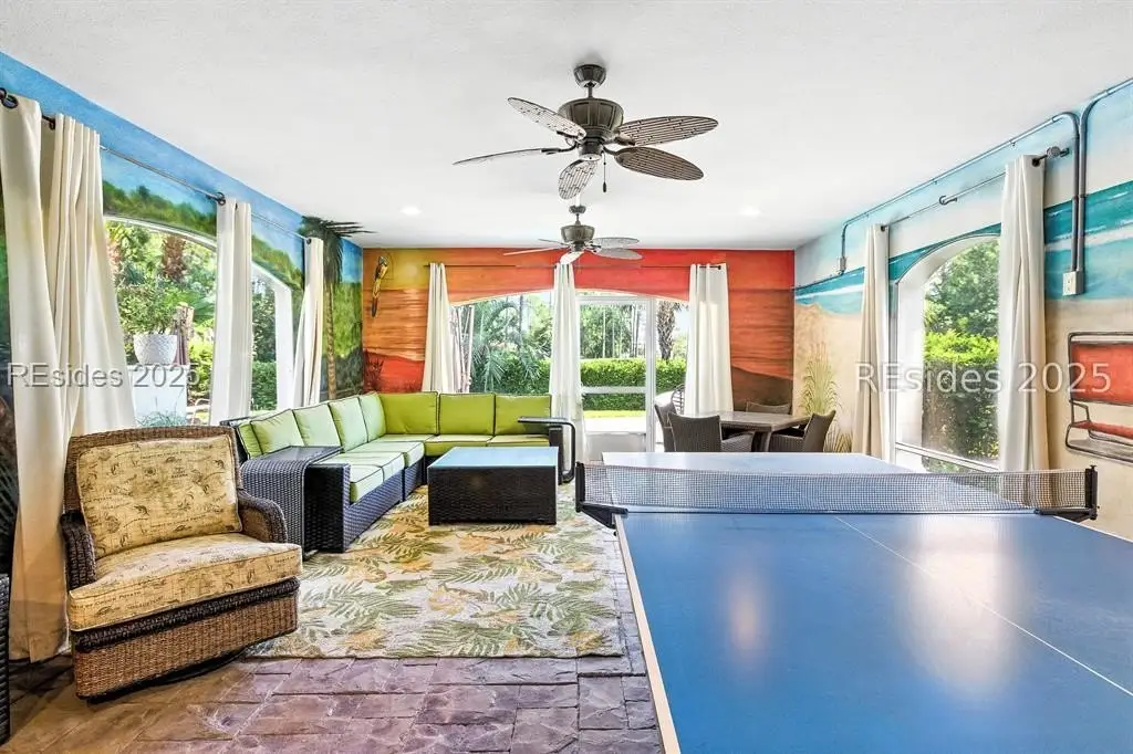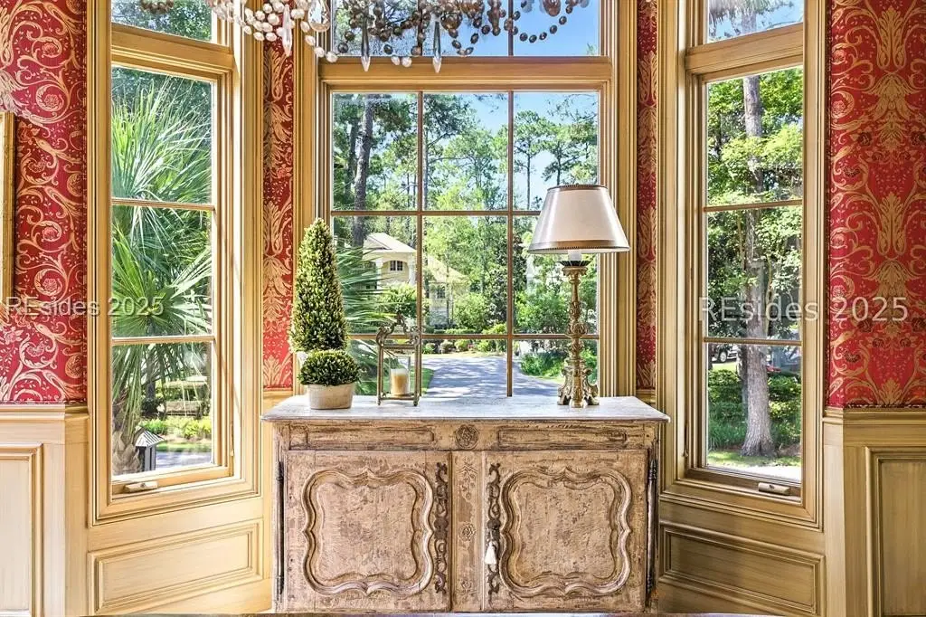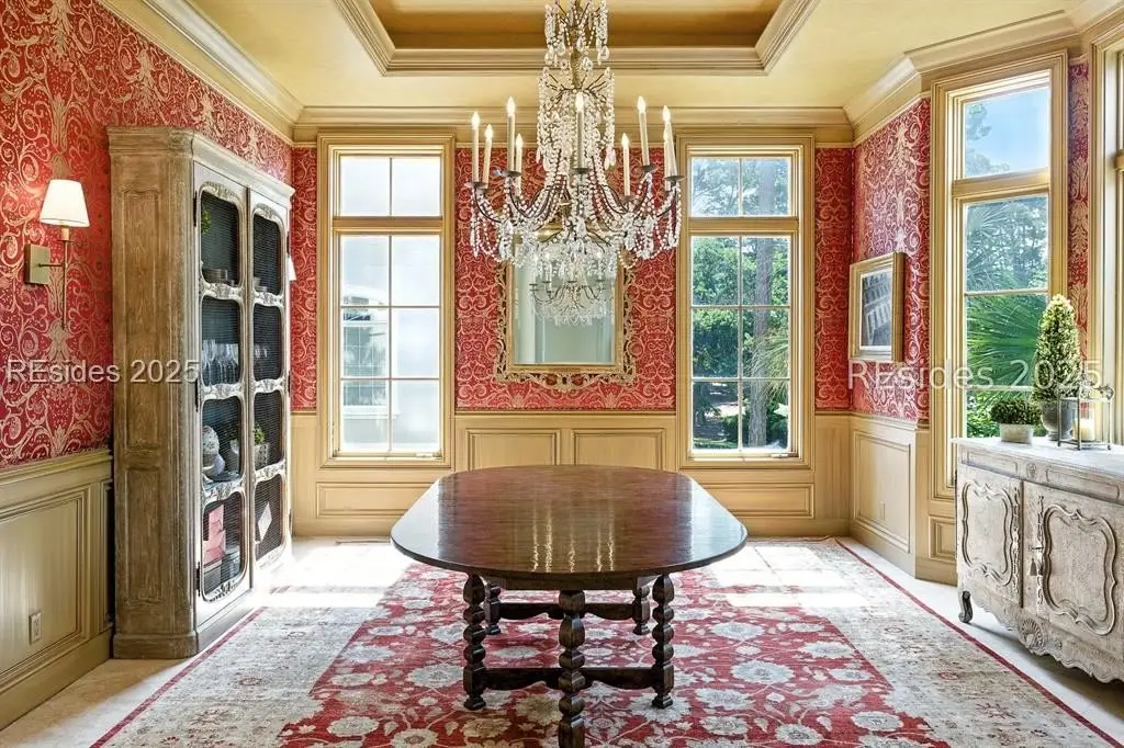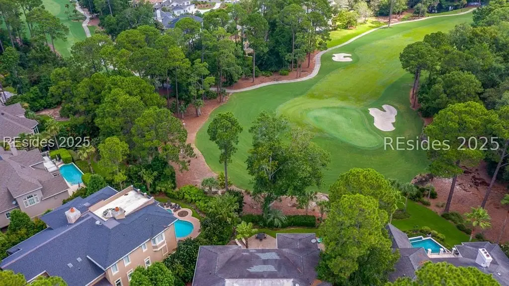 Welcome to this exceptional estate in Wexford, blending grand design with everyday comfort and luxury. A dramatic two-story foyer sets the tone as you enter, leading to a spacious living room, formal dining room with elegant padded acoustic silk wallpaper, and a private office with its own half bath. The heart of the home is a beautifully open kitchen, family, and breakfast area perfect for both casual living and entertaining. The expansive primary suite is a true retreat, offering dual walk-in closets, a separate lighted shoe closet, and a built-in safe all with long fairway views just beyond the 7th green. Also on the main level are a second powder room and a spacious laundry. Upstairs, you'll find three large en-suite bedrooms, a second laundry room, and a fully equipped home theater with a bar, as well as a third half-bath. The lower level offers fun and functionality, featuring a fully finished rec and play area, home gym, full bath, generous storage, an oversized 3-car garage, and 3 stop elevator. Step outside to the screened-in porch with a bar and built-in grill ideal for poolside entertaining. The private pool and fire pit area complete this serene Lowcountry setting. This home truly has everything. Wexford offers world-class amenities, including golf, tennis, pickleball, croquet, a private marina, two pools, and more. One of Hilton Heads most exclusive gated communities.