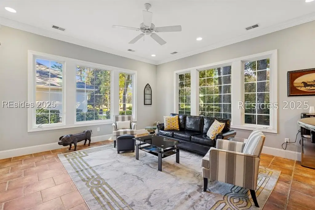 Step inside and feel instantly at home in this beautifully designed home offering the perfect blend of space, flexibility, and character that today's buyers are looking for. Featuring 4 bedrooms, 4.5 baths, a private office, bonus room, and a 3-car garage, this thoughtfully planned home delivers comfort and function in every corner. The spacious gourmet kitchen opens to a charming family room, creating an ideal setting for entertaining or everyday living. Impressive 20-foot ceilings in the living room, custom built-ins, expansive storage, multiple pantries, and walk-in closets showcase the meticulous attention to detail from the collaboration between the owner/designer and a premier local builder. Enjoy long, picturesque views of the 14th hole of The Indigo Run Golf Club with protected wooded vistas beyond. Updates include a new roof in 2024, fresh interior paint, new Café Series oven and dishwasher, custom built-ins in the primary closet, and a landscaping refresh for enhanced curb appeal. Nestled in the highly sought-after Golf Club community of Indigo Run, this home offers both privacy and convenience - 10 minutes to shopping, dining, and Hilton Head's beautiful beaches. Discover a home where craftsmanship, comfort, and location come together seamlessly.