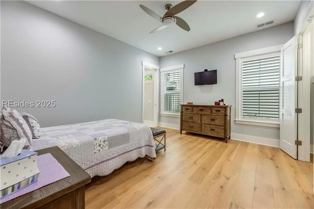 Sound Views | Immaculate Modern Design | Garage Upgrades. Stunning 2022 coastal home near Dolphin Head with Sound views from your private balcony! This 3-bed, 3.5-bath beauty features White Oak floors, custom built-ins, gas fireplace, shiplap wall, and coffered ceilings with backlighting. Upstairs offers a 4th bedroom/bonus suite with bath, balcony, and walk-in attic. Enjoy a chef’s kitchen with KitchenAid appliances, 5-burner gas cooktop, and elegant finishes. Custom trim, stylish built-ins, and upgraded closets throughout. The garage impresses with RaceDeck flooring and EV charging.