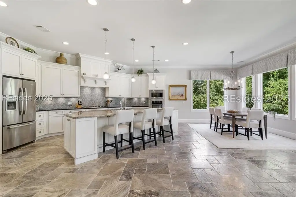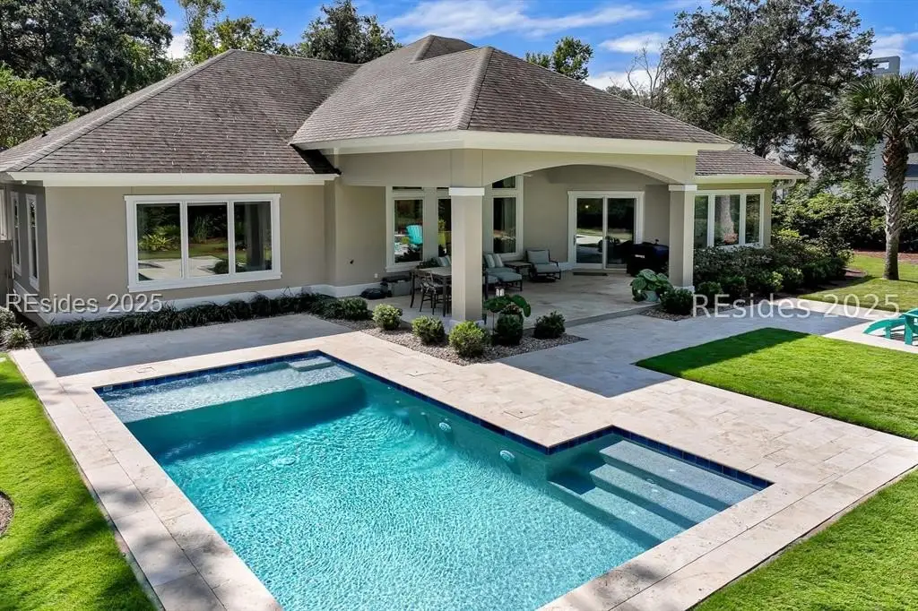 Experience refined coastal living in Port Royal, Hilton Heads only private oceanfront community. Custom-built by a local premier builder, this 4BR/4.5BA residence blends timeless craftsmanship w modern innovation. The current owners elevated it further by creating a resort-style heated & cooled pool and finishing the space over the garage into a private guest suite. Approx. 3,400 sq. ft., the home lives large w soaring ceilings, abundant light & an open layout designed for gathering. A welcoming foyer leads to flexible spaces including a dining/sitting room, a living room w stacked-stone fireplace, & a gourmet kitchen w gas range, counter seating & casual dining overlooking the pool & covered patio. The primary suite is privately set apart from two guest rooms, with a 4th upstairs.The insulated, climate-controlled 3-car garage with epoxy floor. Modern upgrades include a Tesla Power Wall III, backup generator, & future-ready solar design. Port Royal offers unmatched amenities private beaches, oceanfront pool, tennis, pickleball, leisure trails, and 24-hour security. In a community where opportunities like this are rare, this residence sets the benchmark for Port Royal living truly best in class!