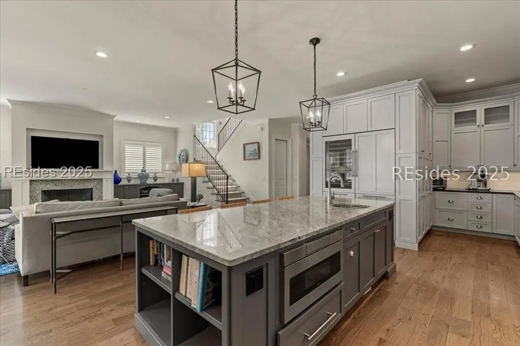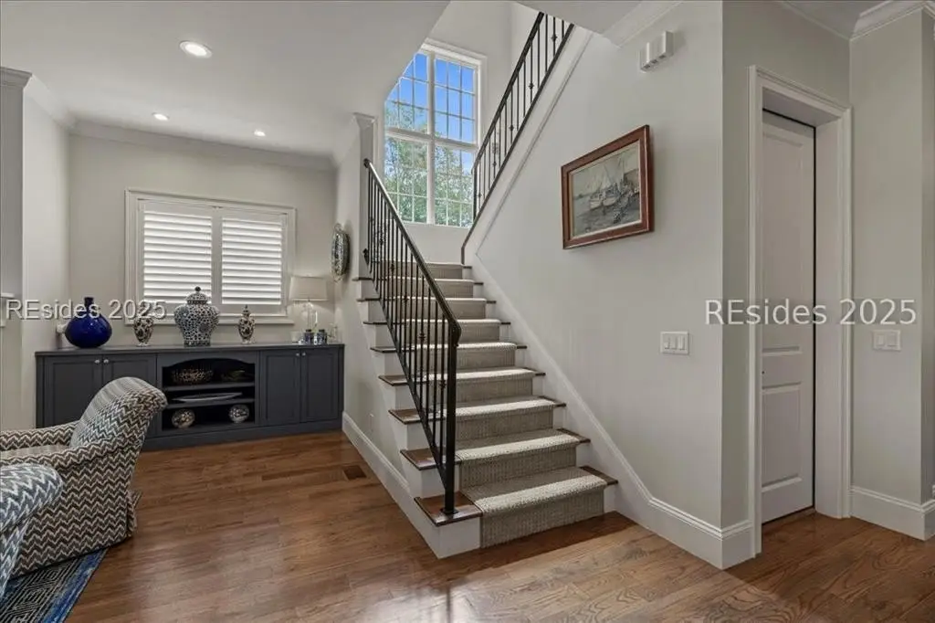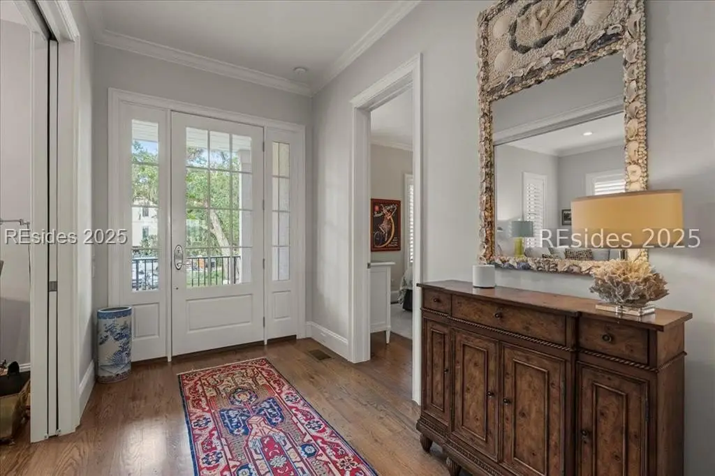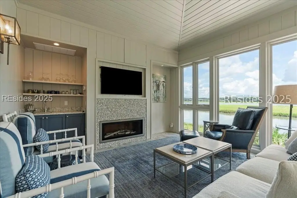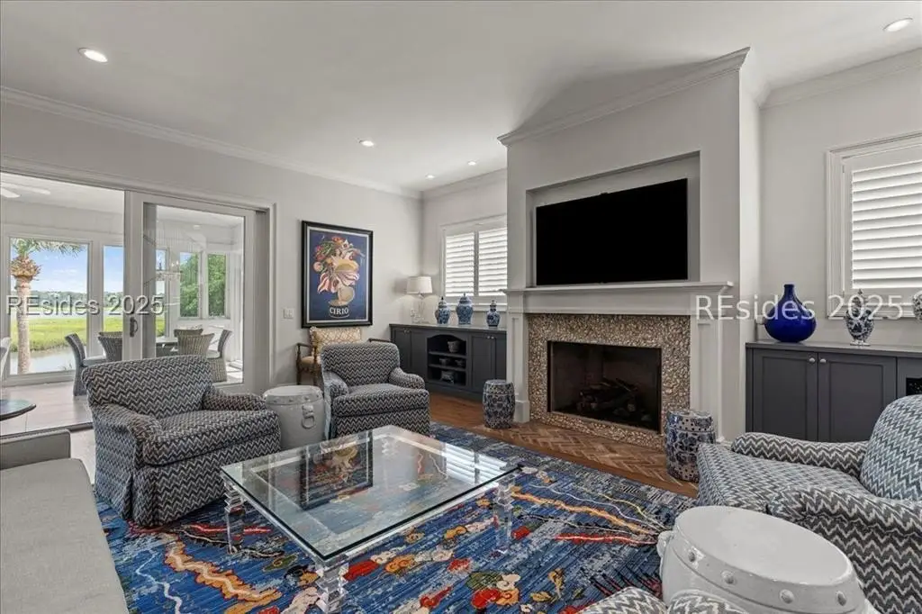Stunning Lowcountry-style home showcasing rarely available & expansive, unobstructed Broad Creek views. Thoughtfully designed & exquisitely finished, this 4BD + den, 4.5BA residence blends timeless architecture with upscale comfort, just a short stroll to the world-class clubhouse, marina, tennis courts, golf & pool. Light & bright interior featuring hardwood & brick flooring, multiple fireplaces, & custom millwork throughout. Chefs kitchen impresses with marble countertops, high-end appliances, and generous prep space. Multiple charming porches, built-in outdoor grill, & fire pit, all set against the backdrop of serene waterfront views where sunsets are a spectacular show every night. Additional highlights: wine cellar, elevator, newer HVAC systems, every bedroom with ensuite, & expansive first-floor storage. Sold fully furnished, making it the perfect turnkey escape in one of Hilton Heads most desirable communities.