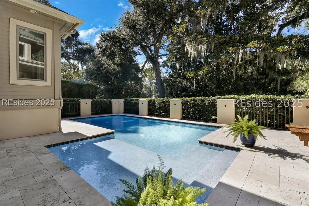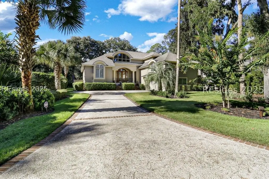 Experience the ultimate in golf course living with this exceptional 4BR/4.5BA home perfectly positioned to capture panoramic views of Harbour Town Golf Links, home of the world-renowned RBC Heritage Golf Tournament. Enjoy multiple fairway views of the 3rd and 7th holes and the tee box of #8, offering unmatched scenery and privacy. Built by Tom Peeples and designed by William Vitto, this custom home combines timeless craftsmanship with elegant Lowcountry style. The open living and dining area showcases soaring ceilings, hardwood flooring, and expansive windows framing breathtaking pool and golf views. The open kitchen/family room features custom built-ins surrounding a wood-burning fireplace, granite countertops, custom cabinetry, and premium appliances. The first-floor owner suite is a serene retreat with stunning pool-to-golf views, hardwood flooring, dual walk-in closets, and a spa-inspired bath with soaking tub, tiled shower, and separate vanities. Upstairs, youll find three spacious guest ensuites plus an office, loft, and abundant storage ideal for family and guests. Recent updates by the current owners include a 2022 outdoor covered porch with metal roof and trex decking, new swimming pool with sundeck and travertine tile designed by Year Round Pool, and new landscaping. Other highlights include 2018 roof with copper accents and gutters (2022), Hardie plank siding, spray foam insulation, 2017/2018 HVAC, two 2017 water heaters, and termite bond.The 2-car garage offers epoxy flooring and two walk-in storage closets. This beautifully maintained home captures the best of Sea Pines living - elegant interiors, exceptional privacy, and spectacular golf course views at the heart of Harbour Town.