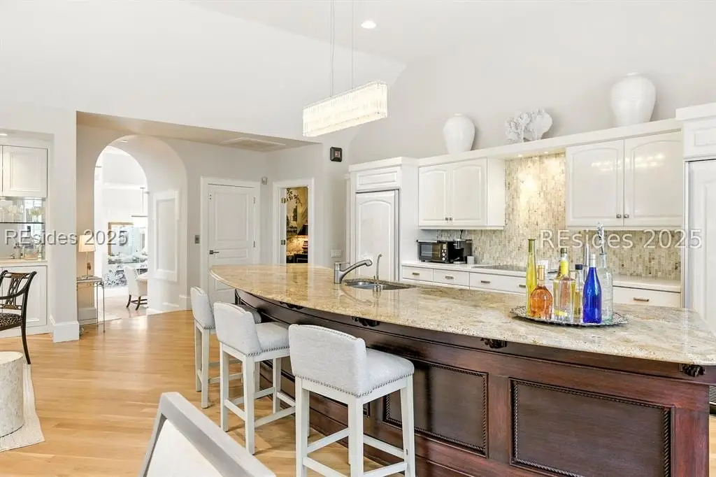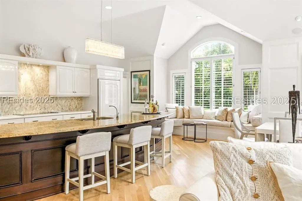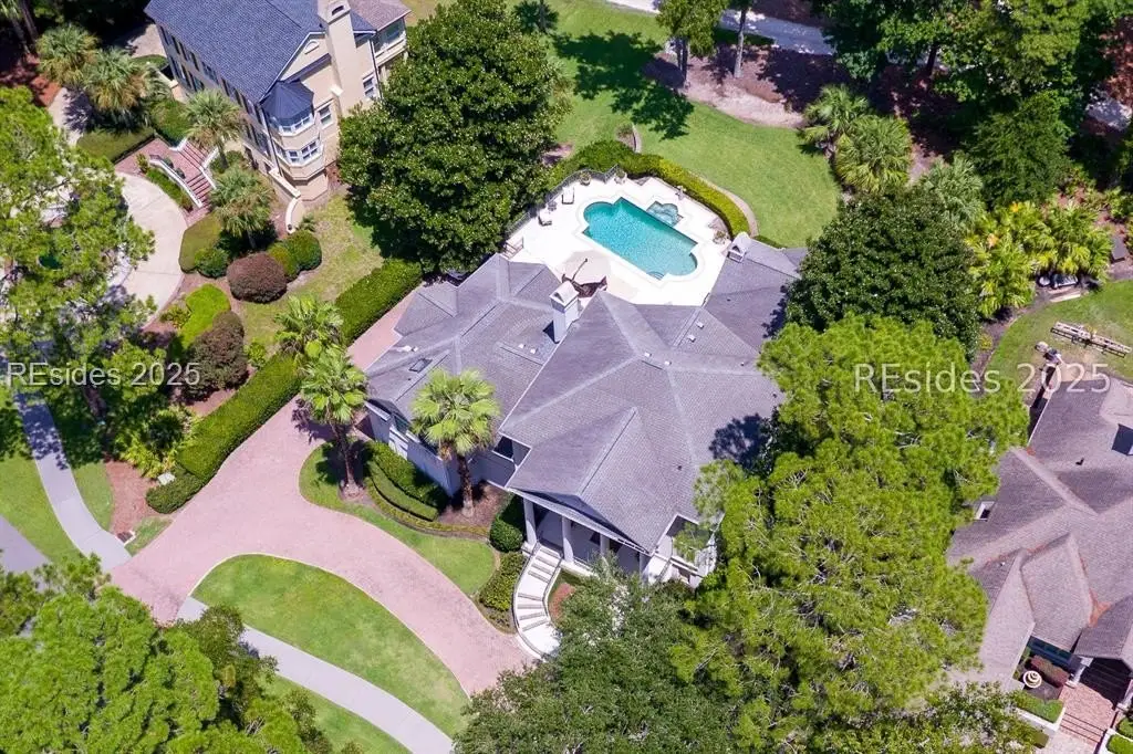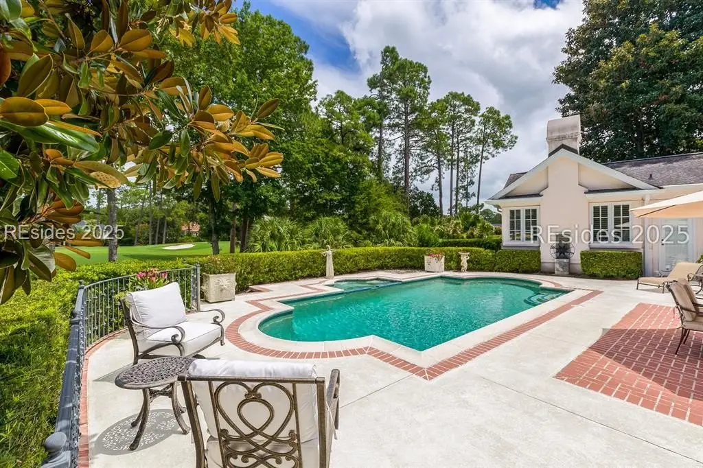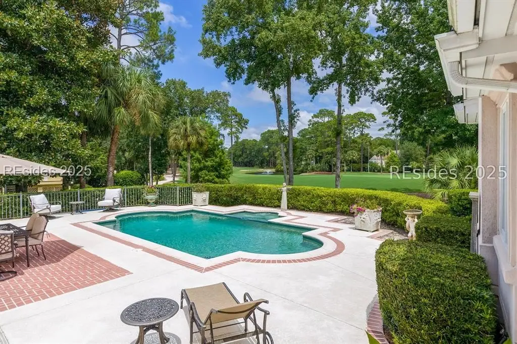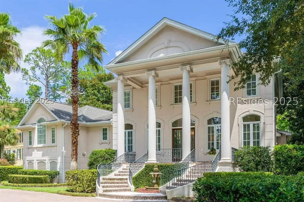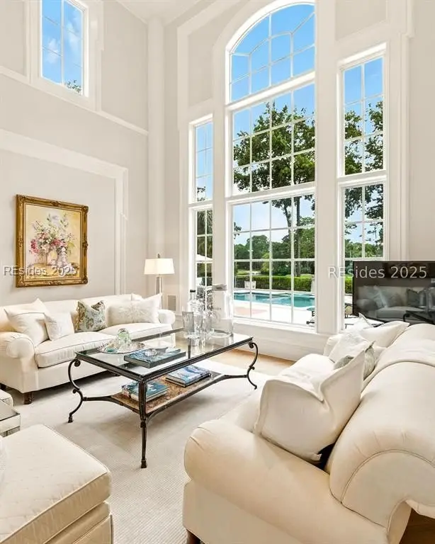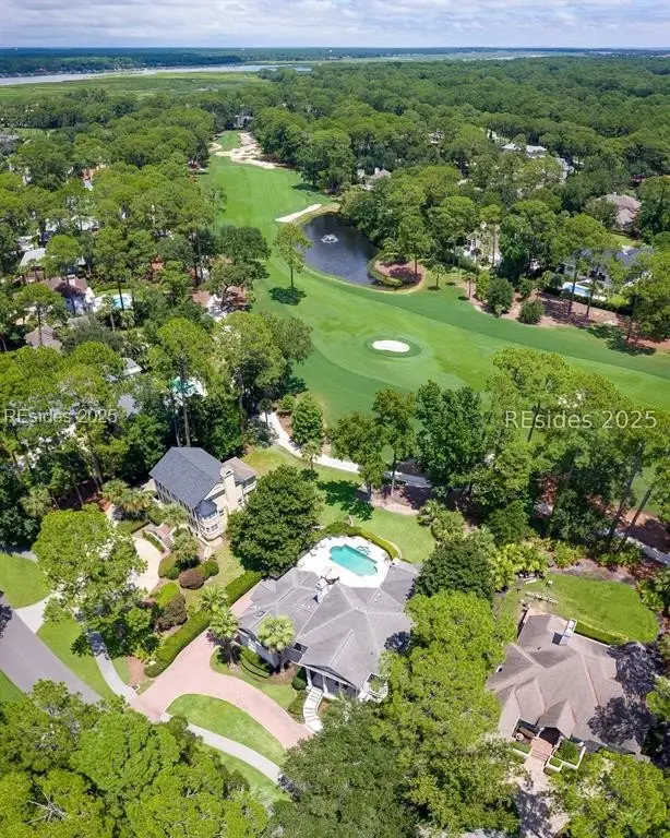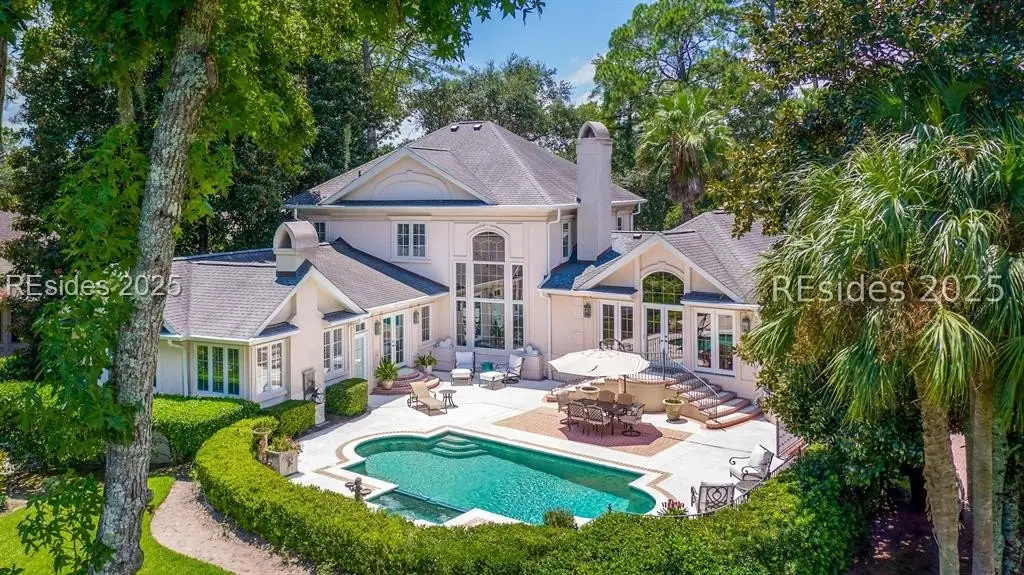 Step into timeless sophistication at 16 Bridgetown Road, a meticulously designed residence nestled in the heart of Wexford, one of Hilton Head Island's most prestigious private communities. This open and airy home showcases elegant architectural details, including intricate moldings, designer fixtures, and refined modern finishes. The formal living and dining rooms offer a grand yet welcoming ambiance, enhanced by sweeping views of Wexford's 11th fairway and green. Designed for both daily comfort and effortless entertaining, the modern kitchen features an oversized island, premium appliances, and seamless flow into the breakfast area and spacious family room. The custom-designed powder room adds a distinctive touch of style, while the first-floor primary suite serves as a serene retreat, featuring a spa-inspired bath, an oversized walk-in closet, and two additional wall closets for exceptional storage. A secondary first-floor ensuite, currently used as a home office, provides flexibility and convenience. Upstairs, two additional ensuite bedrooms share a cozy seating loft. Additional features include a three-car garage, a private elevator providing easy access from the garage to the main living level, and a spacious, well-organized utility room with abundant cabinetry and storage. A second half bath, accessible directly from the pool deck, offers added convenience for outdoor living and entertaining. Outdoors, enjoy the essence of Lowcountry living with a raised private pool, built-in grill, and mature landscaping that ensures privacy - perfectly framing tranquil golf course views. Residents of Wexford enjoy access to world-class amenities, including a private harbour and marina, championship golf course, tennis and pickleball courts, croquet lawn, resort-style pool complex, clubhouse dining, and vibrant social programming. 16 Bridgetown Road is a rare opportunity to own a home that embodies elevated design and thoughtful living within one of Hilton Head's most distinguished gated communities. Refined coastal living starts here.