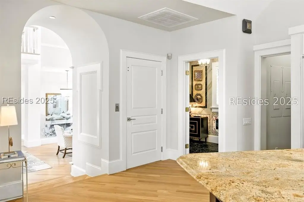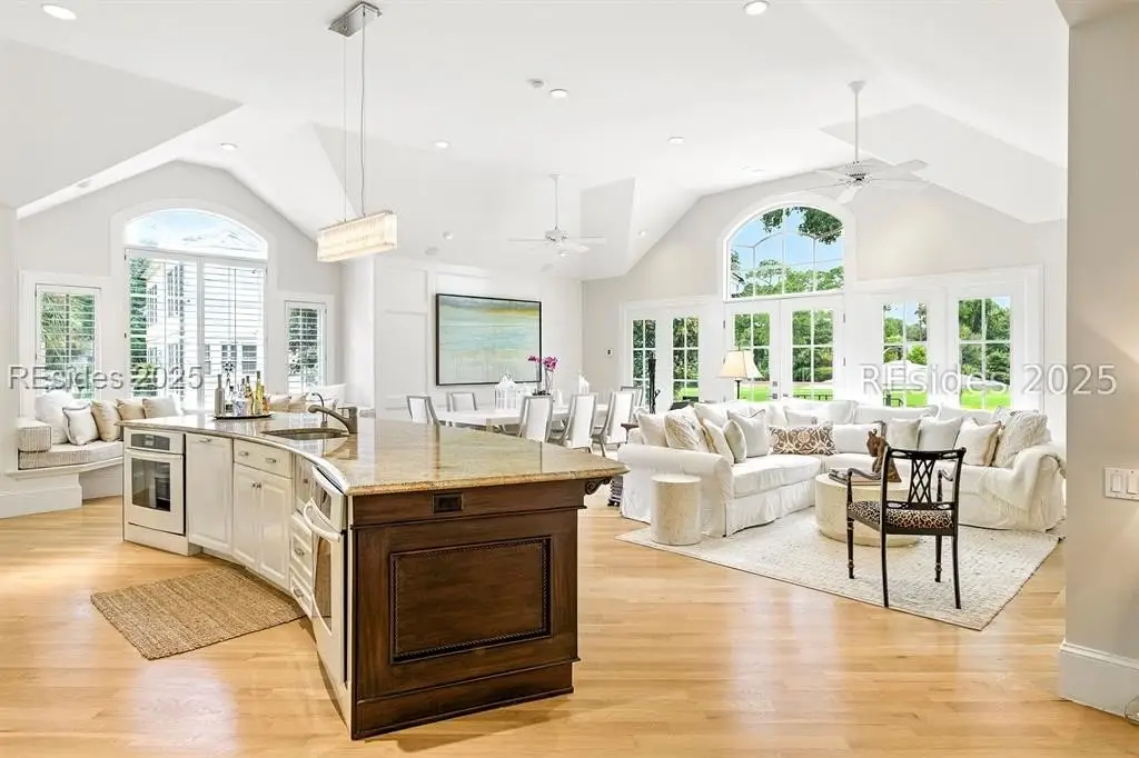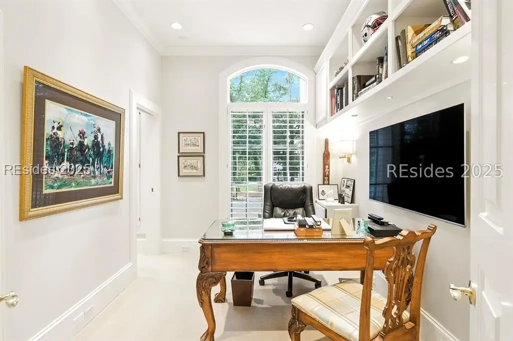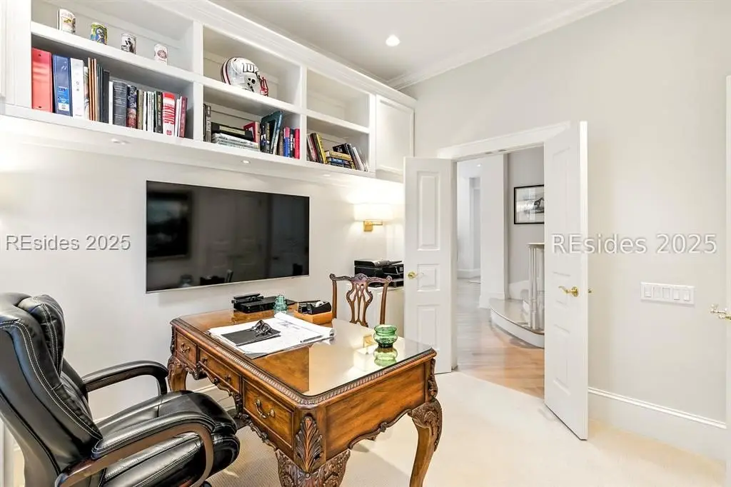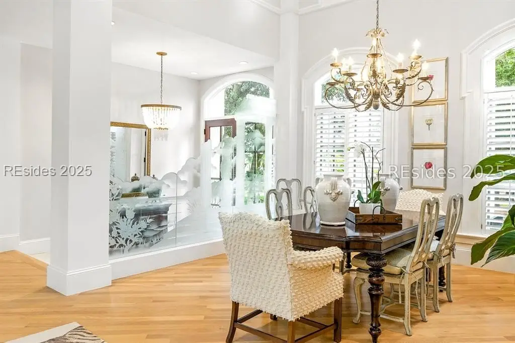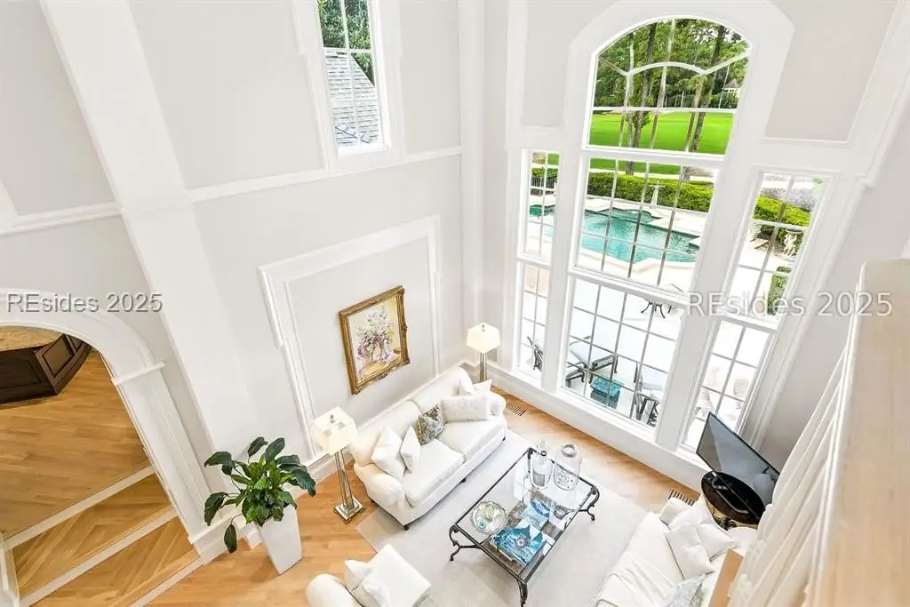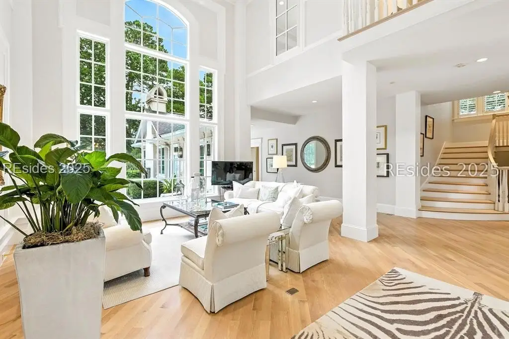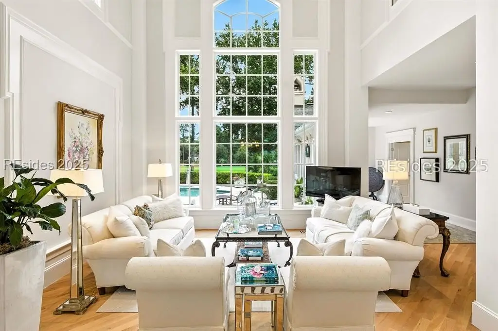 Step into timeless sophistication at 16 Bridgetown Road, a meticulously designed residence nestled in the heart of Wexford, one of Hilton Head Island's most prestigious private communities. This open and airy home showcases elegant architectural details, including intricate moldings, designer fixtures, and refined modern finishes. The formal living and dining rooms offer a grand yet welcoming ambiance, enhanced by sweeping views of Wexford's 11th fairway and green. Designed for both daily comfort and effortless entertaining, the modern kitchen features an oversized island, premium appliances, and seamless flow into the breakfast area and spacious family room. The custom-designed powder room adds a distinctive touch of style, while the first-floor primary suite serves as a serene retreat, featuring a spa-inspired bath, an oversized walk-in closet, and two additional wall closets for exceptional storage. A secondary first-floor ensuite, currently used as a home office, provides flexibility and convenience. Upstairs, two additional ensuite bedrooms share a cozy seating loft. Additional features include a three-car garage, a private elevator providing easy access from the garage to the main living level, and a spacious, well-organized utility room with abundant cabinetry and storage. A second half bath, accessible directly from the pool deck, offers added convenience for outdoor living and entertaining. Outdoors, enjoy the essence of Lowcountry living with a raised private pool, built-in grill, and mature landscaping that ensures privacy - perfectly framing tranquil golf course views. Residents of Wexford enjoy access to world-class amenities, including a private harbour and marina, championship golf course, tennis and pickleball courts, croquet lawn, resort-style pool complex, clubhouse dining, and vibrant social programming. 16 Bridgetown Road is a rare opportunity to own a home that embodies elevated design and thoughtful living within one of Hilton Head's most distinguished gated communities. Refined coastal living starts here.