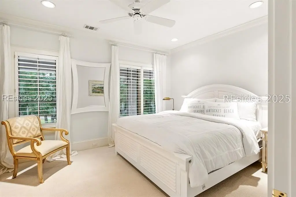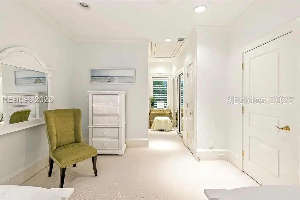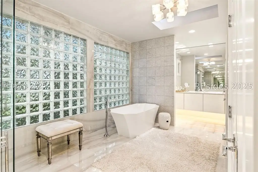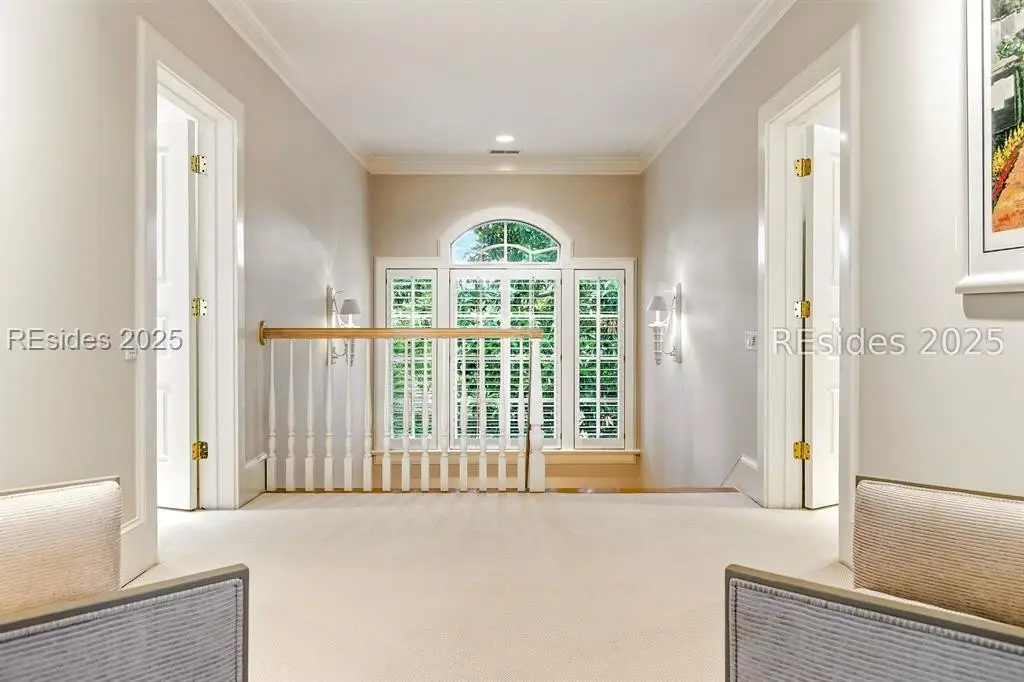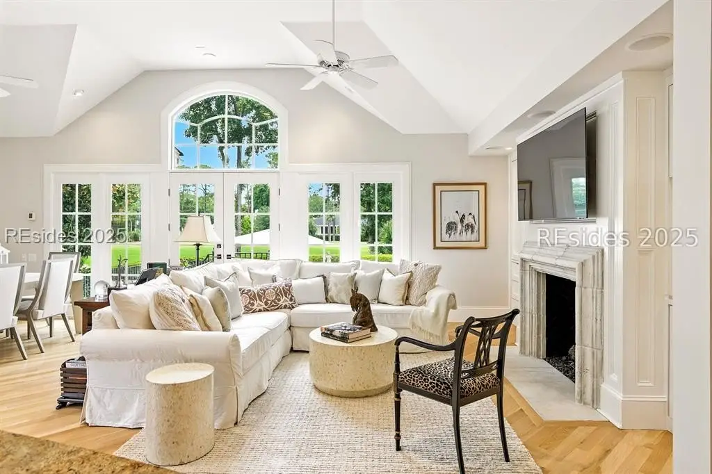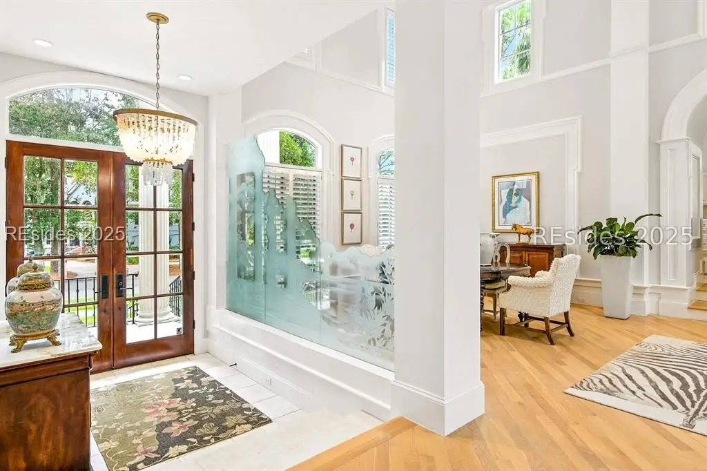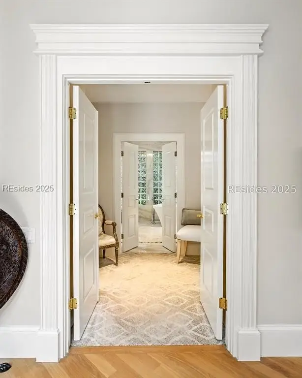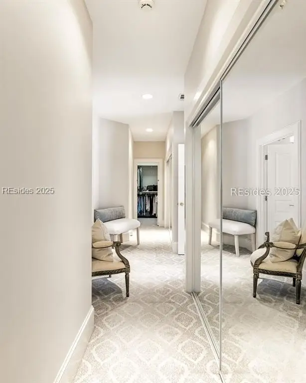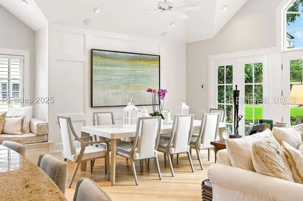 Step into timeless sophistication at 16 Bridgetown Road, a meticulously designed residence nestled in the heart of Wexford, one of Hilton Head Island's most prestigious private communities. This open and airy home showcases elegant architectural details, including intricate moldings, designer fixtures, and refined modern finishes. The formal living and dining rooms offer a grand yet welcoming ambiance, enhanced by sweeping views of Wexford's 11th fairway and green. Designed for both daily comfort and effortless entertaining, the modern kitchen features an oversized island, premium appliances, and seamless flow into the breakfast area and spacious family room. The custom-designed powder room adds a distinctive touch of style, while the first-floor primary suite serves as a serene retreat, featuring a spa-inspired bath, an oversized walk-in closet, and two additional wall closets for exceptional storage. A secondary first-floor ensuite, currently used as a home office, provides flexibility and convenience. Upstairs, two additional ensuite bedrooms share a cozy seating loft. Additional features include a three-car garage, a private elevator providing easy access from the garage to the main living level, and a spacious, well-organized utility room with abundant cabinetry and storage. A second half bath, accessible directly from the pool deck, offers added convenience for outdoor living and entertaining. Outdoors, enjoy the essence of Lowcountry living with a raised private pool, built-in grill, and mature landscaping that ensures privacy - perfectly framing tranquil golf course views. Residents of Wexford enjoy access to world-class amenities, including a private harbour and marina, championship golf course, tennis and pickleball courts, croquet lawn, resort-style pool complex, clubhouse dining, and vibrant social programming. 16 Bridgetown Road is a rare opportunity to own a home that embodies elevated design and thoughtful living within one of Hilton Head's most distinguished gated communities. Refined coastal living starts here.