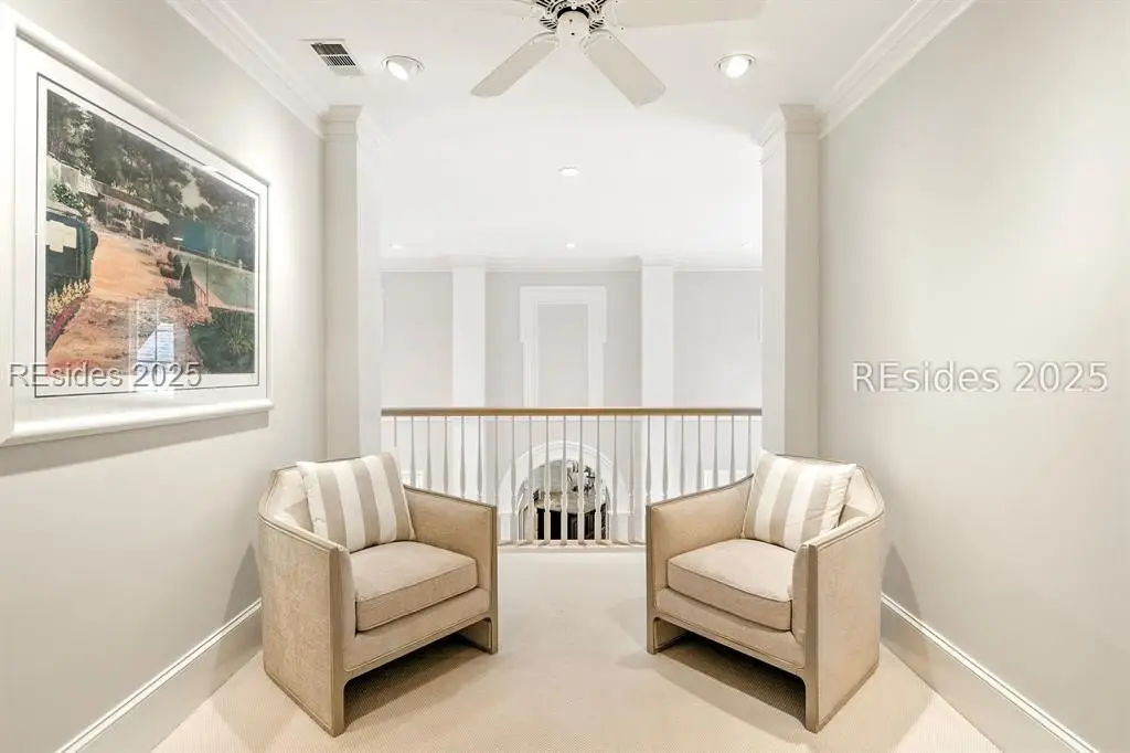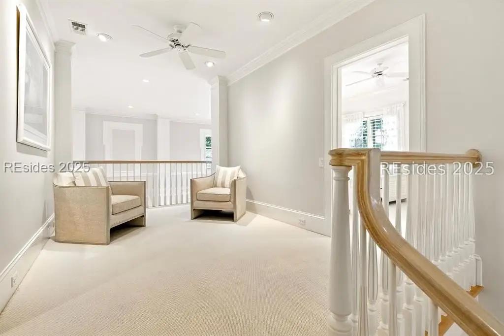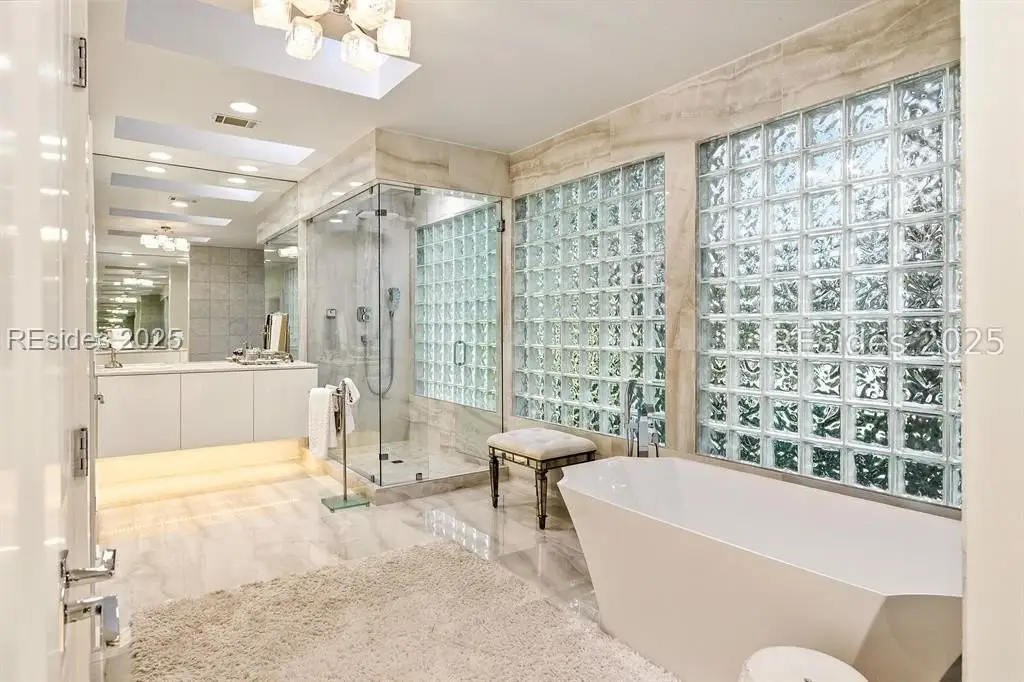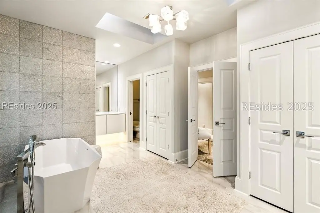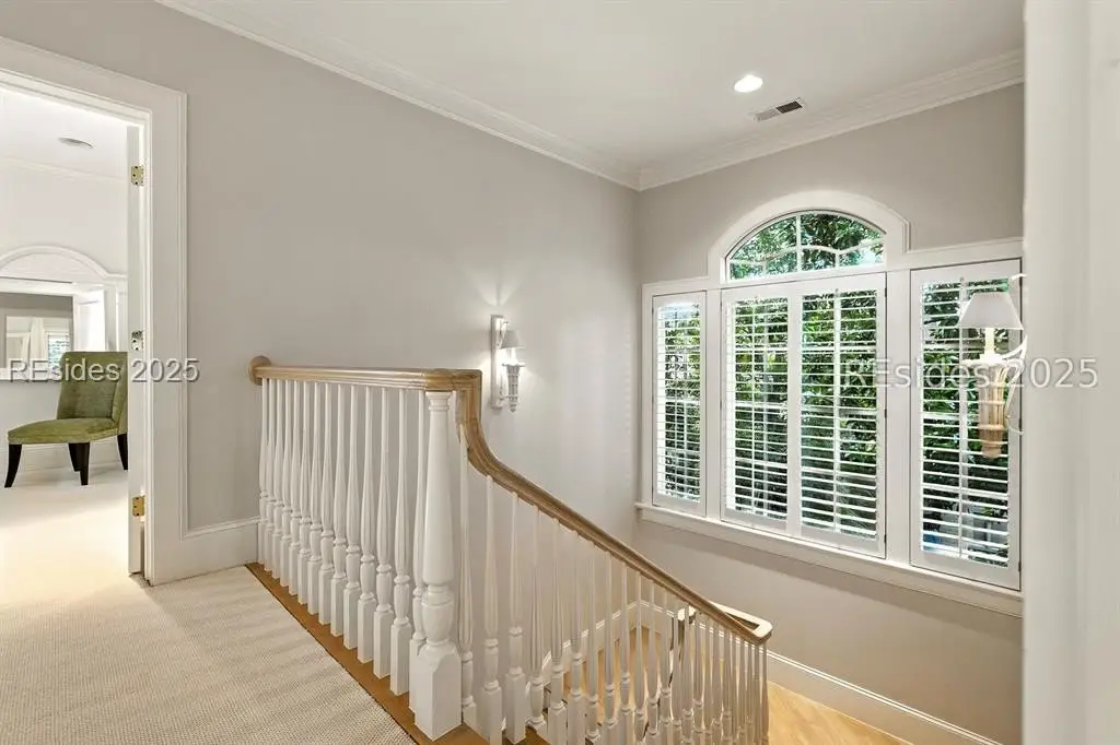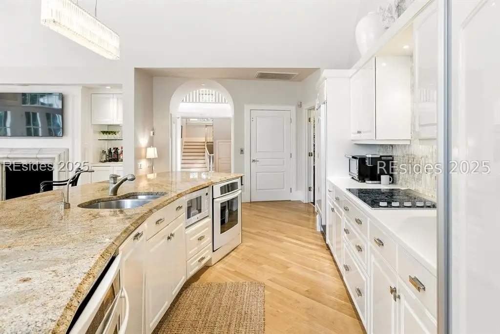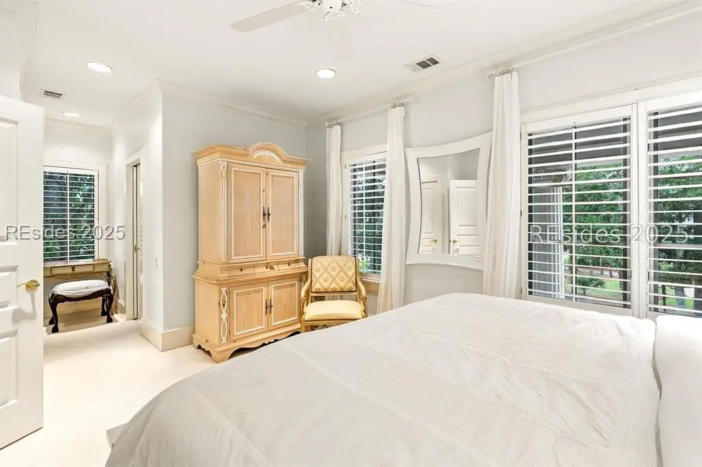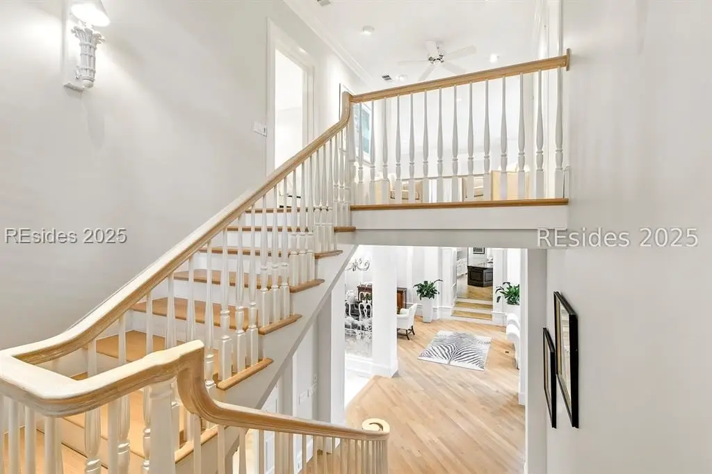 Step into timeless sophistication at 16 Bridgetown Road, a meticulously designed residence nestled in the heart of Wexford, one of Hilton Head Island's most prestigious private communities. This open and airy home showcases elegant architectural details, including intricate moldings, designer fixtures, and refined modern finishes. The formal living and dining rooms offer a grand yet welcoming ambiance, enhanced by sweeping views of Wexford's 11th fairway and green. Designed for both daily comfort and effortless entertaining, the modern kitchen features an oversized island, premium appliances, and seamless flow into the breakfast area and spacious family room. The custom-designed powder room adds a distinctive touch of style, while the first-floor primary suite serves as a serene retreat, featuring a spa-inspired bath, an oversized walk-in closet, and two additional wall closets for exceptional storage. A secondary first-floor ensuite, currently used as a home office, provides flexibility and convenience. Upstairs, two additional ensuite bedrooms share a cozy seating loft. Additional features include a three-car garage, a private elevator providing easy access from the garage to the main living level, and a spacious, well-organized utility room with abundant cabinetry and storage. A second half bath, accessible directly from the pool deck, offers added convenience for outdoor living and entertaining. Outdoors, enjoy the essence of Lowcountry living with a raised private pool, built-in grill, and mature landscaping that ensures privacy - perfectly framing tranquil golf course views. Residents of Wexford enjoy access to world-class amenities, including a private harbour and marina, championship golf course, tennis and pickleball courts, croquet lawn, resort-style pool complex, clubhouse dining, and vibrant social programming. 16 Bridgetown Road is a rare opportunity to own a home that embodies elevated design and thoughtful living within one of Hilton Head's most distinguished gated communities. Refined coastal living starts here.