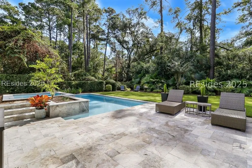 Discover coastal charm and refined craftsmanship in this beautifully reimagined 4BR/3BA home in the sought-after Club Course neighborhood of Sea Pines. Rebuilt and expanded in 2012 by Twelve Oaks Construction, this home combines Lowcountry architecture with modern luxury and the ease of all one level living.The open-concept kitchen, completely redesigned by the current owner, is a showstopper featuring all new touchstone soft-close cabinetry, quartzite countertops, and the crème de la crème appliances to include a Wolf 6-burner gas range with oven, Sub-Zero refrigerator with freezer drawers Sub-Zero wine column, and back kitchen offers additional quartzite counters, Wolf steam oven, Wolf microwave drawer, and Sub-Zero beverage center. The kitchen opens to the beautiful Great Room with tabby fireplace.The owners suite features hardwood flooring, crown molding, his/her walk-in closets, and a bath with dual marble vanities and a walk-in tiled shower. Three guest bedrooms include one ensuite with sitting area and private bath and two bedrooms sharing a stylishly updated bath. Additional features include hardie plank siding, spray foam insulation, 2017 roof, 2023 tankless water heaters, 2023 Trane 4-ton HVAC.Step outside to your private oasis where the current owner added a stunning swimming pool/spa surrounded by all new lush landscaping, outdoor lighting, screened porch, and outdoor kitchen.This meticulously updated home embodies the relaxed yet sophisticated Sea Pines lifestyle where coastal living meets timeless design.