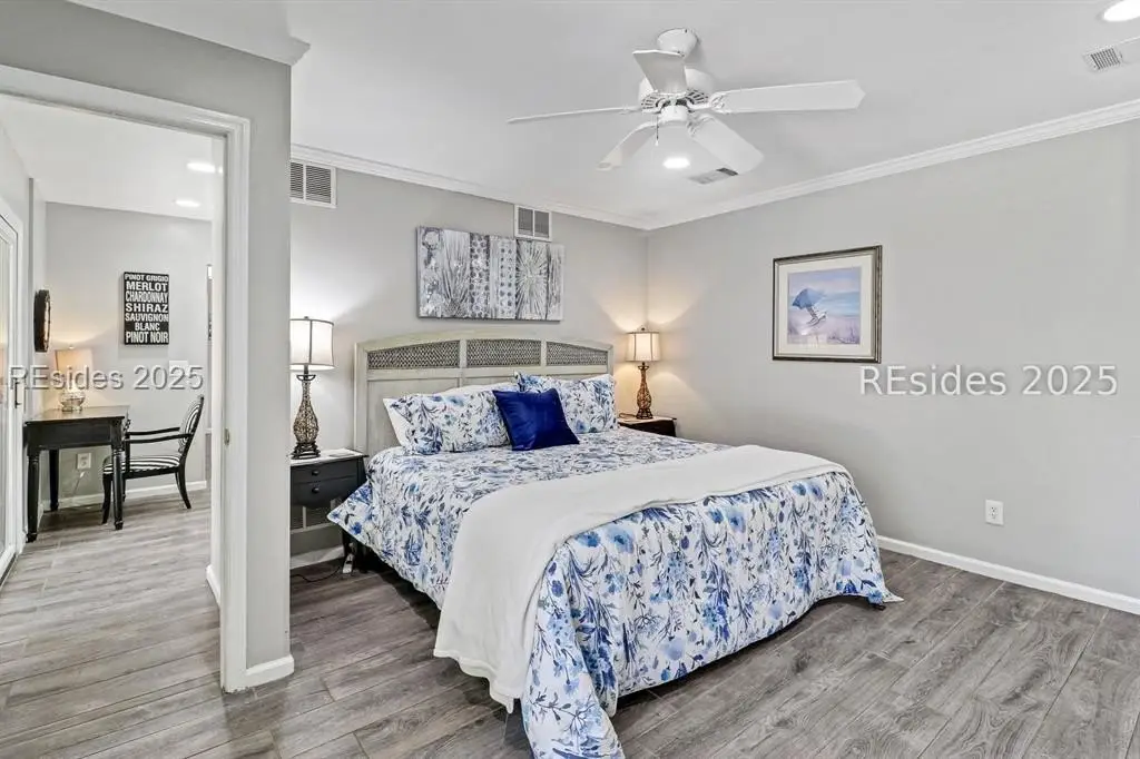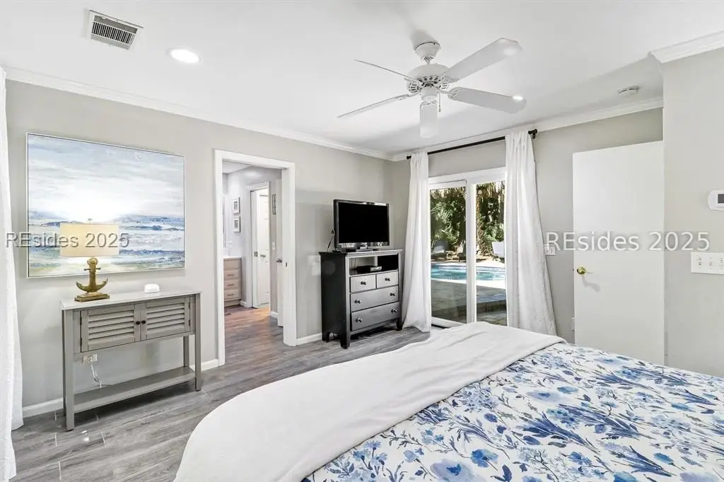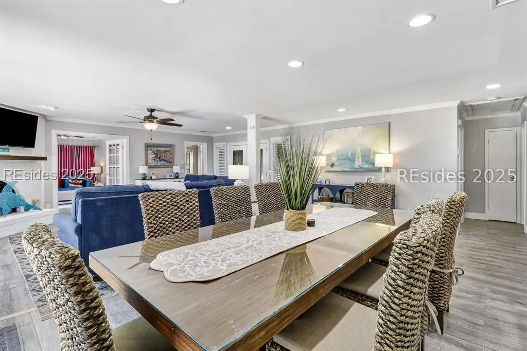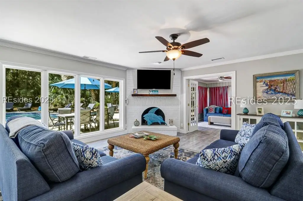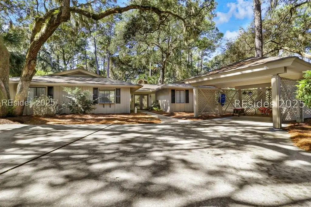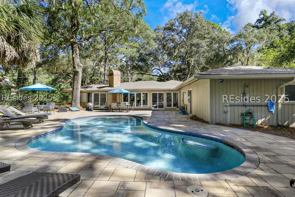 Amazing location in the heart of Sea Pines! Minutes to the Atlantic Ocean and easy bike ride to Harbour Town, this updated 4 bedroom, 3 bath single-level home blends comfort, convenience, and Lowcountry charm. This property offers new porcelain tile flooring throughout, smooth ceilings, crown molding, freshly painted interior, 2019 HVAC, 2021 water heater & so much more! This open concept floor plan features a great room with a gas fireplace, and kitchen offering granite countertops and premium appliances. The owner suite is extremely private with patio/pool access and a spa-style bath boasting his/her vanities, Jacuzzi tub, & walk-in shower. Guest ensuite #1 includes a private bath with a walk-in shower, and a nearby den is perfect for a kids' hangout zone. Guest suites #2 and #3 share a stylish bath with a tiled tub/shower combo. There's also a small sitting area with TV just off the kitchen - ideal for remote work or relaxation. Step outside to your own private outdoor retreat! The 2022 paver patio surrounds a sparkling swimming pool, creating a perfect setting for everything from laid-back lounging to lively weekend gatherings. With plenty of space to dine, relax, and entertain, there's room for everyone to spread out and enjoy. Whether it's summer pool parties, cozy fall oyster roasts, or quiet mornings with coffee, this backyard was designed for making family memories. Primary residence, second home, or incredible rental property, you decide!